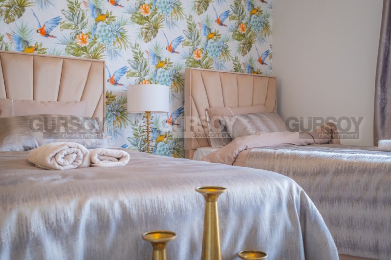 Квартира впечатляет не только своим расположением, но и стильным ремонтом и роскошной мебелью. Комплекс состоит из пяти блоков и предлагает высококлассную 5-звездочную инфраструктуру. Здесь вас ждут открытый бассейн с горкой, крытый бассейн, фитнес-центр, сауна, парная, хаммам, а также просторная территория с зонами отдыха и детской игровой площадкой. Для любителей активного образа жизни предусмотрены футбольная и баскетбольная площадки. Безопасность вашего проживания обеспечивается круглосуточной охраной на закрытой территории комплекса.