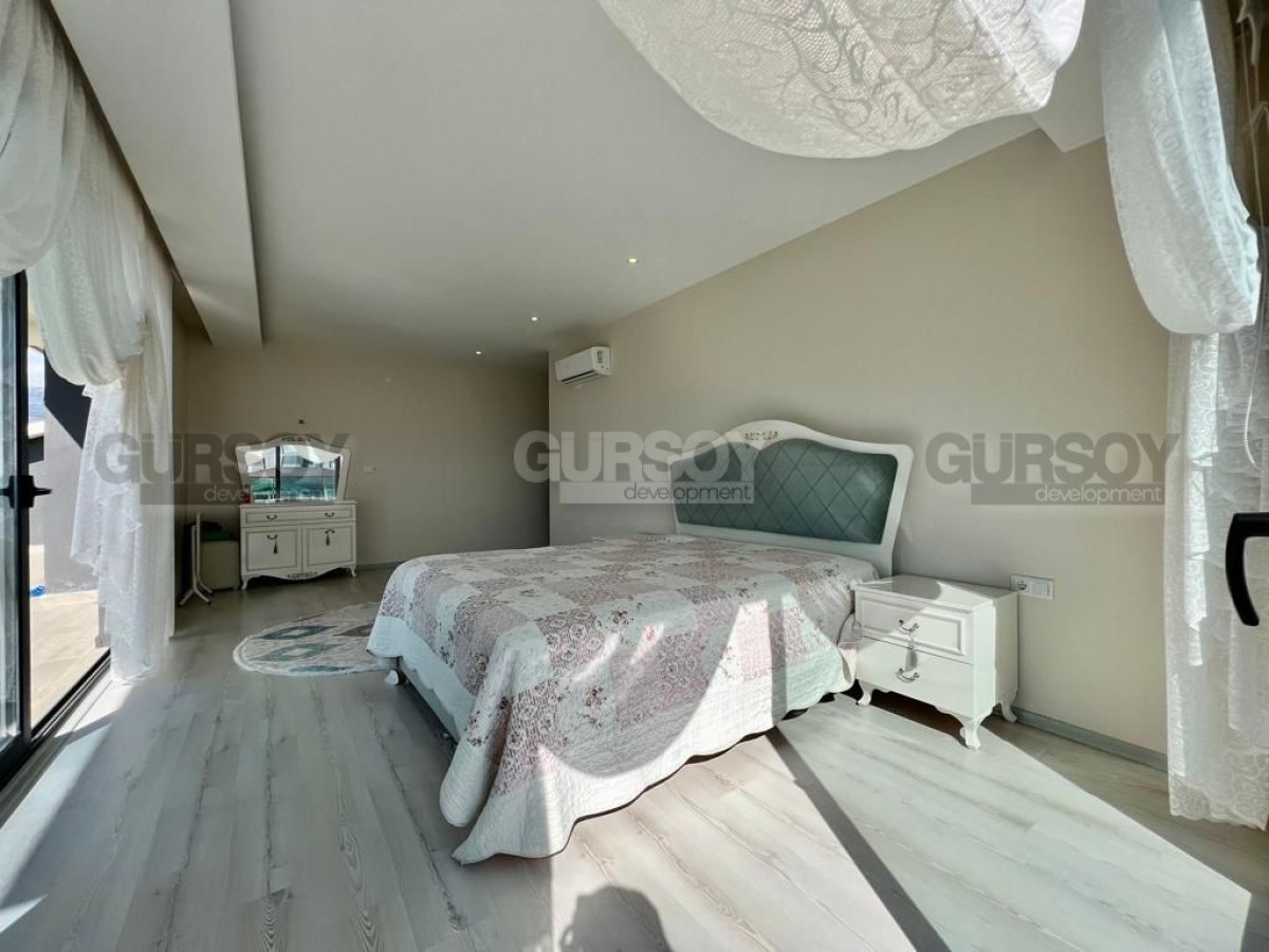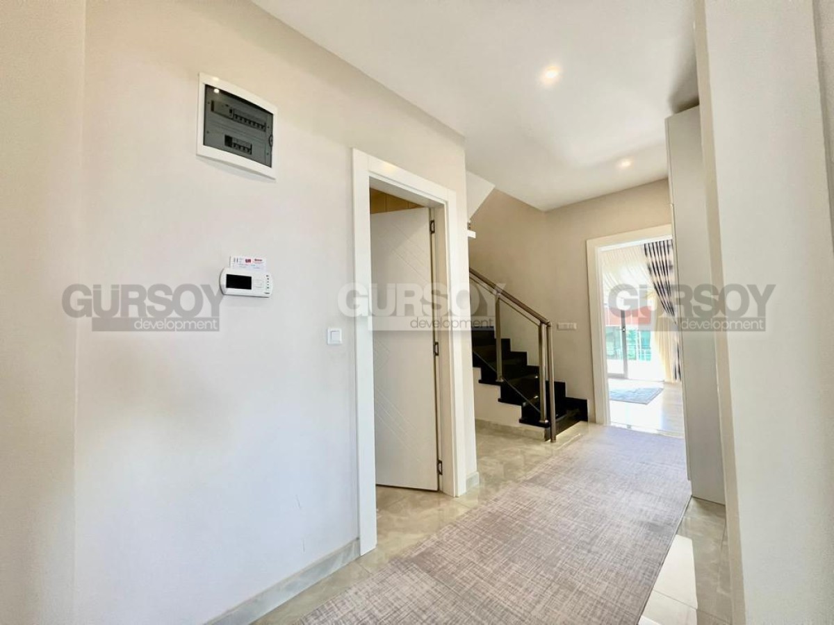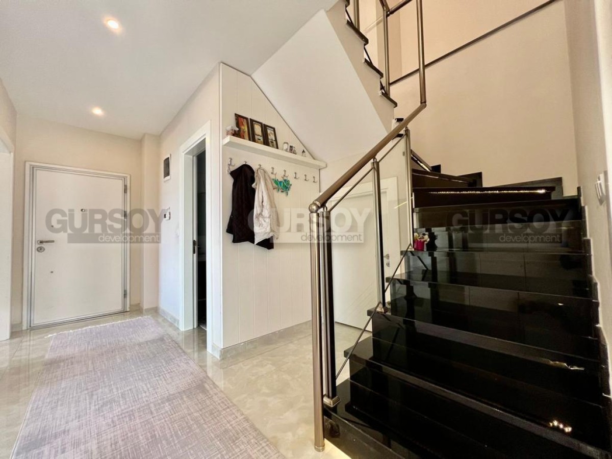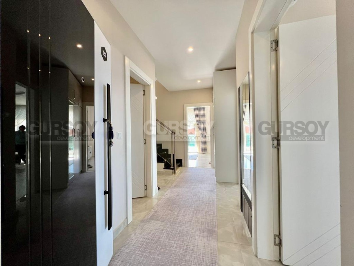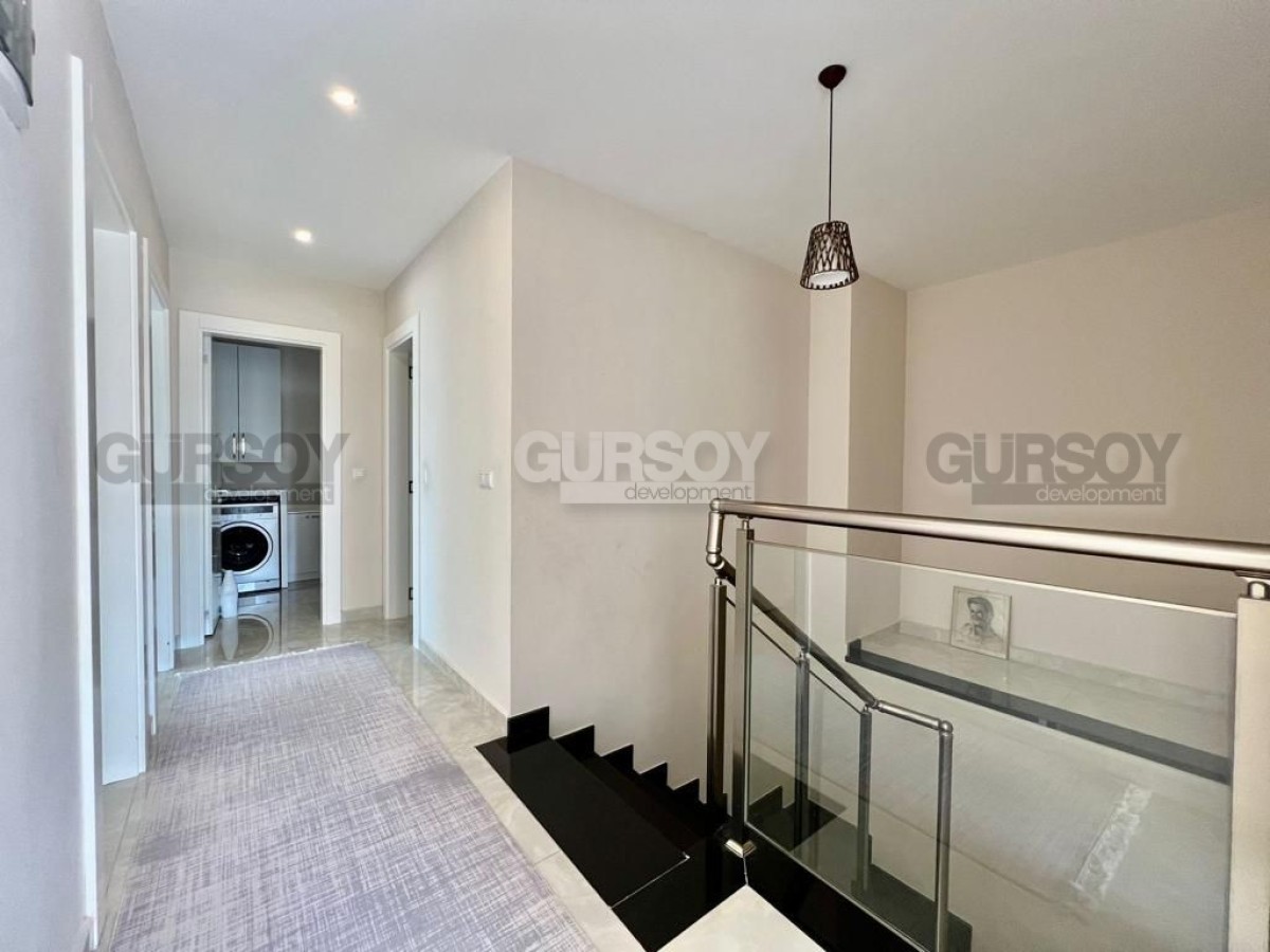 Площадь двухуровневой квартиры - 350 м2, а планировка 4+1 подразумевает наличие гостиной, отдельной кухни, 4-х спален, 2-х ванных комнат, балкона и террасы. Квартира продаётся с полным комплектом мебели и бытовой техники. Во всех комнатах установлены кондиционеры. Ванные комнаты оборудованы сантехникой, есть джакузи, душевая кабина и проточный водонагреватель. Установлено точечное освещение и LED-подсветка. Захватывающие дух виды на Средиземное море, пальмы и Таврские горы открываются с каждого уголка квартиры.