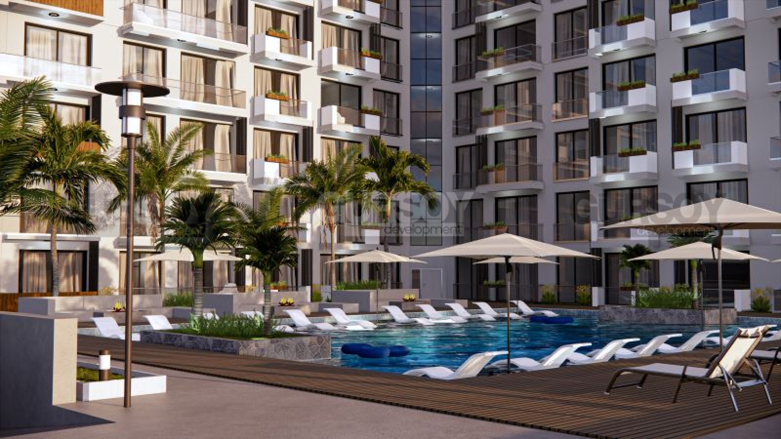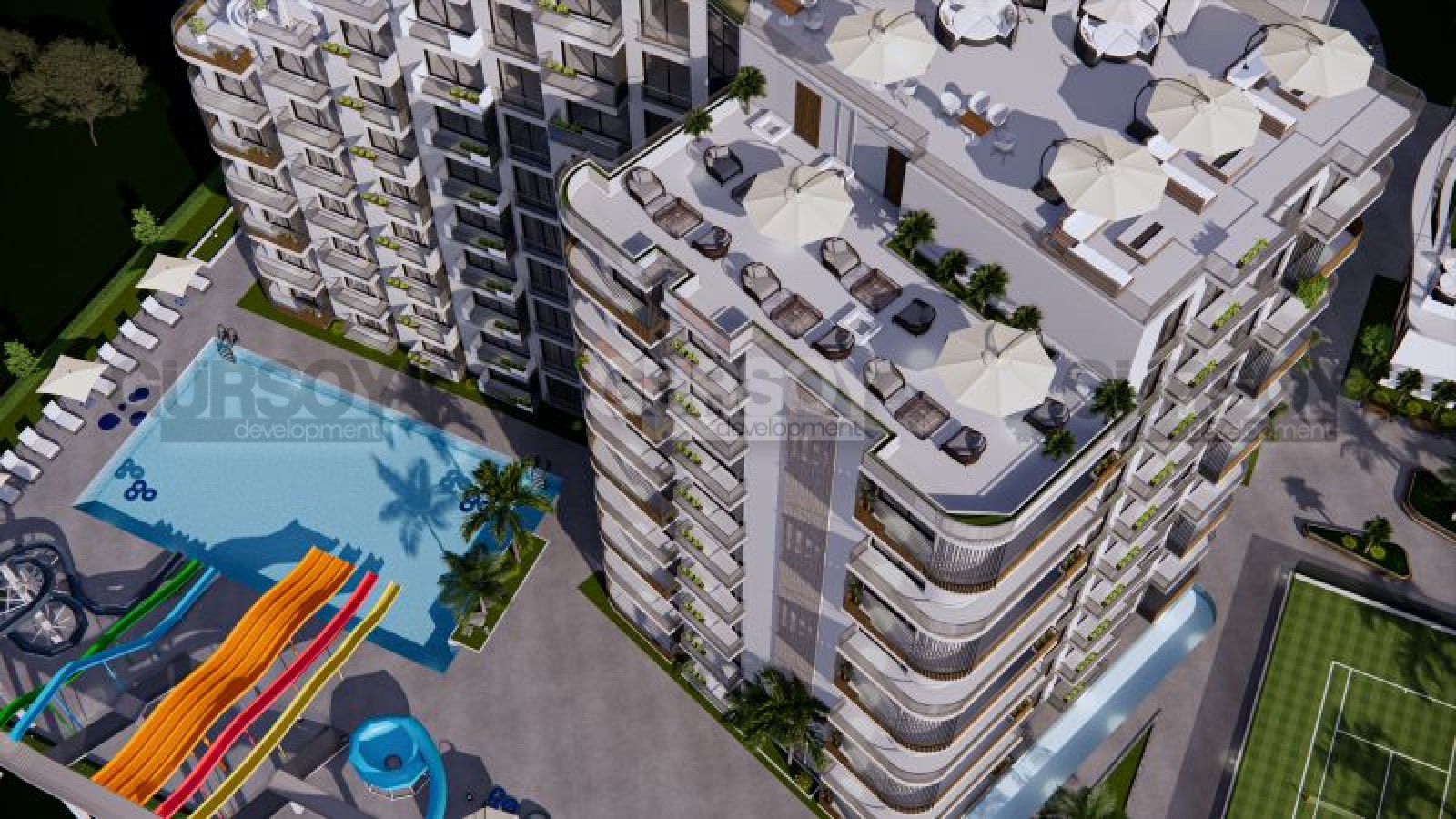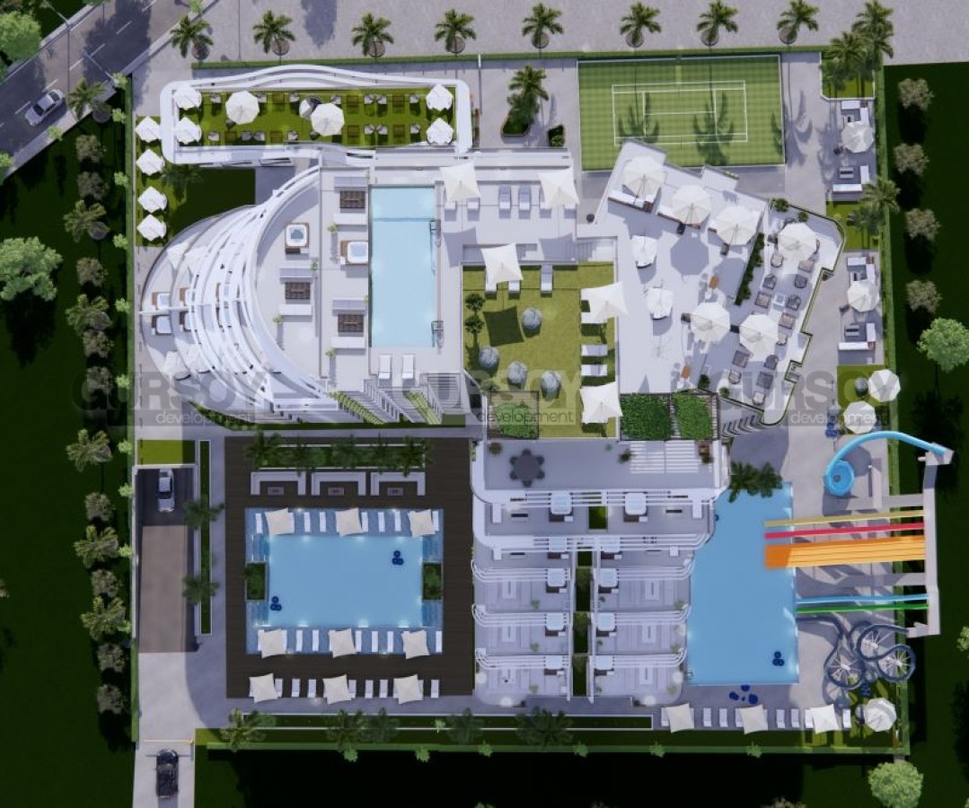 В жилом комплексе будет представлена инфраструктура для полноценного отдыха: несколько открытых бассейнов, крытый бассейн, где можно наслаждаться водными процедурами в любое время года, фитнес-центр и сауна для заботы о своем здоровье. На крыше здания вас ждет бассейн с панорамным видом на бескрайнее море - идеальное место для вечерних наслаждений. А на 11 этаже комплекса, расположен ресторан, где можно насладиться изысканными блюдами с видом на закат. На собственном пляже предлагаются уникальные развлечения, такие как кайтсерфинг и виндсерфинг, что сделает ваш отдых неповторимым. Для вашего удобства предусмотрен шатл на пляж.