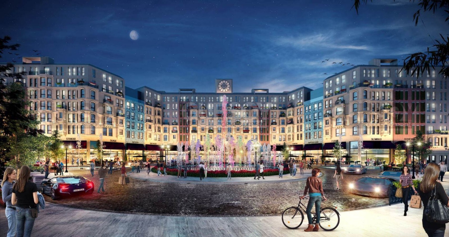 Особенностью проекта является наличие большого фонтана, окруженного магазинами и ресторанами, создающего уникальную атмосферу для жителей и гостей комплекса.