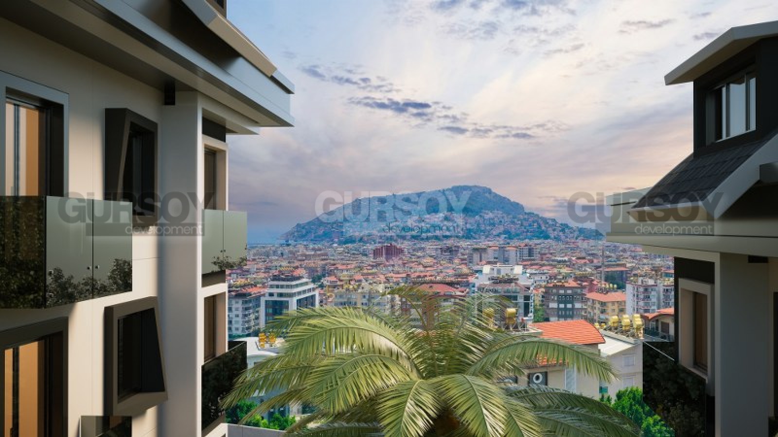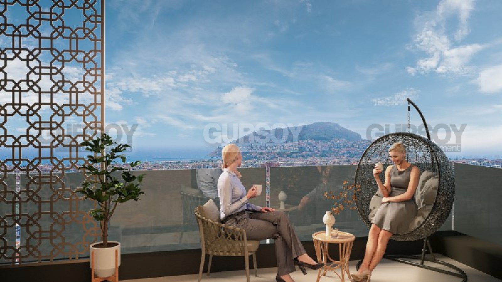 Агентства недвижимости Gursoy Development представляет изысканный пентхаус 4+1, 200м2 с панорамными видами на море и город. Квартира занимает верхние два этажа в премиальной малоэтажной резиденции в районе Хасбахче. Район находится выше центра курортной Алании, в направлении Торосских гор. Район престижный, его ценят за уединенность и потрясающие виды на город, старую крепость и море.