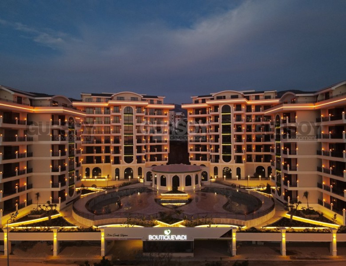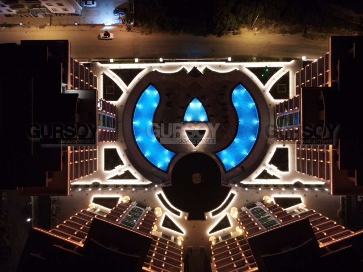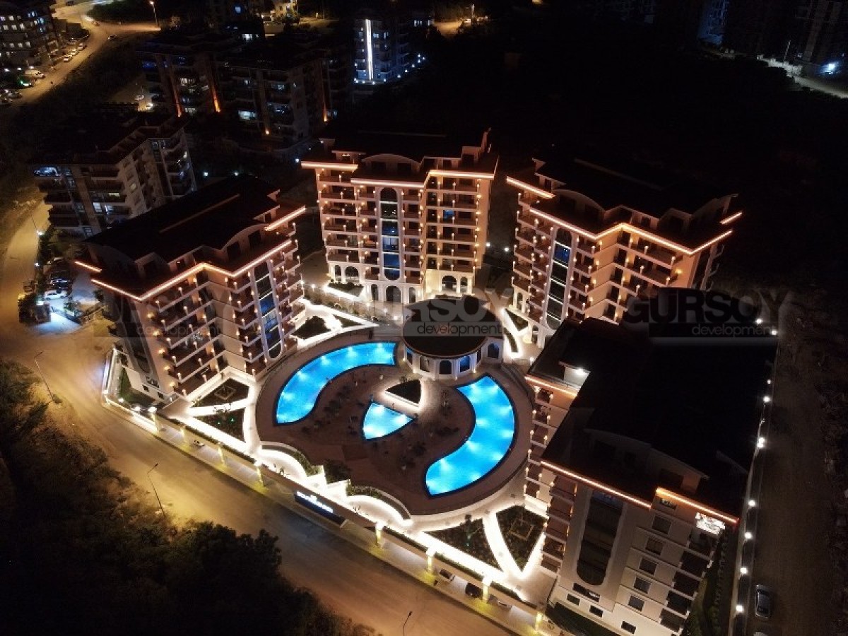 Комплекс радует своей обширной инфраструктурой, предлагая широкий спектр удобств для резидентов: открытые и крытые бассейны, сауна, хамам, фитнес-центр, кинотеатр, теннисный корт, зелёный сад с беседками, детская игровая комната и площадка. Для автовладельцев предусмотрена крытая парковка для каждой квартиры и открытая парковка для гостей, а также станция зарядки электромобилей. В комплексе работают смотритель, охрана и видеонаблюдение, обеспечивая безопасность и комфорт жильцов. Резиденция находится в 3000 метрах от моря, что делает её идеальным местом для спокойного и уединённого отдыха.