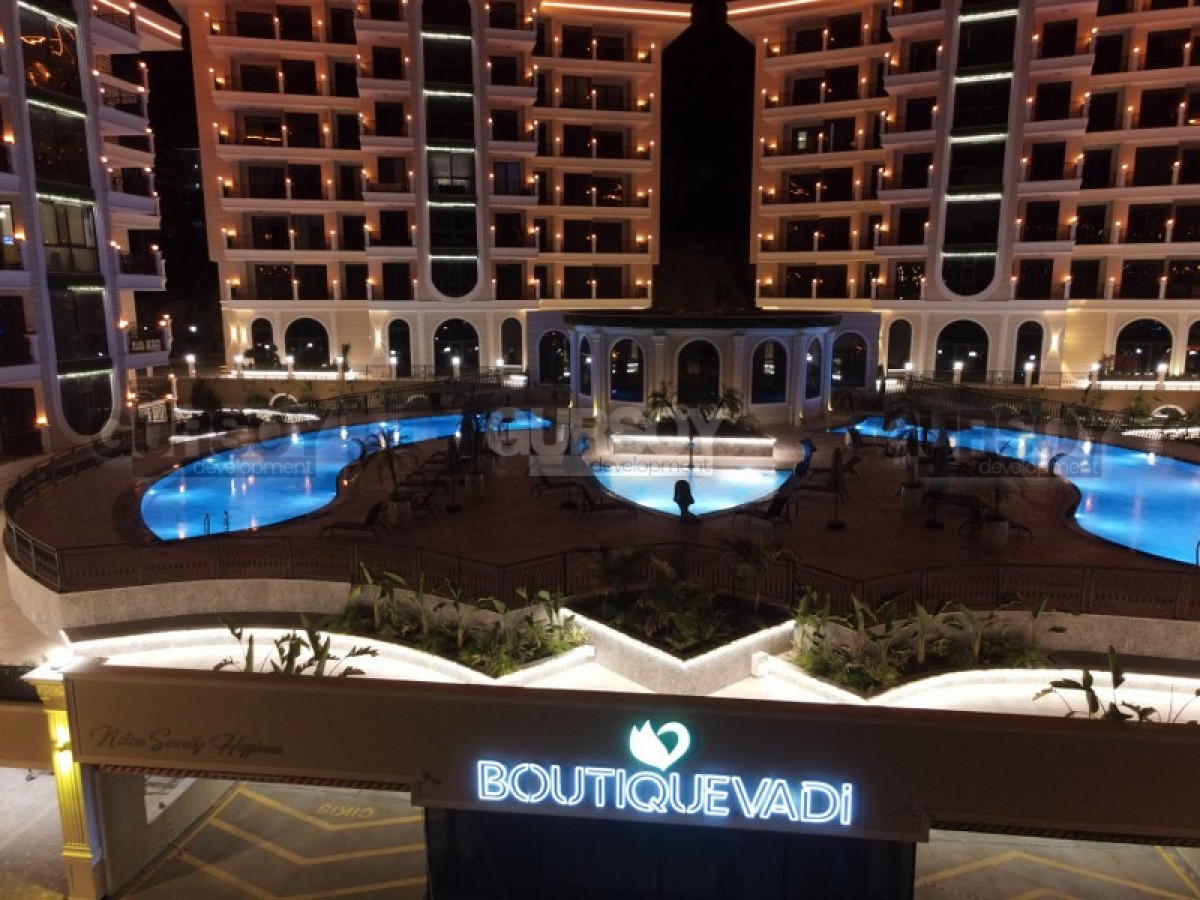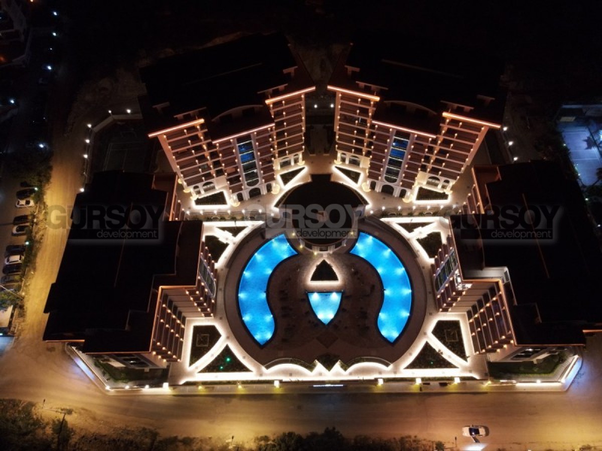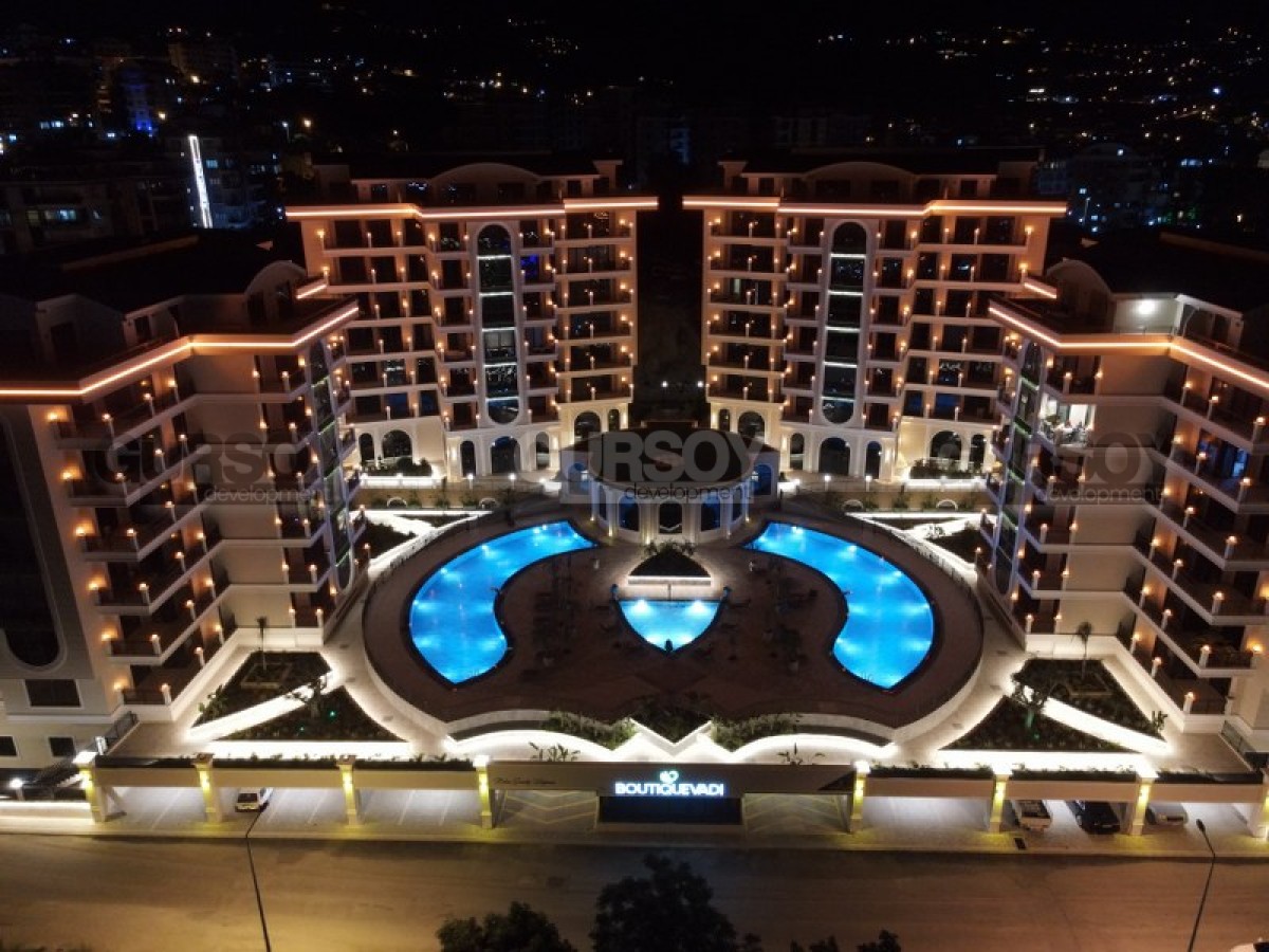 Комплекс радует своей обширной инфраструктурой, предлагая широкий спектр удобств для резидентов: открытые и крытые бассейны, сауна, хамам, фитнес-центр, кинотеатр, теннисный корт, зелёный сад с беседками, детская игровая комната и площадка. Для автовладельцев предусмотрена крытая парковка для каждой квартиры и открытая парковка для гостей, а также станция зарядки электромобилей. В комплексе работают смотритель, охрана и видеонаблюдение, обеспечивая безопасность и комфорт жильцов. Резиденция находится в 3000 метрах от моря, что делает её идеальным местом для спокойного и уединённого отдыха.