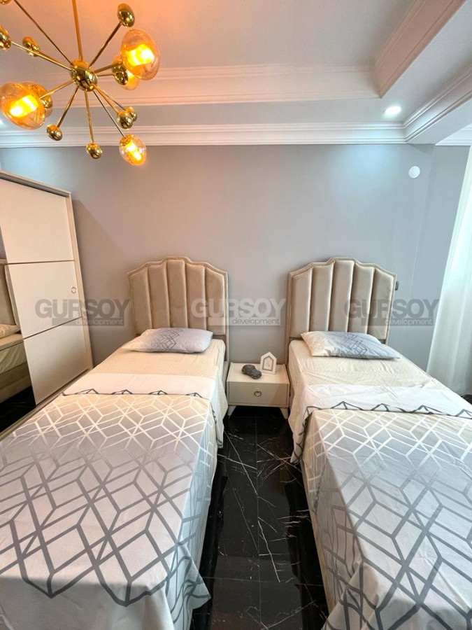 В квартире две просторные застекленные балконные лоджии, на которых уже есть мебель, чтобы вы могли наслаждаться свежим воздухом и пейзажами. Балконы смотрят на тихие улицы района, обеспечивая уединение и тишину. Отличное расположение квартиры делает ее идеальным выбором для проживания или аренды. Она находится всего в 850 метрах от центра города и одного из лучших песчаных пляжей Алании, Кейкубат. Пляж оборудован широкой прогулочной набережной, где можно наслаждаться прекрасными видами и красивыми закатами.