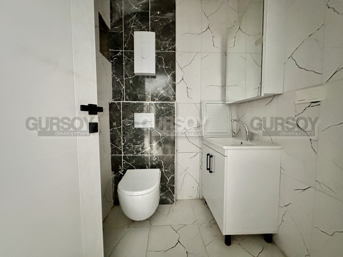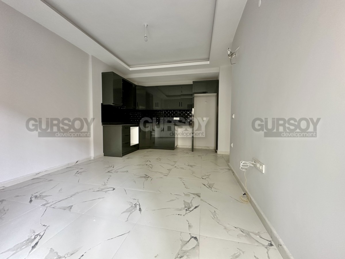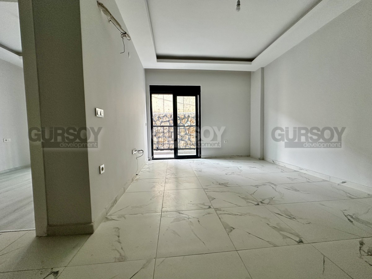 Продаётся новая квартира планировки 1+1 площадью 55 м² в районе Оба. Расположена на 1 этаже пятиэтажного дома 2025 года постройки. Планировка включает гостиную с кухней открытого типа, одну спальню, ванную комнату и балкон. Квартира светлая, компактная и удобная для проживания или сдачи в аренду.