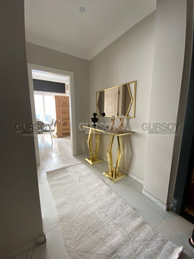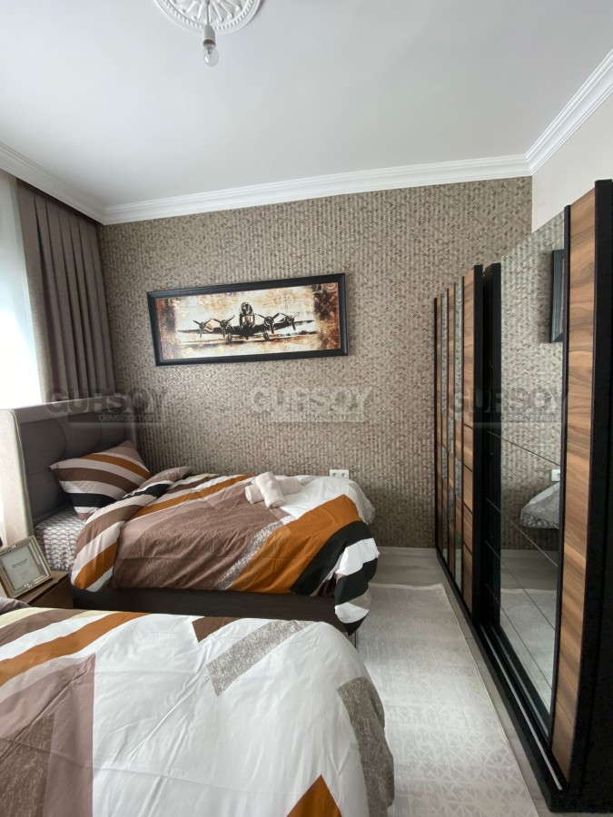 В нашем портфолио появилась новая, готовая к проживанию квартира, на 4-м этаже в доме, введенном в эксплуатацию в начале 2023 года. Находится она в спокойном, живописном районе Аланьи - Демирташ, всего в нескольких минутах ходьбы от моря. В планировке квартиры, общей площадью 90 м2, - отдельная кухня, гостиная, 2 спальни, санузел и балкон. Дизайн комнат - современный и лаконичный, с монохромной гаммой спокойных оттенков в интерьере. В салоне организована комфортабельная зона отдыха, с массивными диванами, креслом, журнальными столиками и тумбой, уютные спальни укомплектованы мягкими кроватями, тумбами и гардеробными шкафами, а для кухни привезена новая бытовая техника.
