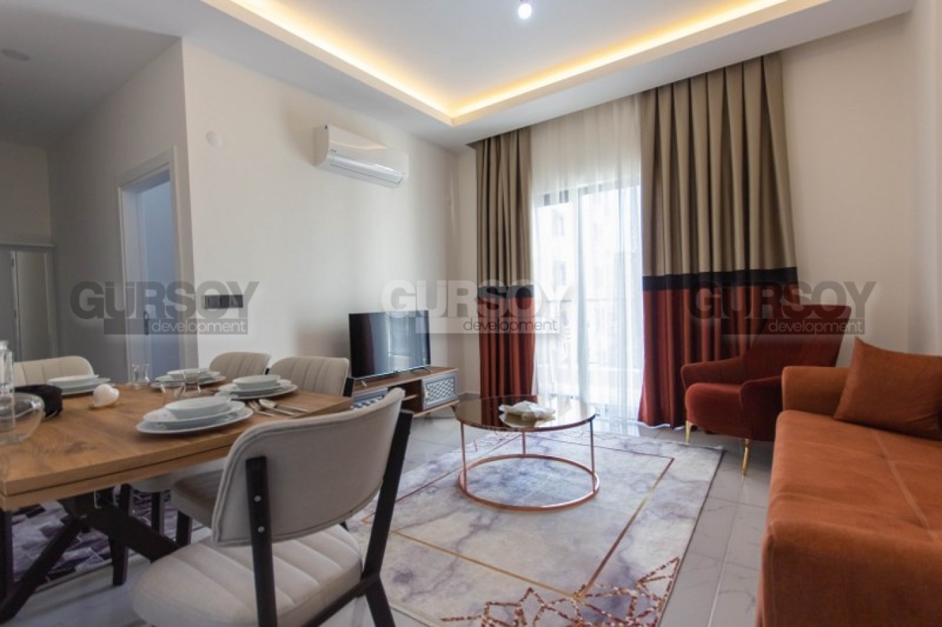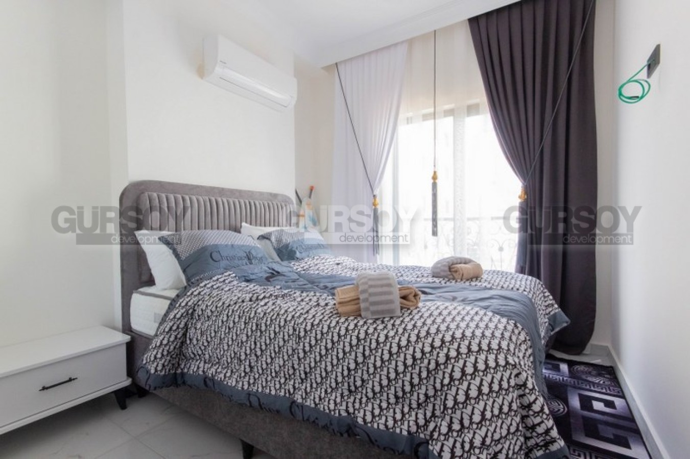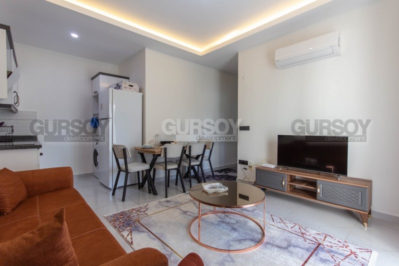 В 2022 году в нескольких минутах ходьбы от центра популярного района Аланьи - Махмутлар, завершилось строительство комфортабельного жилого комплекса, с богатой внутренней инфраструктурой и ухоженной, просторной территорией. На 2-м его этаже выставлена на продажу небольшая квартира, которая подходит как для собственного проживания, так и для сдачи в аренду. Общая ее площадь - 52 м2, в планировке - совмещенная с кухней гостиная, спальня, санузел и открытый балкон, с видом на город. Квартира предлагается с полным набором мебели и бытовой техники - в гостиной установлены: комфортабельный диван, кресло, журнальный столик, тумба и обеденный стол, с мягкими стульями. Спальня укомплектована большой кроватью, тумбами и гардеробным шкафом, а компактная кухня укомплектована холодильником, стиральной и посудомоечной машинами и сенсорной поверхностью.