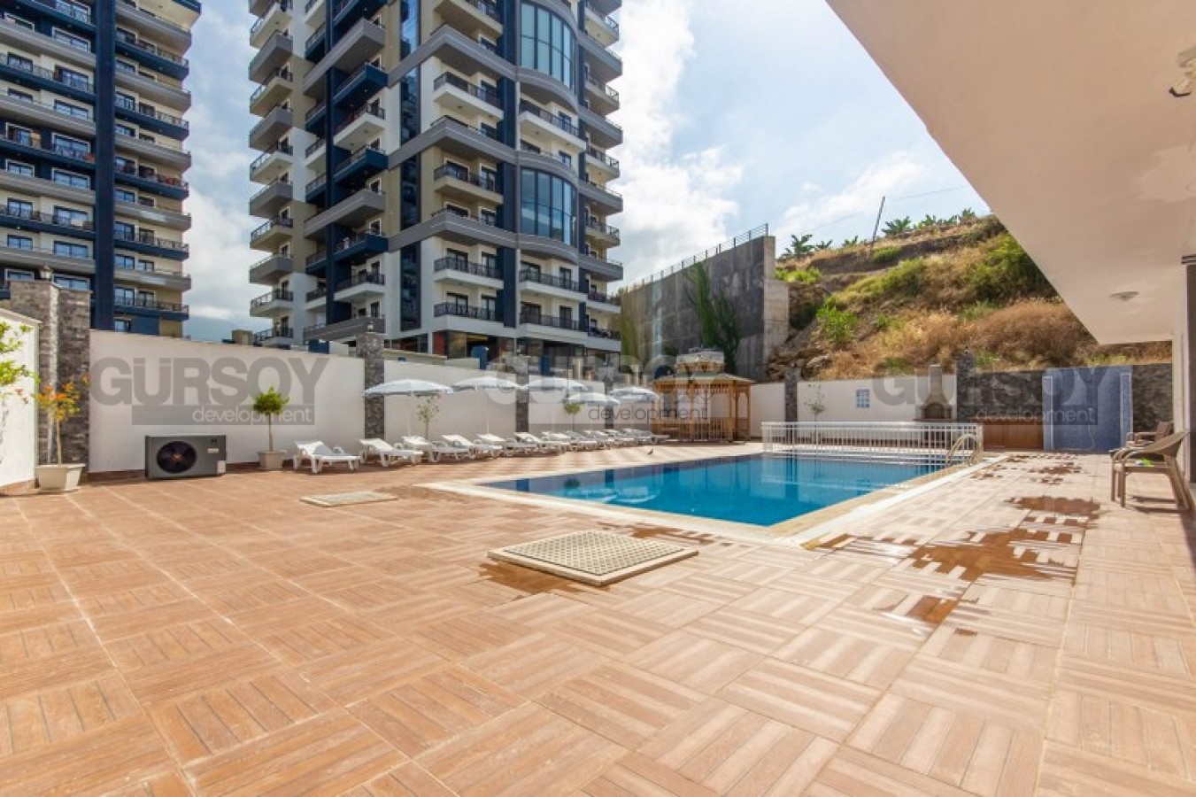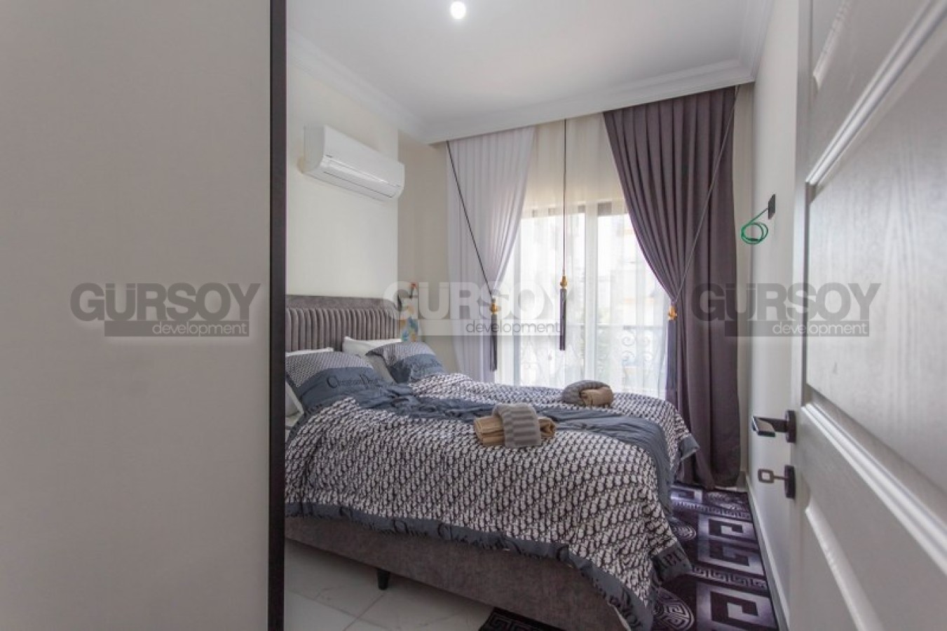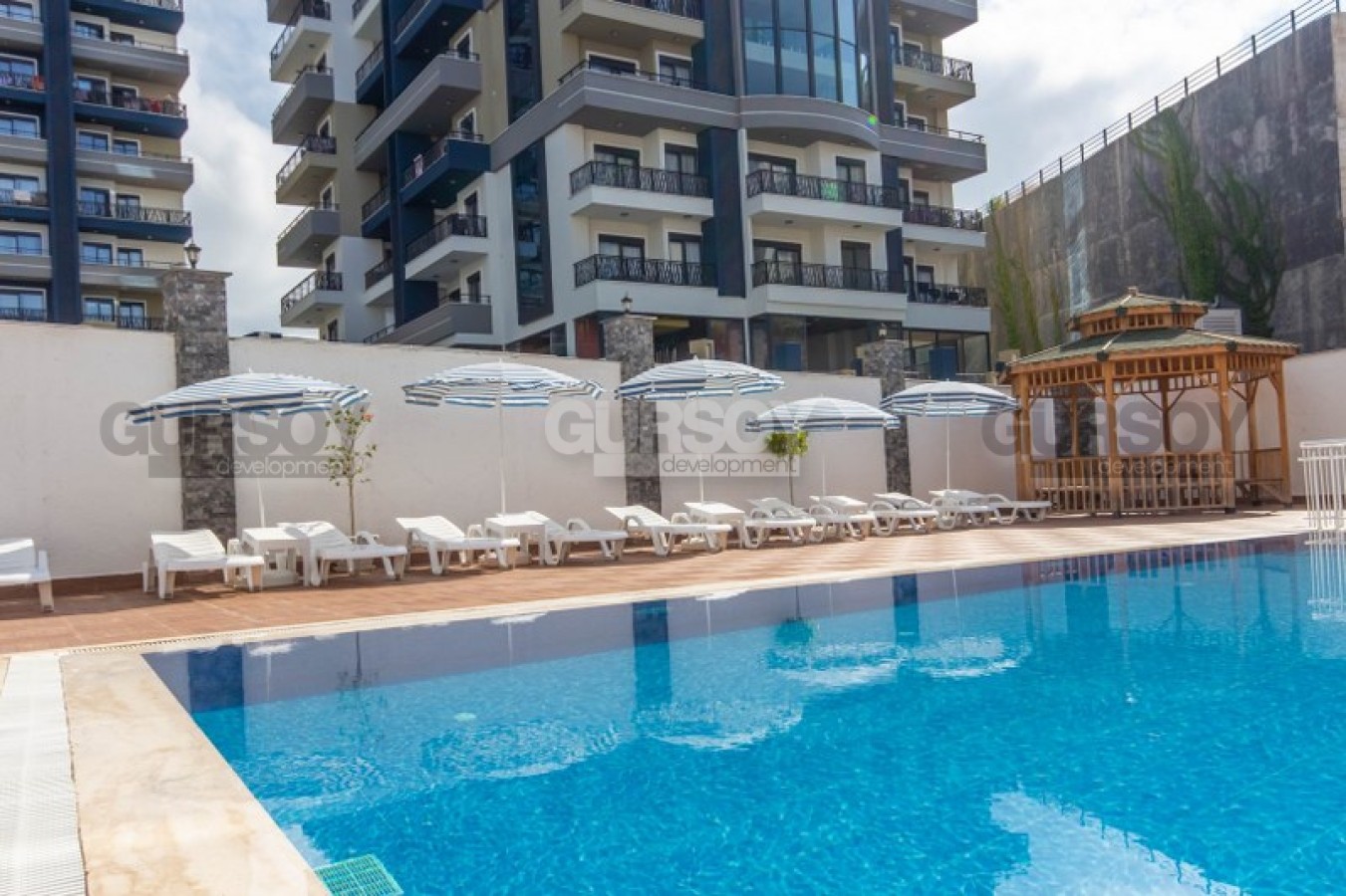 В 2022 году в нескольких минутах ходьбы от центра популярного района Аланьи - Махмутлар, завершилось строительство комфортабельного жилого комплекса, с богатой внутренней инфраструктурой и ухоженной, просторной территорией. На 2-м его этаже выставлена на продажу небольшая квартира, которая подходит как для собственного проживания, так и для сдачи в аренду. Общая ее площадь - 52 м2, в планировке - совмещенная с кухней гостиная, спальня, санузел и открытый балкон, с видом на город. Квартира предлагается с полным набором мебели и бытовой техники - в гостиной установлены: комфортабельный диван, кресло, журнальный столик, тумба и обеденный стол, с мягкими стульями. Спальня укомплектована большой кроватью, тумбами и гардеробным шкафом, а компактная кухня укомплектована холодильником, стиральной и посудомоечной машинами и сенсорной поверхностью.