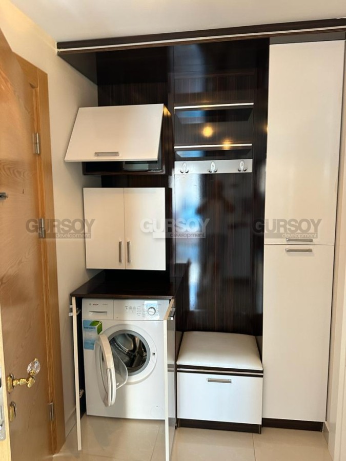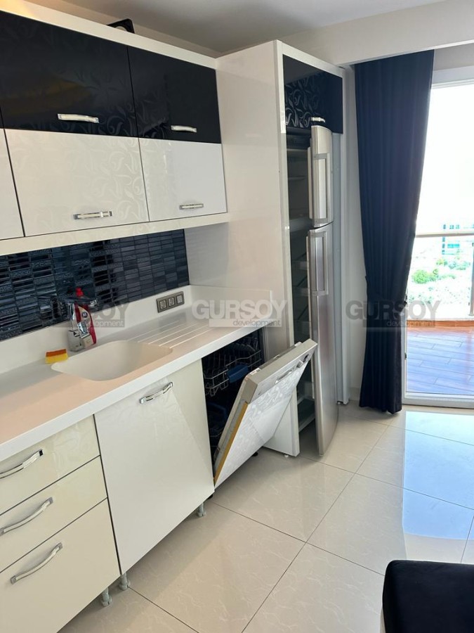 Портфолио нашей компании пополнила прекрасная квартира, расположенная на 11-м этаже в жилом комплексе с богатейшей внутренней инфраструктурой, где все предусмотрено для безопасности, комфорта и активного времяпровождения. В планировке квартиры, общей площадью 68 м2, - кухня открытого типа, совмещенная с салоном, спальня, оснащенный душевой кабиной санузел и открытый балкон с панорамным видом на город и море. Квартира выставлена на продажу с хорошим ремонтом, современной мебелью и бытовой техникой, что позволяет переехать сразу же после заключения сделки. Светлая гостиная укомплектована большим угловым диваном, гарнитуром и обеденным столом на 4 персоны. Компактная кухня оснащена холодильником, посудомоечной машиной, сенсорной варочной поверхностью и духовым шкафом. В спальне установлены мягкая кровать и тумбы, а в прихожей имеется практичный шкаф, в одной из секций которого установлена стиральная машина.