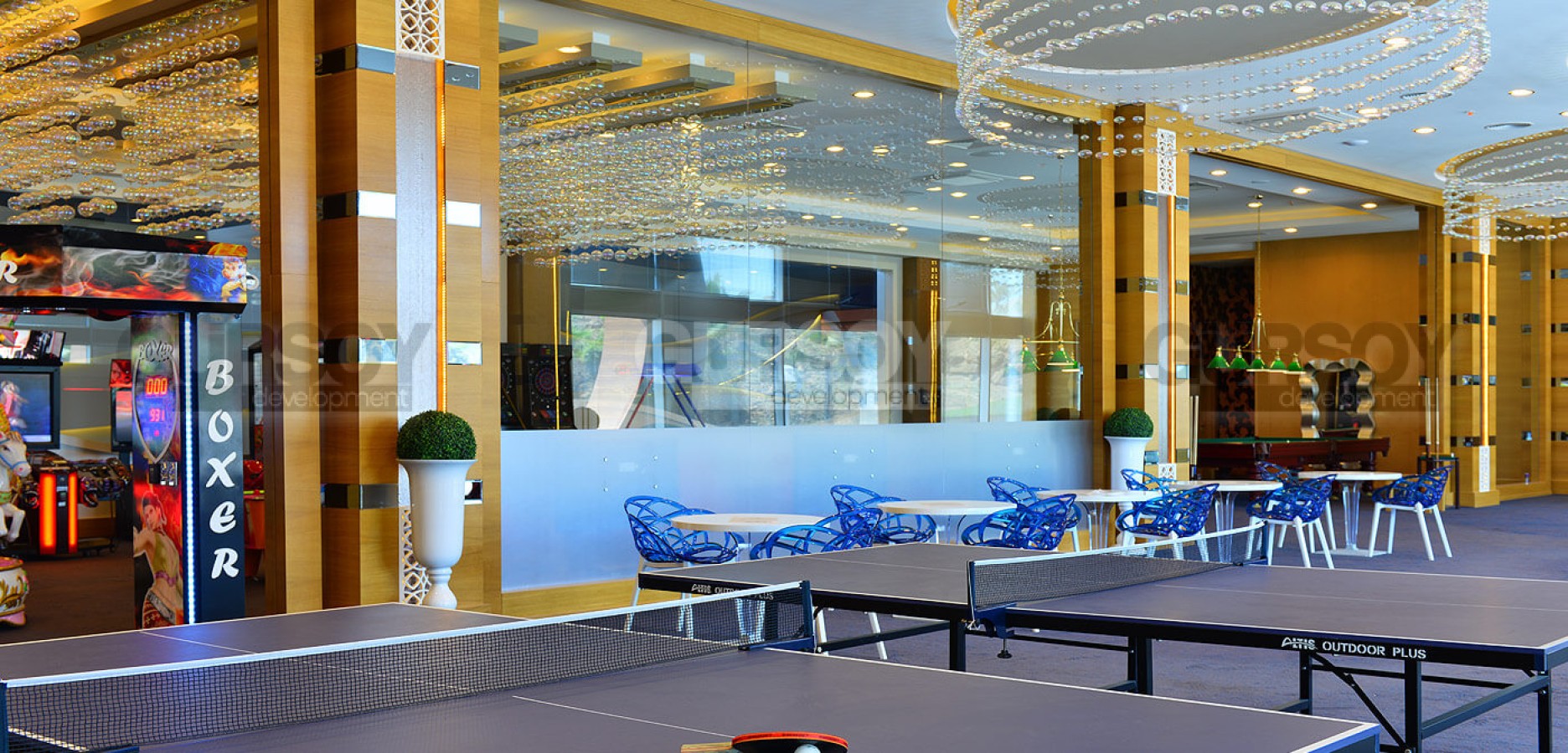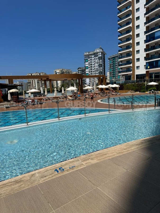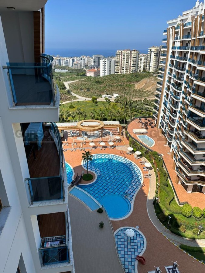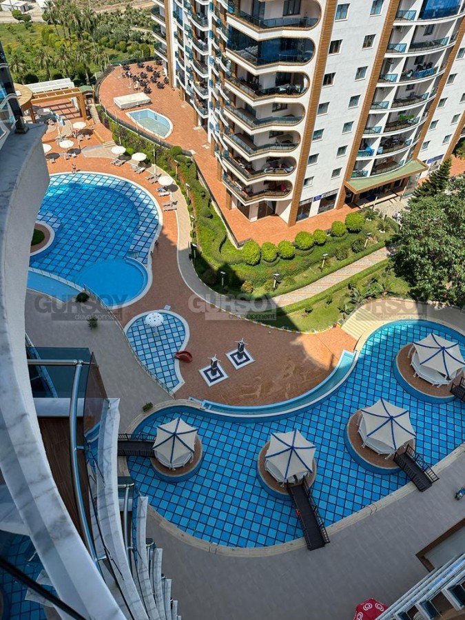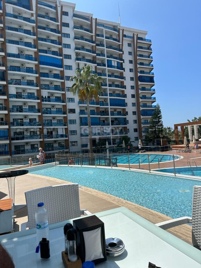Комплекс, в котором находится квартира, был построен в 2015 году и предлагает массу сервисов для досуга - открытые бассейны для взрослых и детей с водными горками, крытый бассейн с подогревом, кинозал, дискотеку, боулинг, кафе, ресторан, мини-клуб, просторный игровой зал, теннисный корт, баскетбольное поле и детскую площадку. В резиденции оборудована СПА зона с фитнес клубом, сауной, хамамом, парной и массажными кабинетами, а для удобства жителей на территории работают магазины, имеется парковка и установлена круглосуточная охрана.