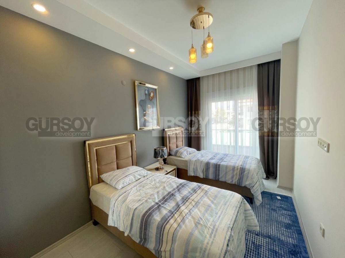 Если вам по душе живописные горные панорамы и комфортный пляжный отдых, предлагаем обратить внимание на современную, благоустроенную квартиру 2+1, на 3-м этаже в жилом комплексе 2021 года постройки, в живописном районе Аланьи - Паяллар. В планировке квартиры, общей площадью 98 м2, - отдельная кухня, гостиная, 2 спальни, 2 санузла и 2 балкона. Дизайн комнат - сдержанный и лаконичный, с теплыми оттенками в интерьере, мягким освещением и со вкусом подобранными картинами. Гостиная укомплектована мягкими диванами, креслами, журнальным столиком и тумбой; спальни - мягкими кроватями и гардеробными шкафами, а компактная, стильная кухня оснащена всей необходимой бытовой техникой.