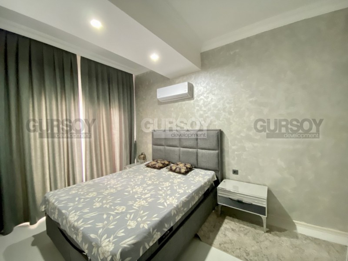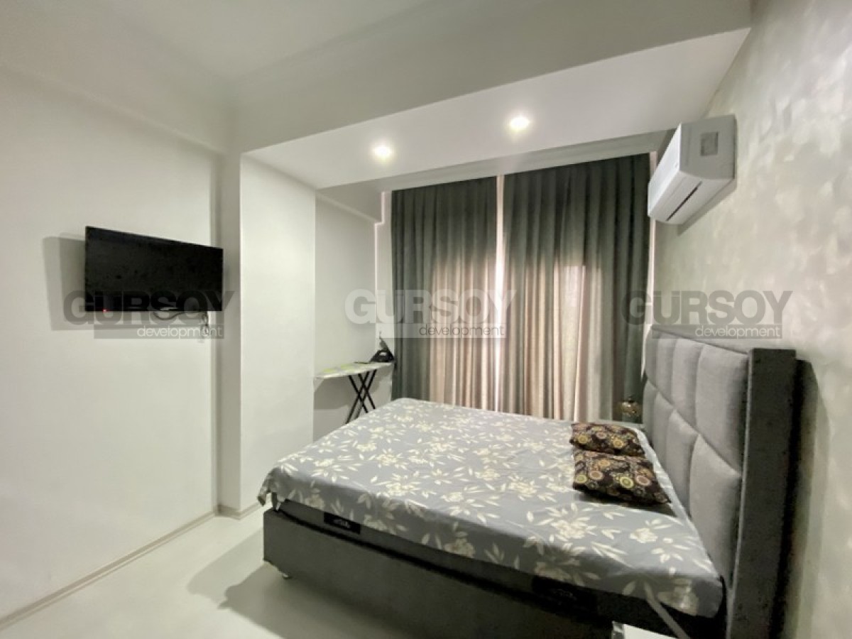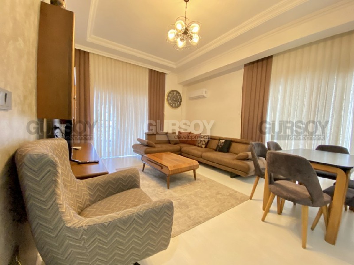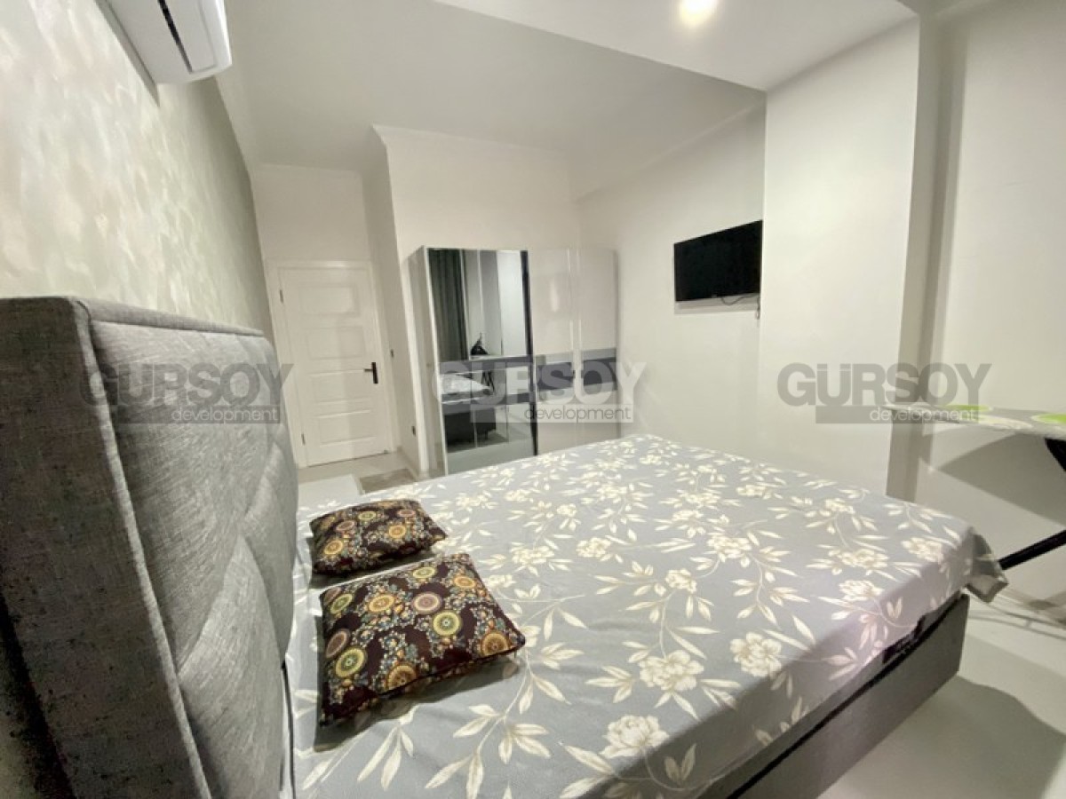 Портфолио нашей компании пополнила недорогая новая квартира, с полным набором мебели и бытовой техники, расположенная на 1-м этаже в жилом комплексе, построенном в 2022 году, в центре популярного района Аланьи - Махмутлар. Небольшая, площадью 50 м2, она имеет в планировке совмещенную с кухней гостиную, спальню, санузел и застекленный балкон, с видом на город. Квартира - светлая и современная, с теплыми оттенками и деревом в интерьере. В гостиной установлены: большой угловой диван, кресло, журнальный столик и гарнитур; в спальне - мягкая кровать, тумбы и гардеробный шкаф. Кухня оснащена холодильником, стиральной и посудомоечной машинами, сенсорной варочной поверхностью и духовым шкафом, в санузле установлена современная душевая кабина, а на балконе - удобная садовая мебель.