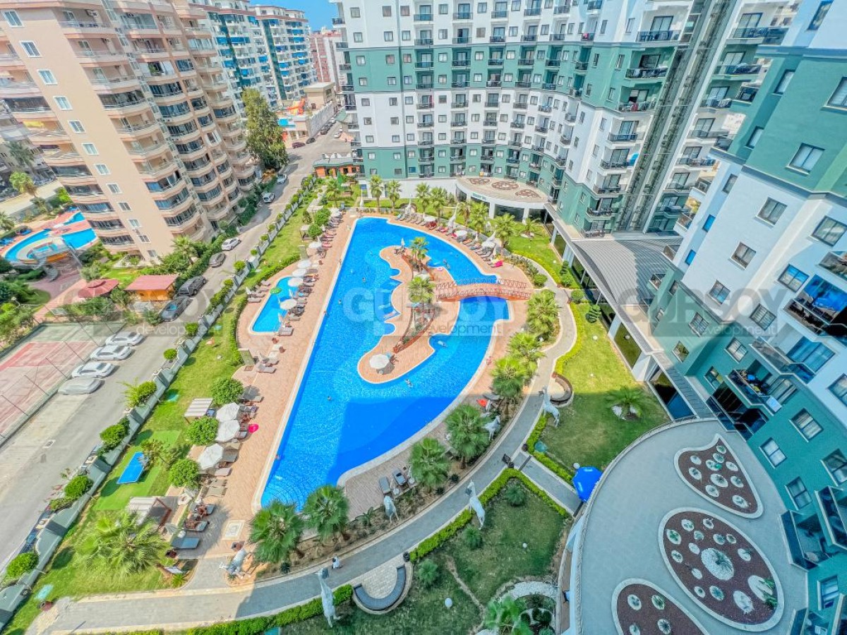 Жилой комплекс, на 8-м этаже которого находится квартира, был построен в 2022 году и имеет на территории просторный пейзажный сад, открытый и крытый бассейны, теннисный корт, баскетбольное поле, фитнес клуб, сауну, хамам, детскую площадку, ресторан, парковку и круглосуточную охрану.