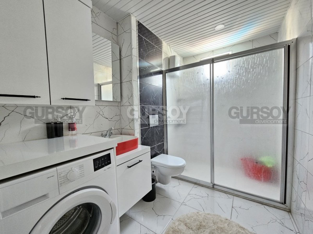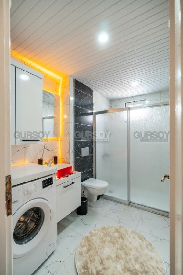 Мечтаете жить на Средиземноморском побережье Турции, наслаждаться теплыми зимами, мягким климатом, живописными горными панорамами и роскошными пляжами? Если это так, предлагаем обратить внимание на комфортабельную, светлую и уютную квартиру в центре Аланьи. Квартира 1+1, на площади 70 м2, имеет в планировке совмещенную с кухней гостиную, спальню, оснащенный душевой кабиной санузел и 2 открытых балкона, с видом на город и горы. Квартира находится на 3-м этаже в доме 2000 года постройки, и предлагается с новым качественным ремонтом, современной мебелью и бытовой техникой. Светлая гостиная укомплектована стильным бежевым диваном, креслом, журнальным столиком, гарнитуром, и обеденным столом. Компактная кухня оснащена холодильником, посудомоечной машиной и духовым шкафом, а в спальне установлены: большая кровать, комфортабельное кресло, тумбы и вместительный гардеробный шкаф.
