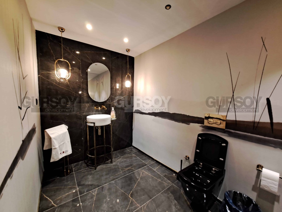 Вилла располагается в престижном районе Каргыджак, в последнее время активно развивающийся. Здесь отлично обустроенные пляжи с удобным заходом в воду и прибрежными ресторанами. В районе есть своя поликлиника, аптека, кафе, пекарня, магазины, инфраструктура расширяется, планируется открытие полей для гольфа.
