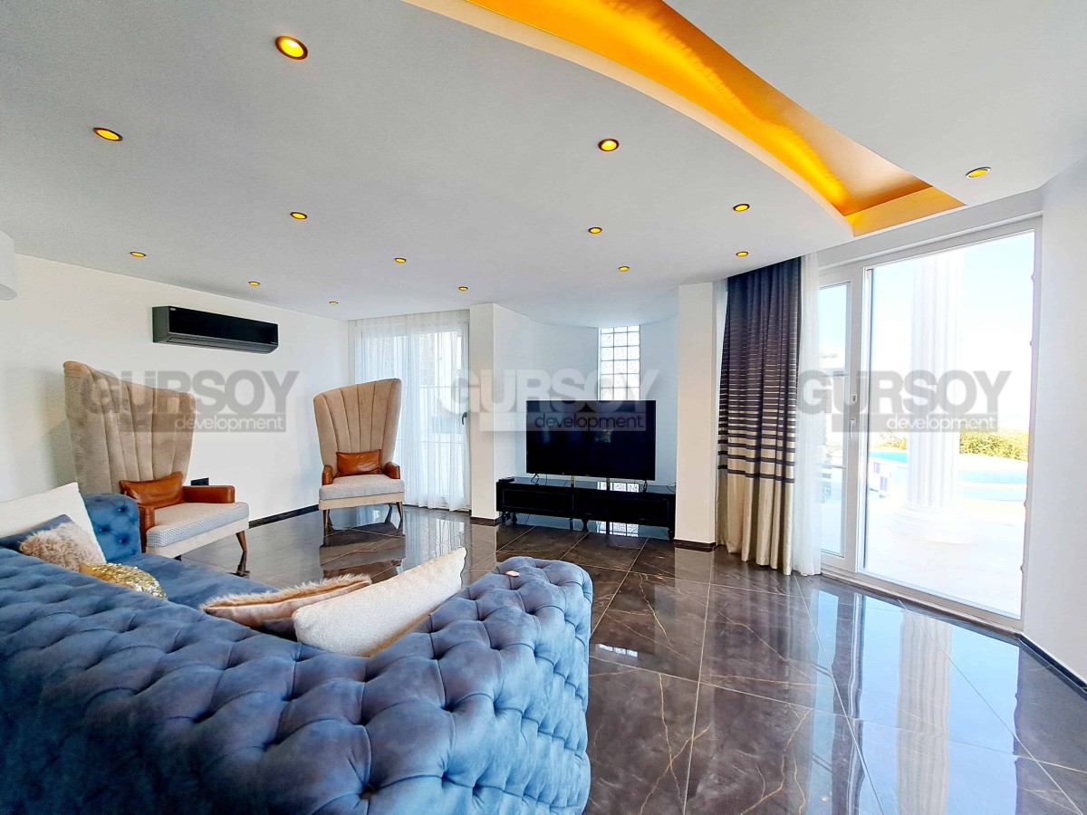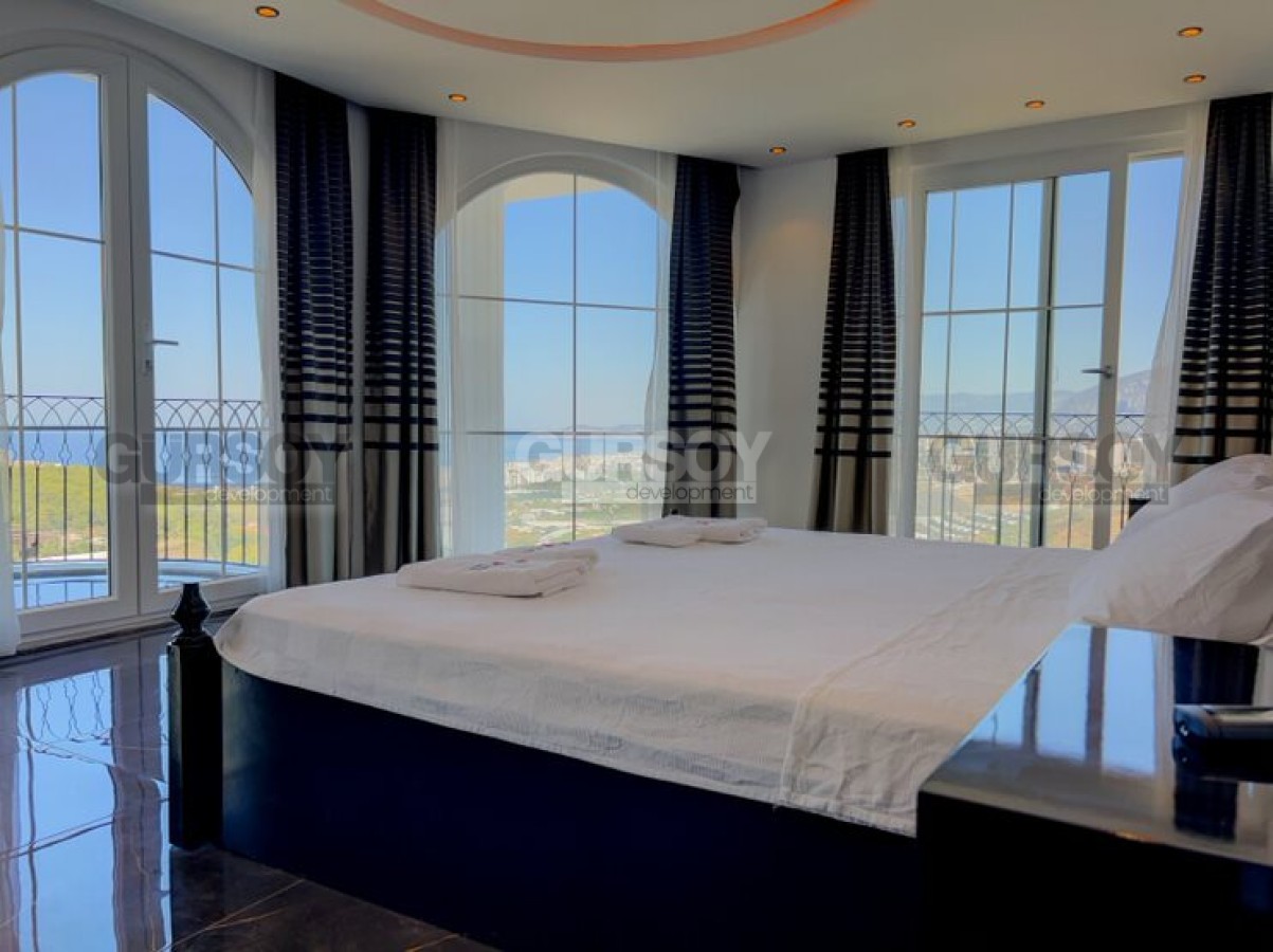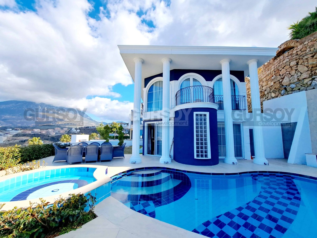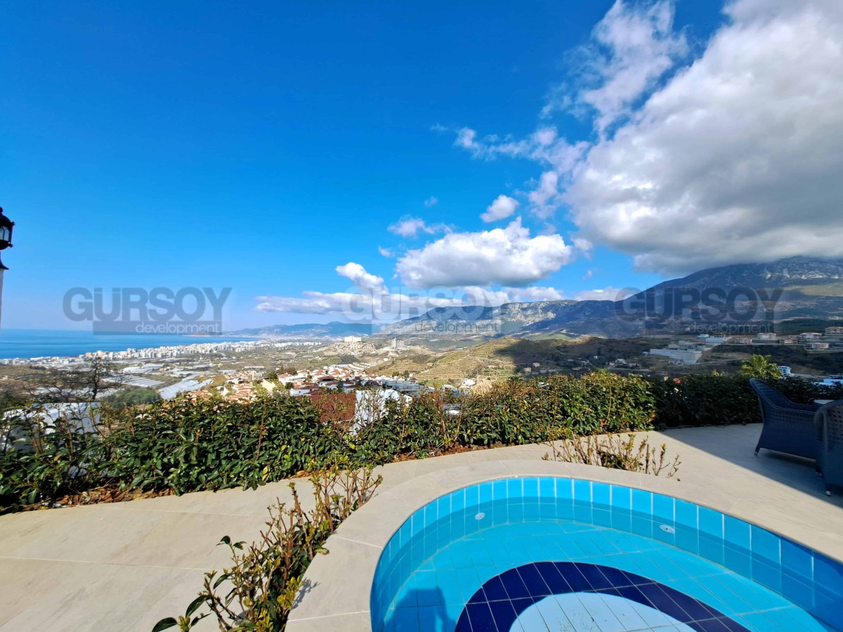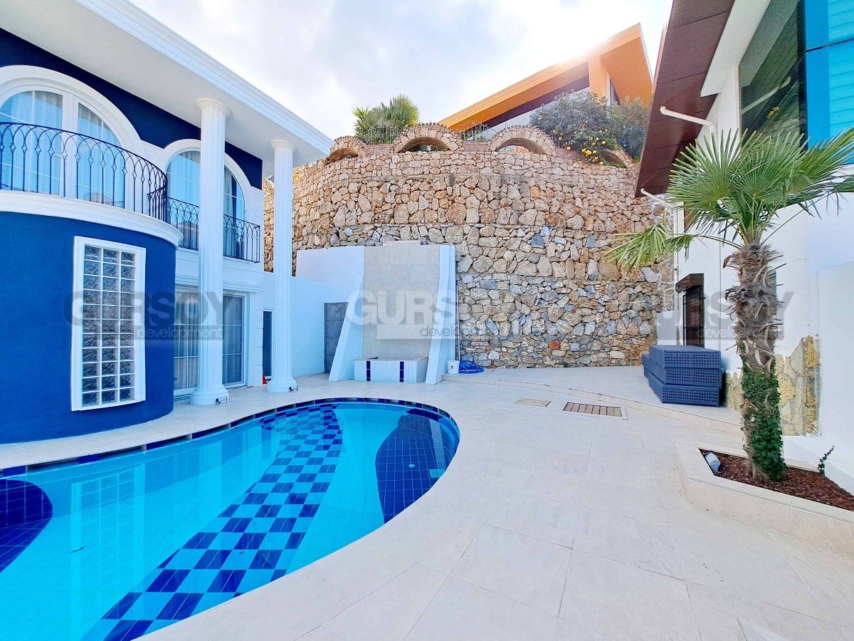 Эта прекрасная вилла имеет собственный участок 500 м2, приватный бассейн с джакузи, который имеет панорамный вид на море и побережье Алании. Для автотранспорта предусмотрен гараж.