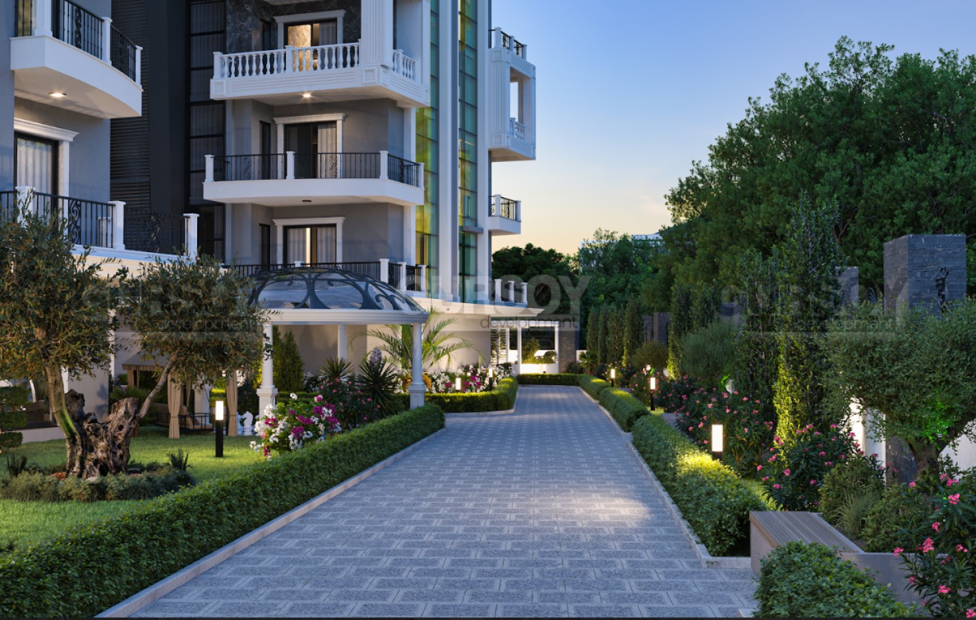 Проект расположен в одном из центральной части Аланьи, в 890 метрах от знаменитого пляжа Клеопатры. Его расположение обеспечивает легкий доступ к основным городским удобствам, и все потребности можно решить, не удаляясь далеко от дома. В настоящее время продолжается строительство проекта, и продажи квартир уже стартовали.