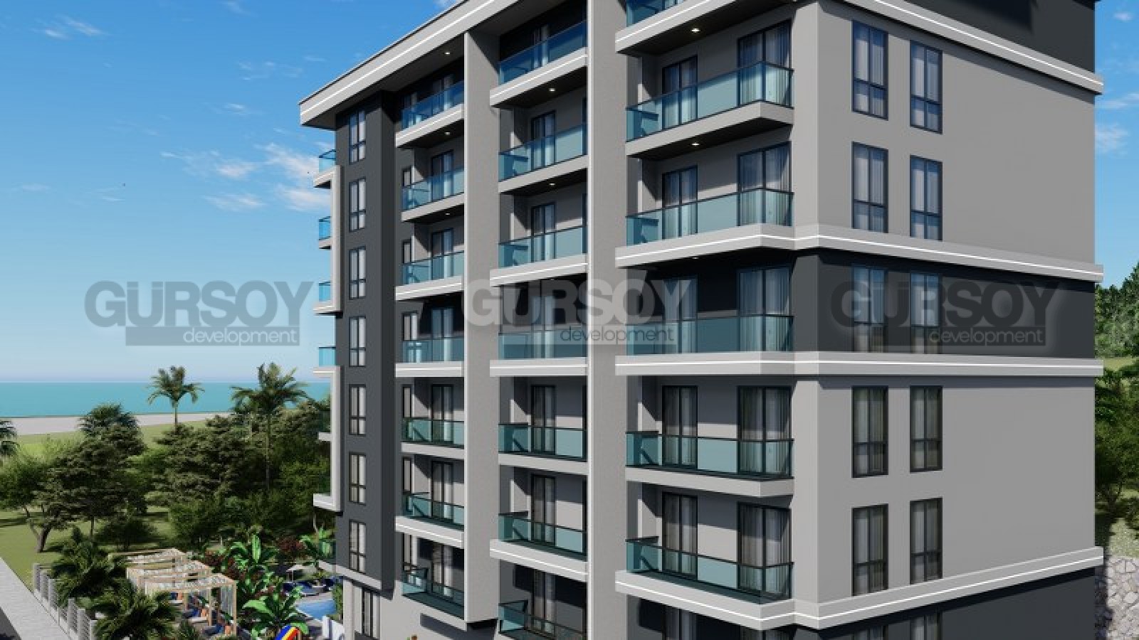 Жилой комплекс расположен в 500 м до пляжа. Индивидуальный проект здания, с панорамными окнами, откуда открывается захватывающий вид на бескрайний морской горизонт. Планировки квартир 1+1, 58м2, 2+1, 75м2, 3+1, 105м2.