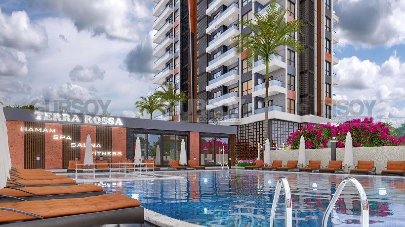Агентство недвижимости Gursoy Development представляет современный комплекс в районе Махмутлар, который является одним из популярных районов Алании. Он расположен в 14 км от центра курортного города. Здесь развитая инфраструктура, много ресторанов, кафе, магазинов, красивая благоустроенная набережная.