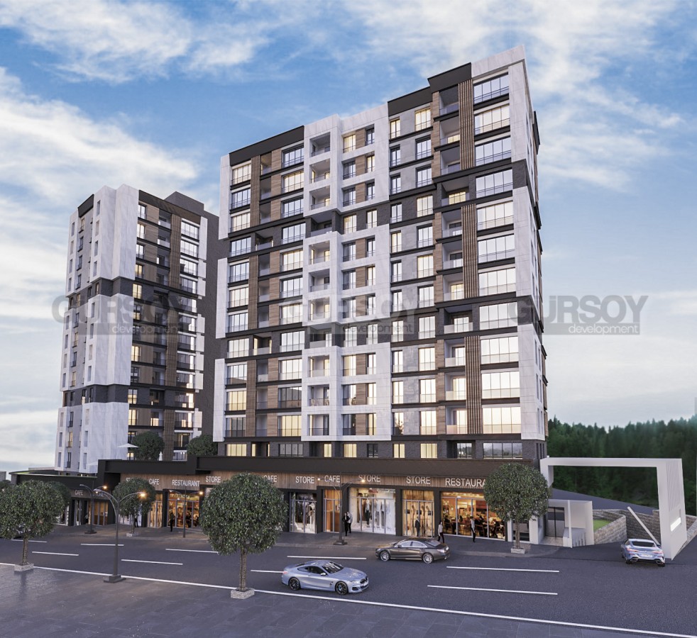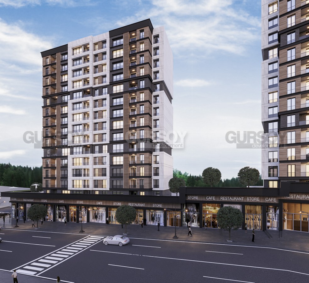 В высотных зданиях высотой 13-14 этажей расположены просторные квартиры с планировками от 2+1 до 4+1. Дизайн интерьера отличается современным стилем и множеством естественного света, благодаря панорамным окнам от пола до потолка. Современная кухня-камбуз оборудована современными принадлежностями и обеспечивает комфортное пространство для приготовления пищи.