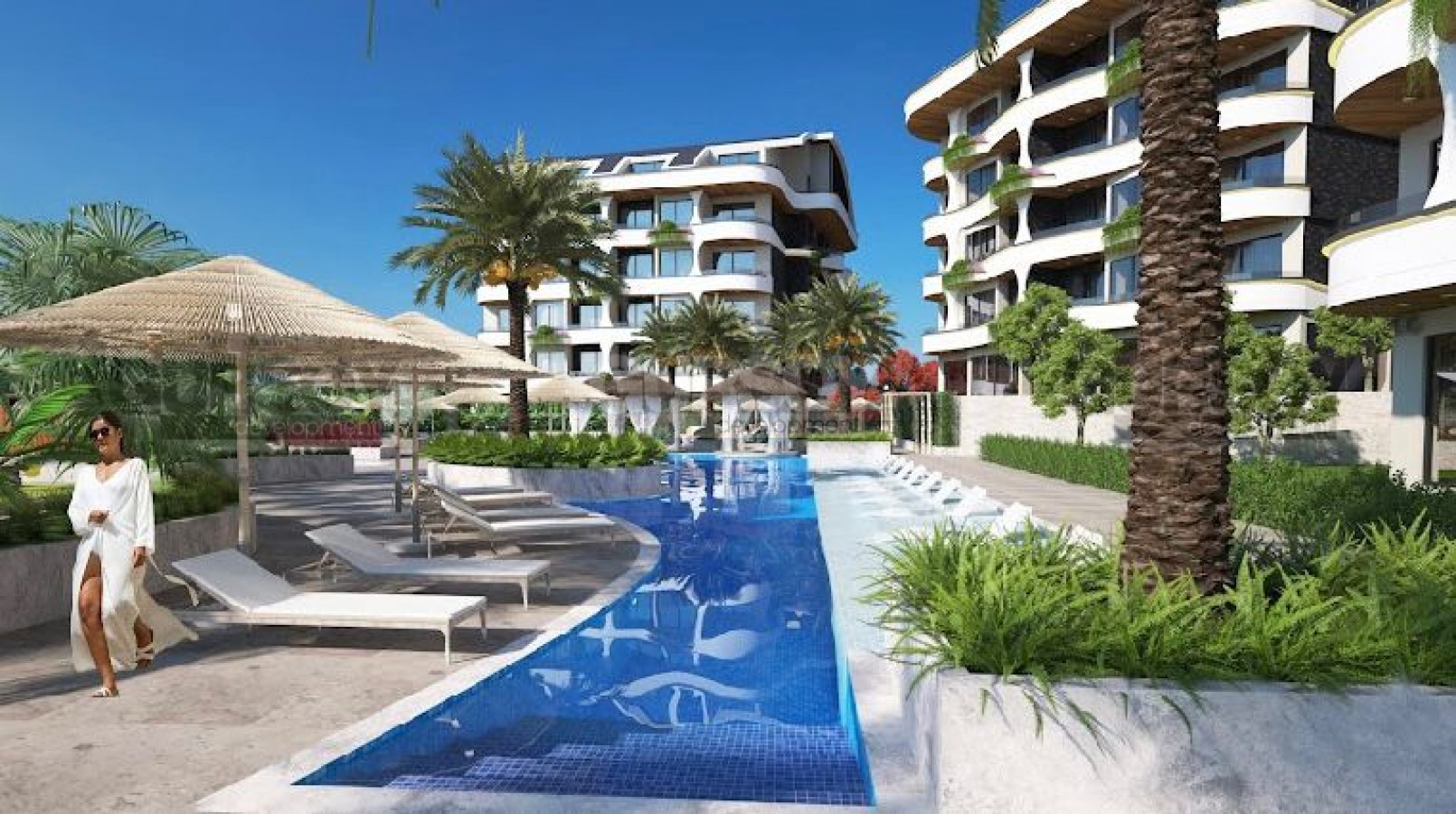 В комплексе предлагаются к продаже квартиры площадью от 47 до 55 квадратных метров с одной спальней (1+1), а также дуплексы площадью от 91 до 105 квадратных метров с двумя спальнями (2+1). Каждая из этих квартир оформлена с элегантностью и великолепным дизайном, предлагая роскошь и комфорт. Высота потолков составляет 2,7 метра, а точечное освещение на потолках добавляет эстетического очарования. Ванные комнаты оформлены с применением высококачественной сантехники, а полы оборудованы системой подогрева.