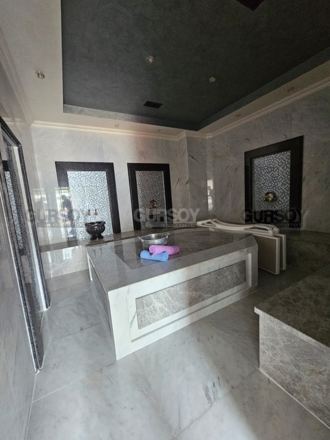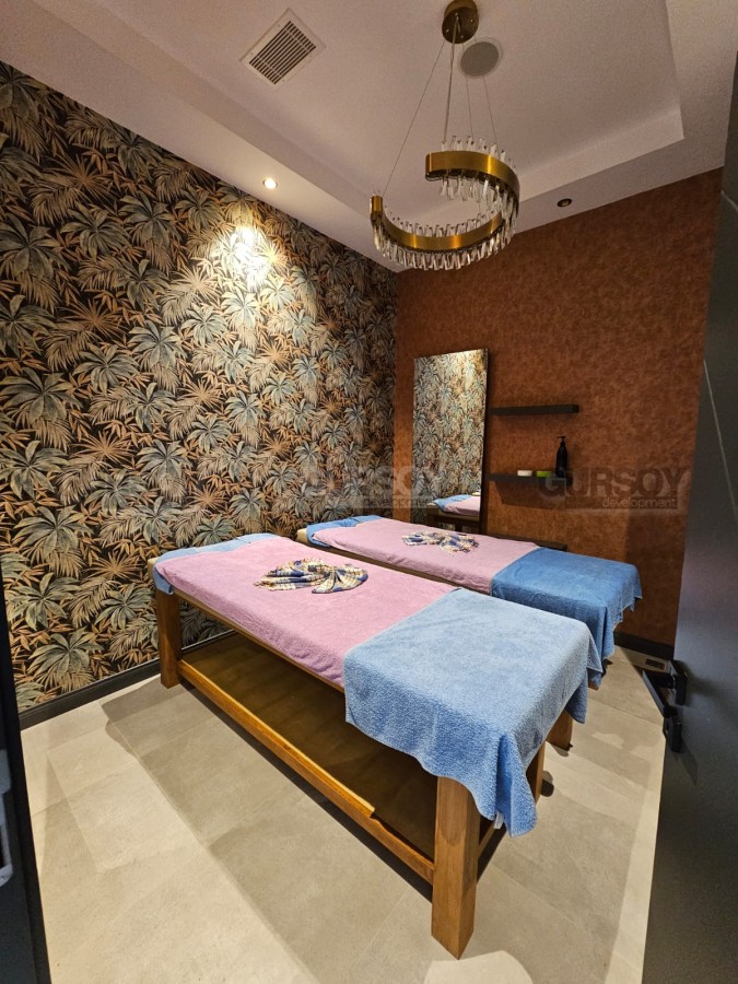Комплекс, в котором находится квартира, предлагает полный спектр инфраструктуры. Открытый бассейн приглашает насладиться солнечными днями, а крытый бассейн обеспечивает возможность плавать в любое время года. Сауна и хаммам предлагают релаксацию и восстановление после насыщенного дня. Фитнес-зона позволяет поддерживать активный образ жизни. Кроме того, комплекс включает в себя зоны для отдыха и развлечений, такие как барбекю, детская комната и игровая площадка, что делает его идеальным местом для семейного отдыха. Кафе на территории комплекса предлагает удобное место для встреч с друзьями. Парковка и круглосуточная охрана обеспечивают безопасность и удобство для жильцов.