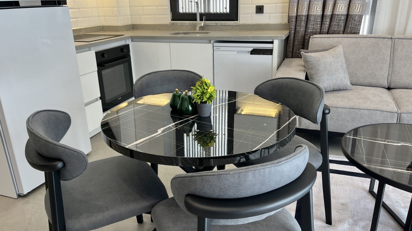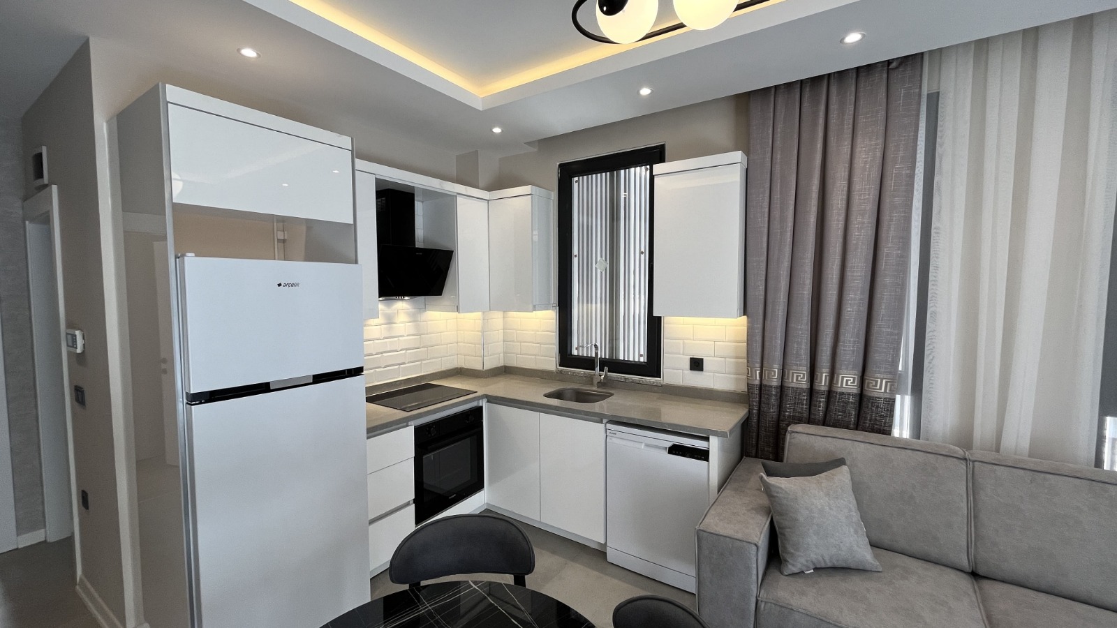 Предлагаем к продаже современную квартиру 1+1 в новом жилом комплексе, расположенную на 2 этаже с высоким входом. Квартира общей площадью 55 м², с балконом и одной ванной комнатой. Современный ремонт и полностью меблированная, она готова к заселению. Квартира идеально подходит как для проживания, так и для аренды с высоким доходом.