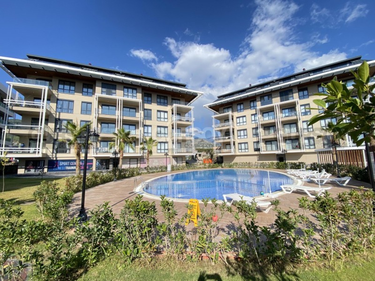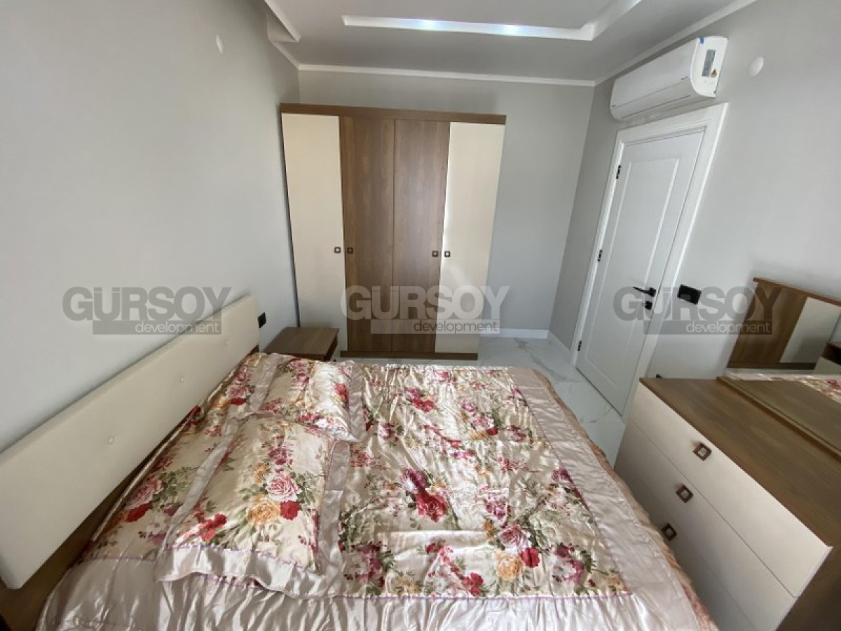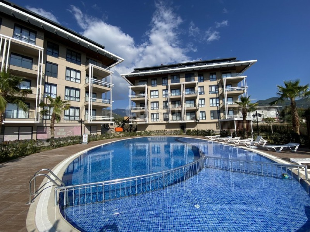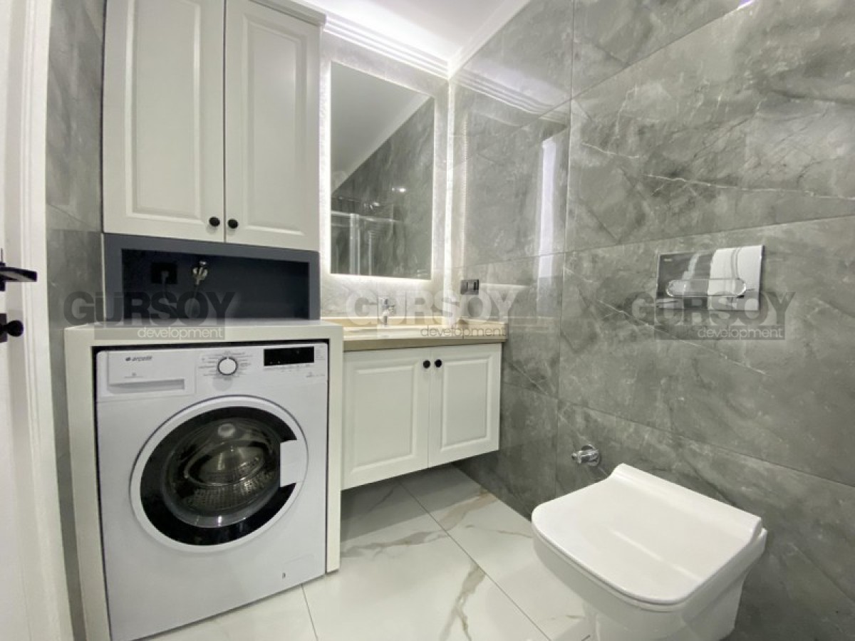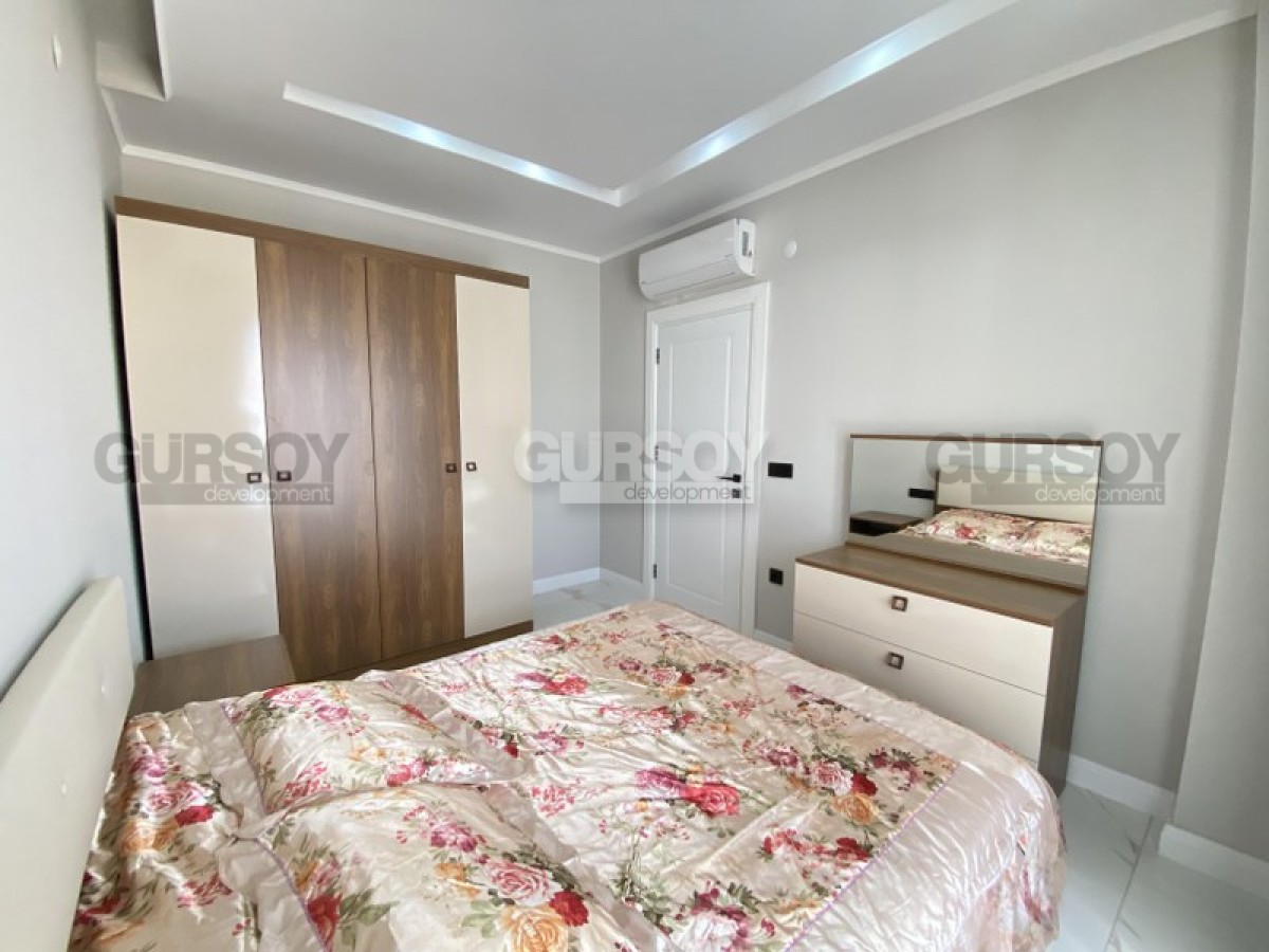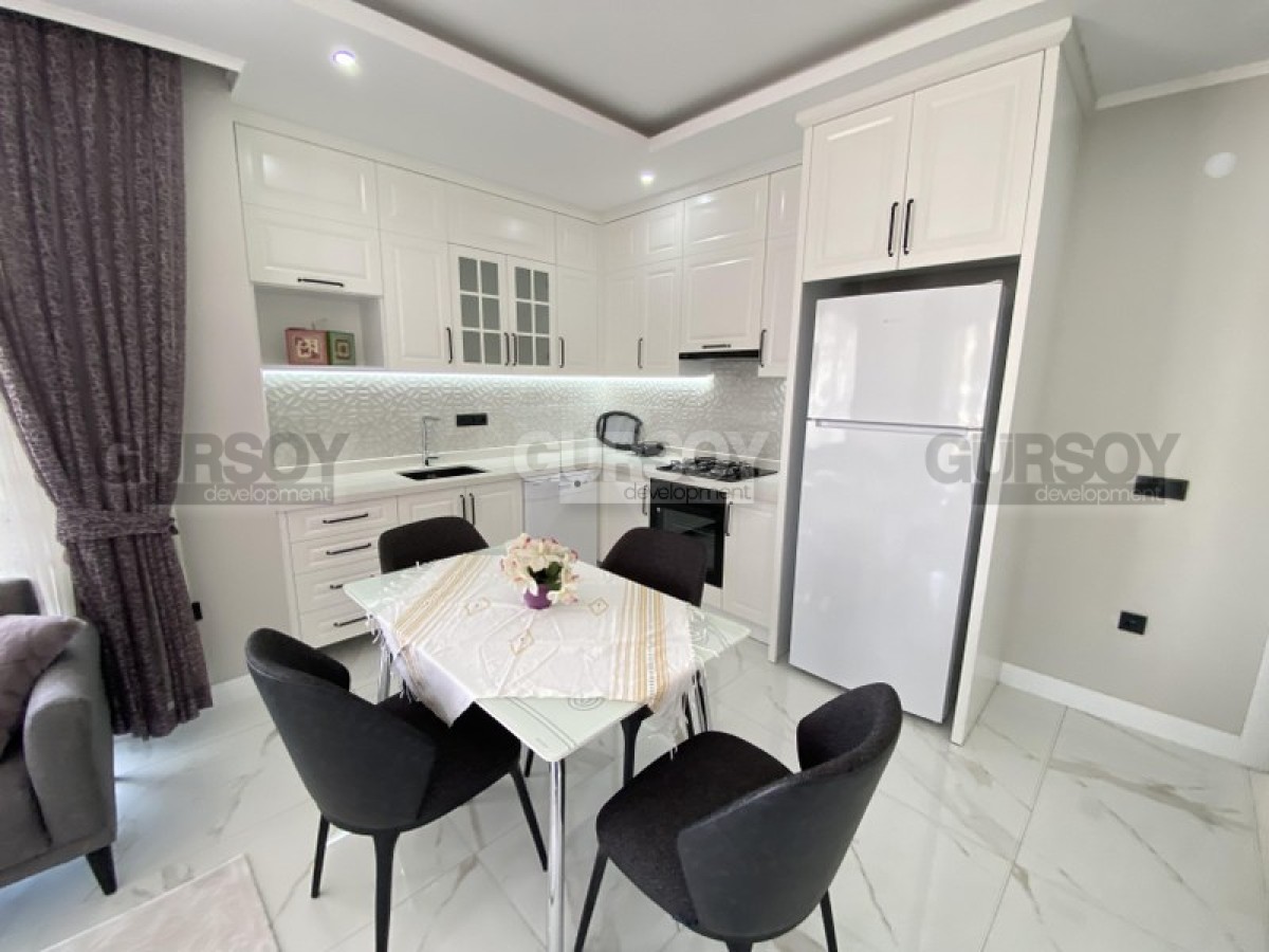 На продажу выставлена стильная квартира 1+1 в современном жилом комплексе в районе Оба. Площадь квартиры 60 м2, а планировка 1+1 подразумевает наличие гостиной, совмещённой с кухней, спальни, ванной комнаты и балкона. Квартира продаётся в полной меблировке, с установленной бытовой техникой, кондиционерами и точечным освещением. Ванная комната оборудована душевой кабиной и сантехникой, есть стиральная машина. Квартира расположена на 4-м этаже 5-этажного жилого комплекса 2022 года постройки. С балкона открывается восхитительный вид на Таврские горы.
