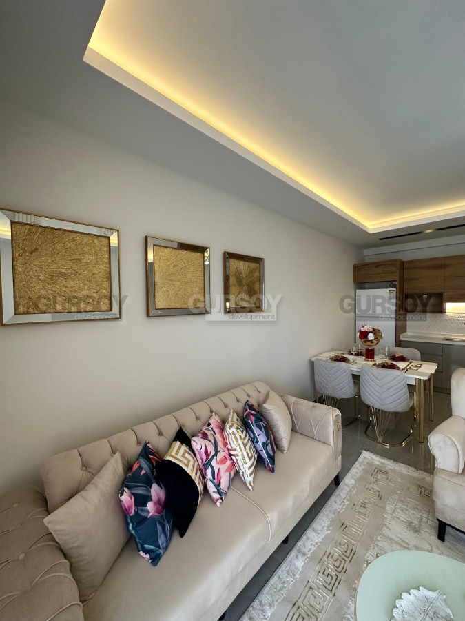 Меблированная квартира 1+1 в шикарном жилом комплексе в Махмутларе от компании Gürsoy Development. Такая квартира идеально подойдёт для пассивного дохода от сдачи в аренду и сезонного проживания. В Махмутларе есть все необходимое для комфортной жизни. Это самый развитый и один из самых популярных районов Алании. Здесь есть множество сетевых супермаркетов и магазинов, торговый центр, парки и детские площадки, кафе и рестораны, школы и детские сады, клиника, аптеки, банки и банкоматы, почта и многое другое. Стоит отметить и набережную в Махмутларе - она отлично оборудована: дорожки для велосипедов и пробежек, беседки для отдыха, детские и спортивные площадки, парк для собак и прочее.