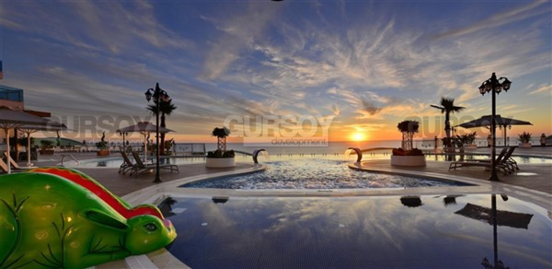 Комплекс обеспечен полной инфраструктурой 5-звёздочного отеля и даже больше. Здесь вы найдете свой собственный пляж, каток для роликовых коньков, открытый бассейн инфинити, бассейн с фонтанами, крытый бассейн, СПА центр, ресторан, парковку, детский мини-клуб, детскую площадку и огромную зеленую территорию для прогулок и отдыха. Также предоставляется трансфер до пляжа для вашего удобства.