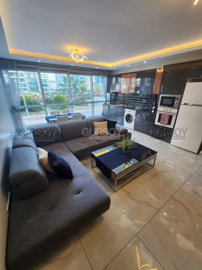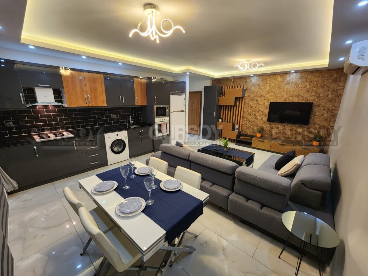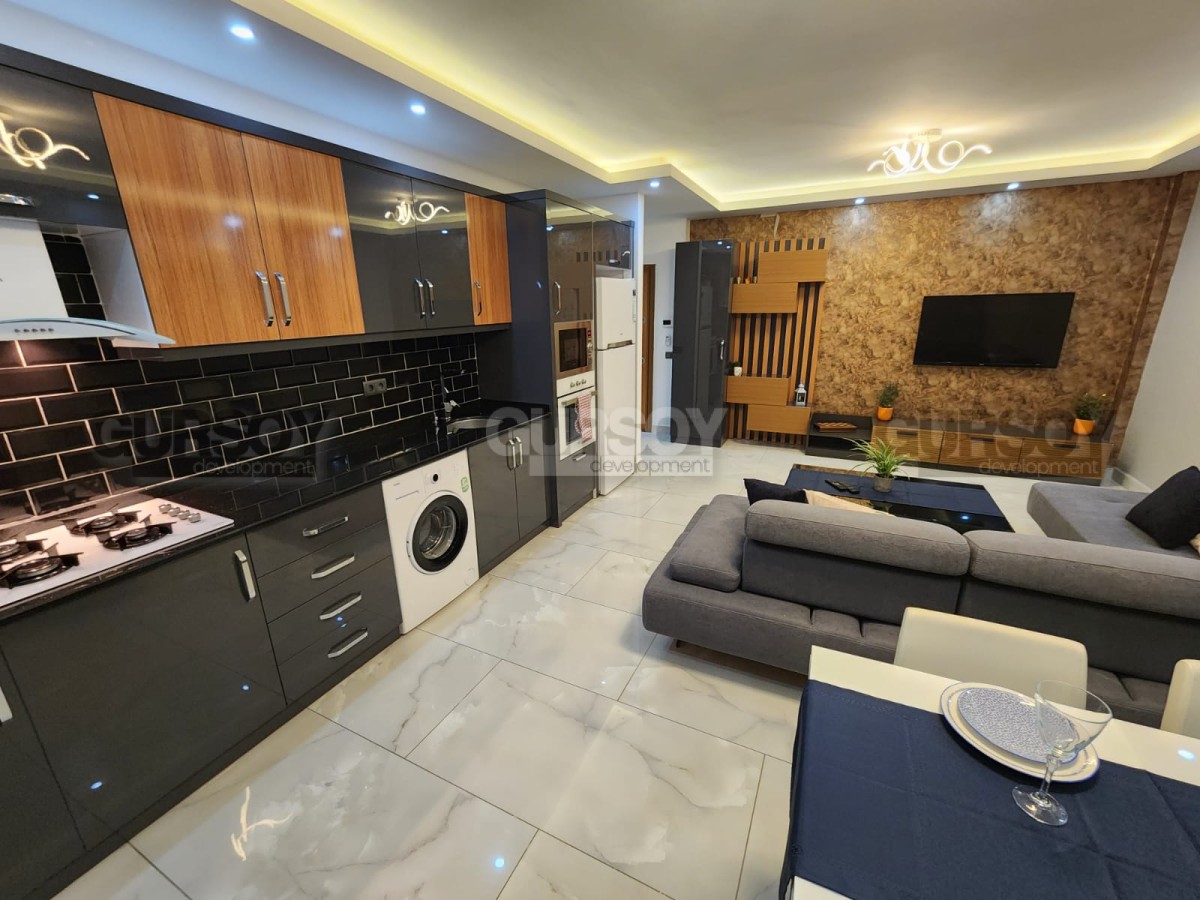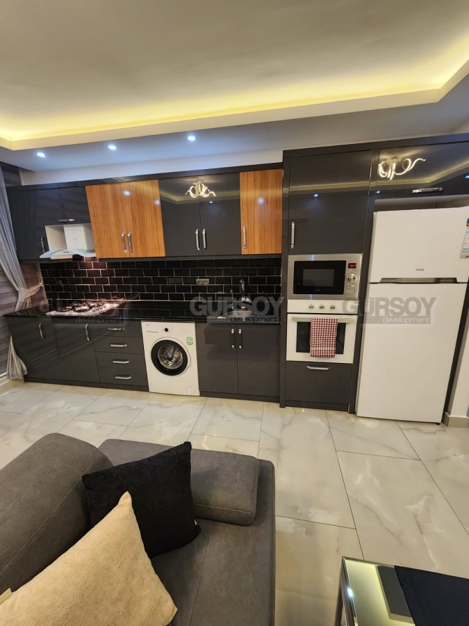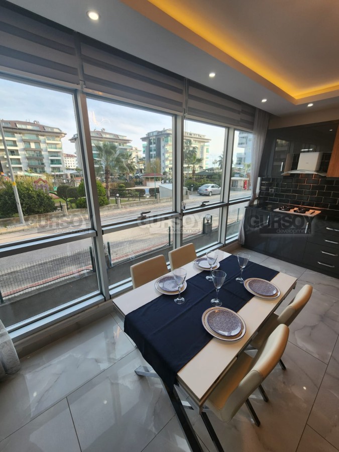 Вашему вниманию представлена квартира, к многочисленным преимуществам которой относятся: стильный современный дизайн, укомплектованность высококлассной мебелью и всей необходимой бытовой техникой, роскошная локация на первой линии от моря, в центре престижного района Аланьи - Кестель. В планировке квартиры, общей площадью 60 м2, - совмещенный с кухней салон, спальня и санузел. В авторском дизайне гостиной удачно сочетаются дерево и монохромные серый, черный и белый цвета. Массивный угловой диван, расположенный в центре комнаты, визуально делит ее на комфортабельную зону отдыха и кухню, с обеденным столом и практичной рабочей поверхностью. Уютная спальня укомплектована большой кроватью, тумбами и вместительным гардеробным шкафом, а просторный санузел оснащен душевой кабиной и стильной керамикой.