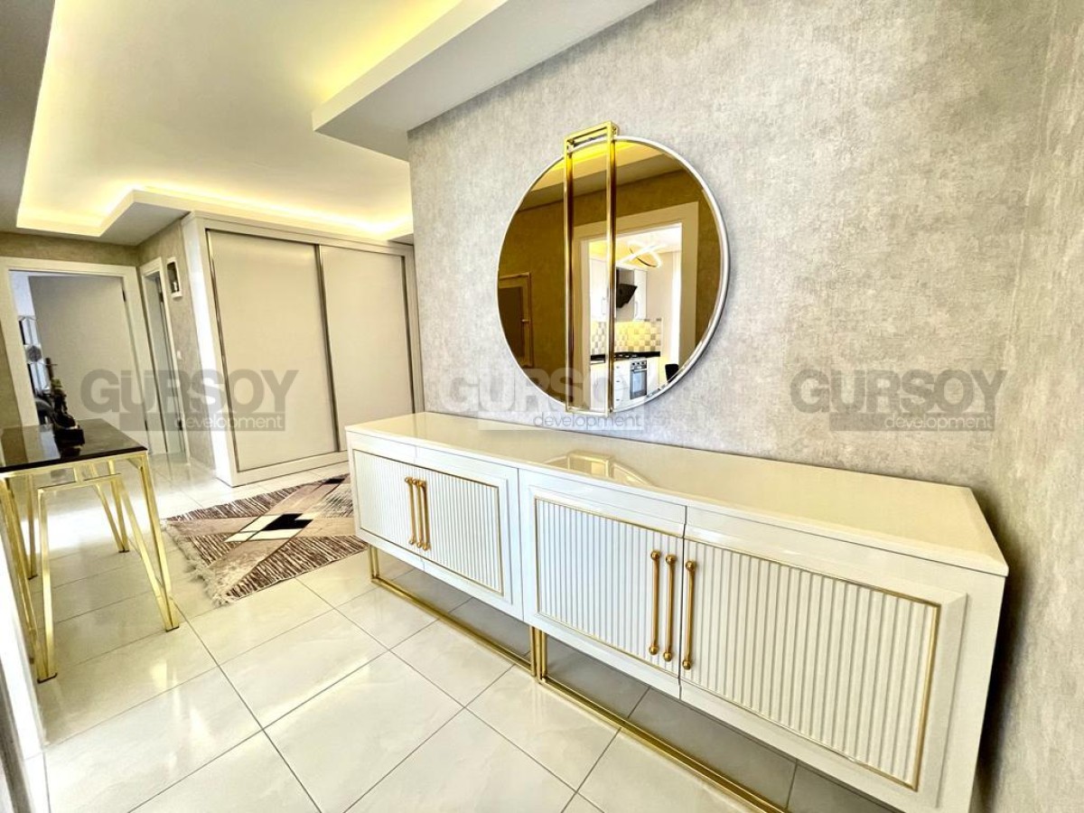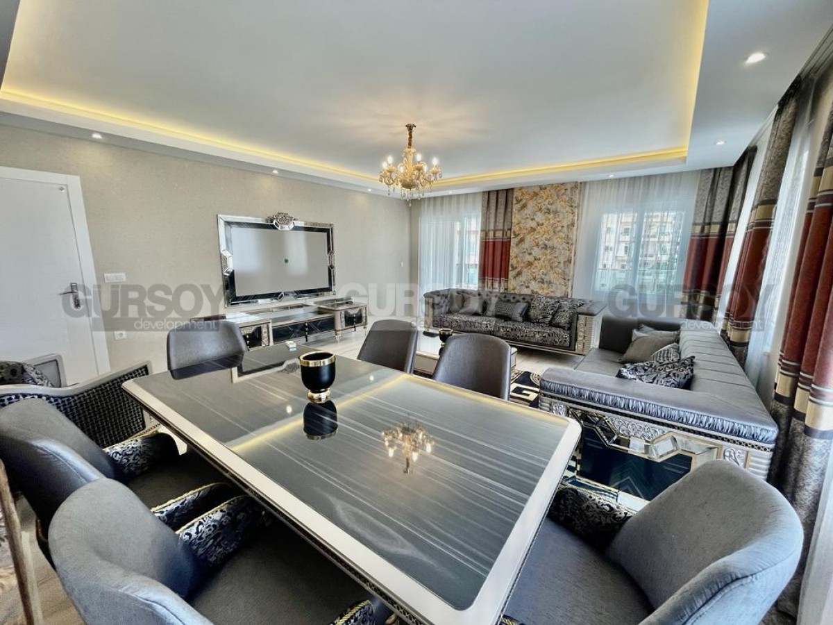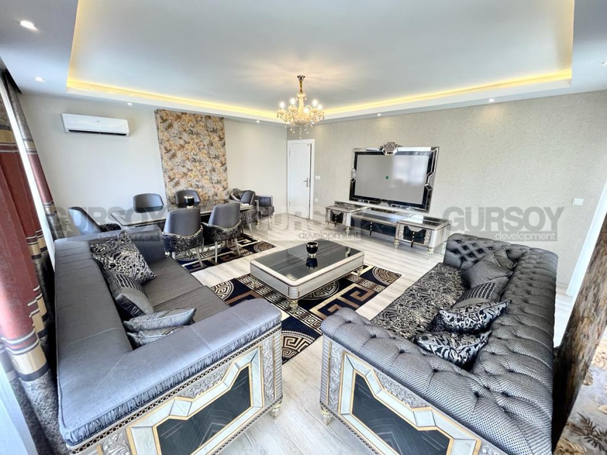 В этом разделе представлена большая квартира 2+1, общей площадью 160 м2, на 4-м этаже в комплексе 2017 года постройки, в центре популярного района Аланьи - Махмутлар. В планировке квартиры - отдельная кухня, салон, 2 спальни, 2 санузла с душевыми кабинами и 3 открытых балкона, с видом на город и горы. В квартире сделан качественный ремонт, в светлом интерьере удачно сморятся стильные люстры, зеркала, роскошная мебель, с элементами золота и ажурной резьбой. Просторная гостиная укомплектована комфортабельными диванами, креслом, модным журнальным столиком, тумбой, и большим обеденным столом. Кухня оснащена холодильником, посудомоечной машиной, газовой плитой и духовым шкафом. В спальнях установлены мягкие кровати и стильные гарнитуры, с тумбами, трюмо и гардеробными шкафами.