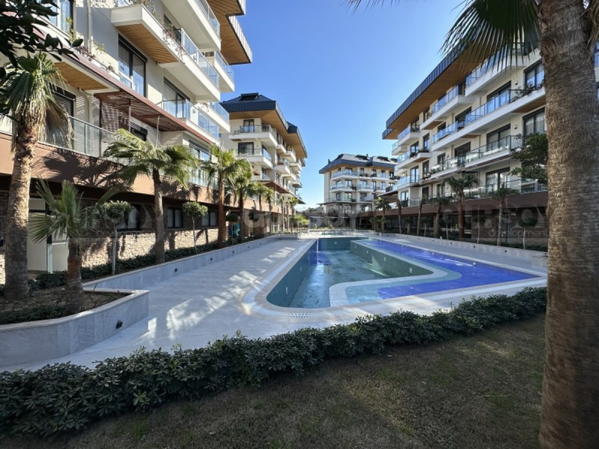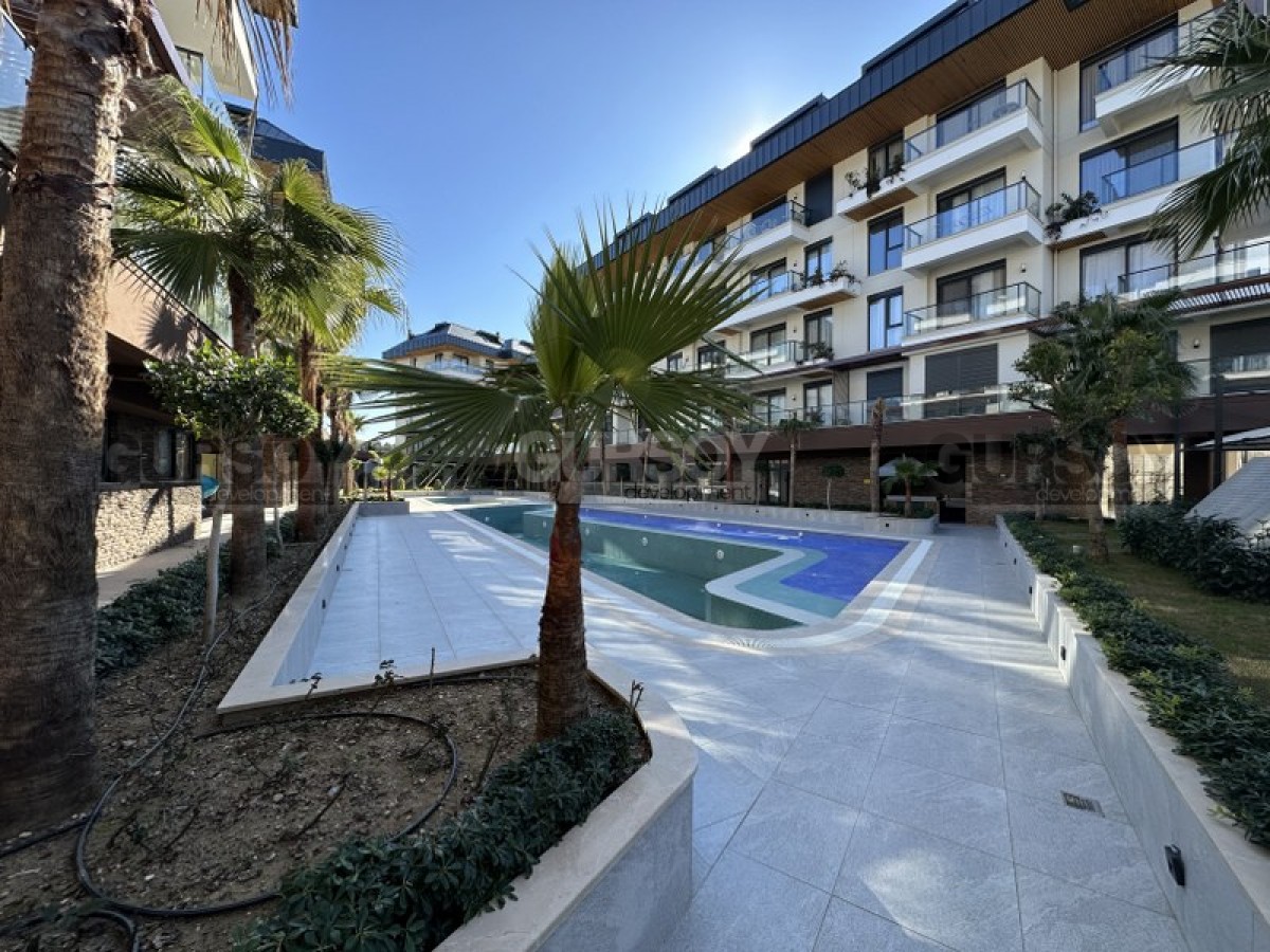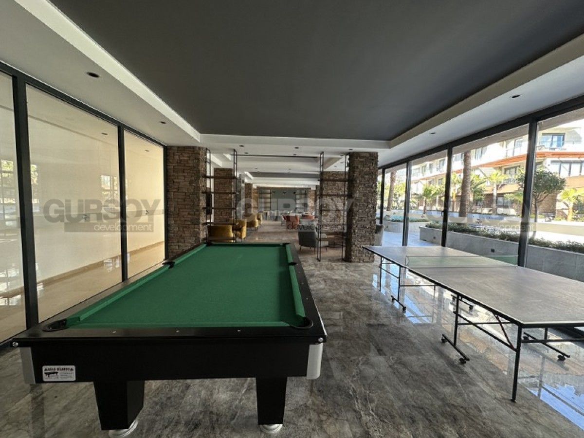 Квартира 1+1,55м2 находится на 2м этаже малоэтажной резиденции, которая является частью большого комплекса, состоящего из 4х жилых блоков и объектов инфраструктуры. Комплекс был построен 2022 году и имеет большую, охраняемую территорию на которой расположены крытый и закрытый бассейны, настольный теннис, зона барбекю, сауна, парковка и тд.