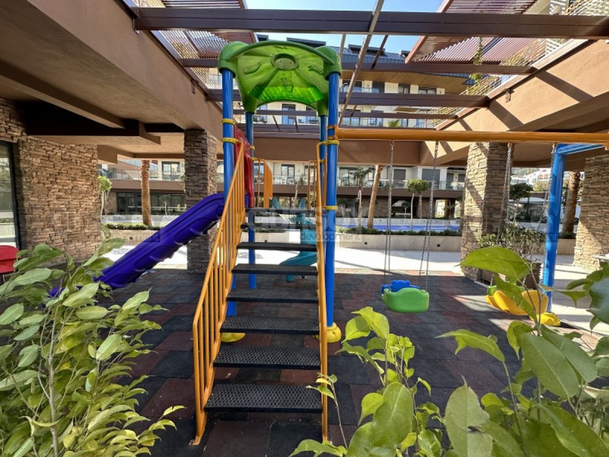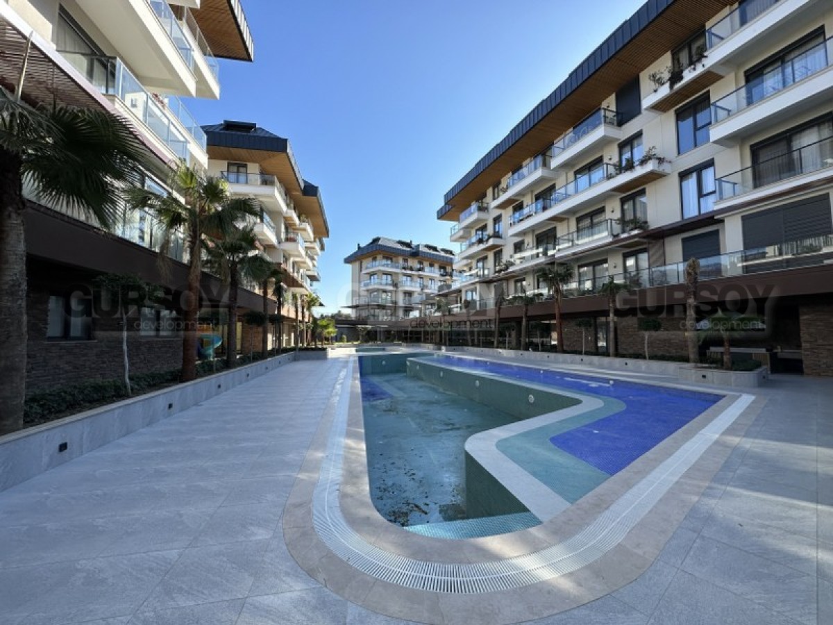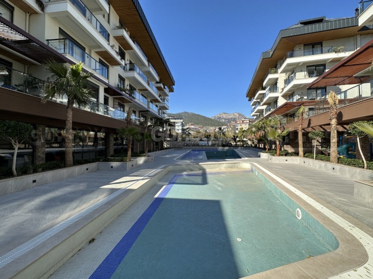 Квартира 1+1,55м2 находится на 2м этаже малоэтажной резиденции, которая является частью большого комплекса, состоящего из 4х жилых блоков и объектов инфраструктуры. Комплекс был построен 2022 году и имеет большую, охраняемую территорию на которой расположены крытый и закрытый бассейны, настольный теннис, зона барбекю, сауна, парковка и тд.