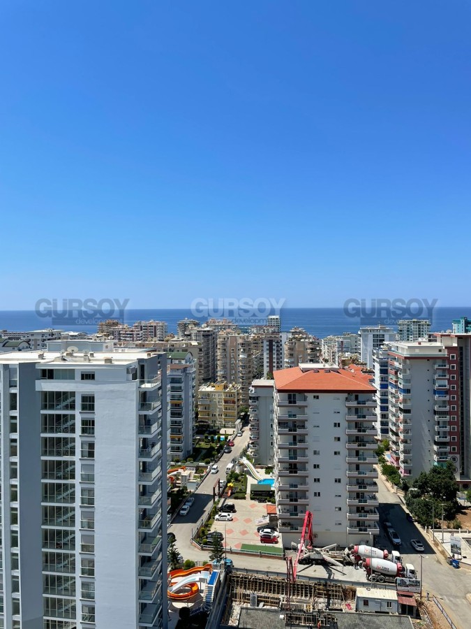 Площадь квартиры - 95 м2. Квартира расположена на 11-м этаже 12-этажного жилого комплекса, который был сдан в эксплуатацию в 2022 году. Планировка 2+1 подразумевает наличие гостиной, совмещённой с кухней, 2 спален, 2 ванных комнат и балкона. Квартира продаётся в полной меблировке, с установленной бытовой техникой и кондиционерам. Ванные комнаты оборудованы сантехникой и душевыми кабинами. Квартира выходит на южную сторону. С балкона открывается чудесный вид на море.