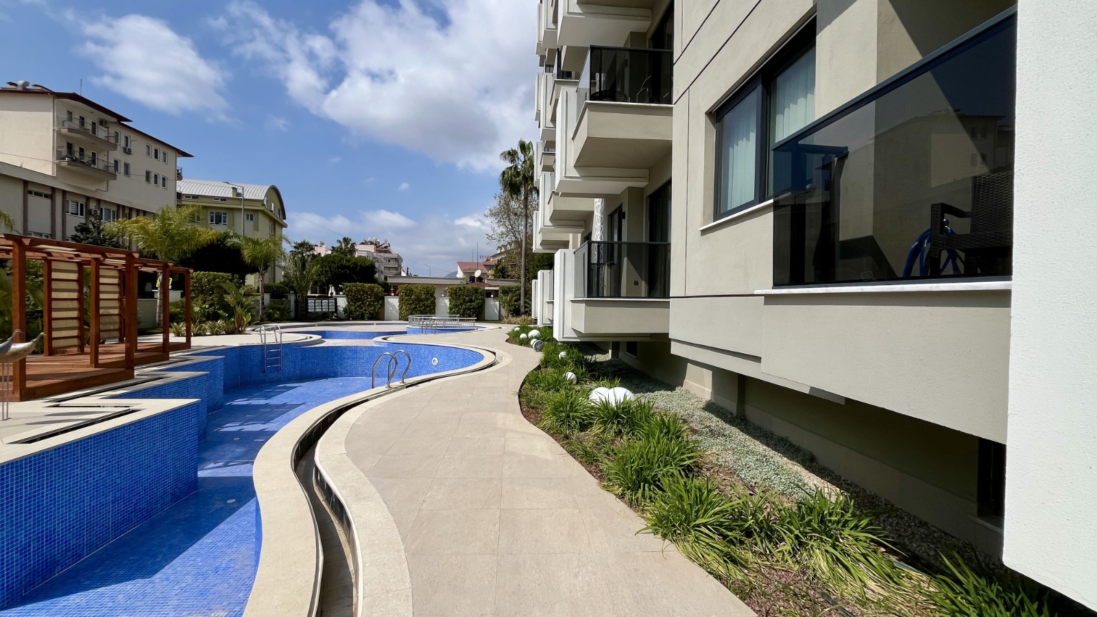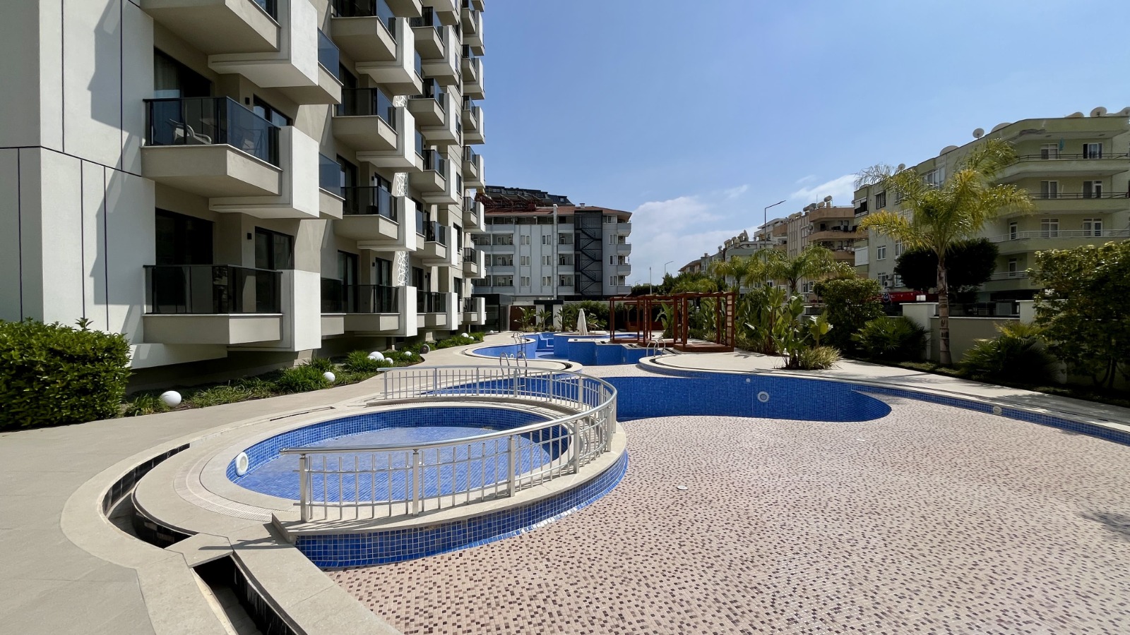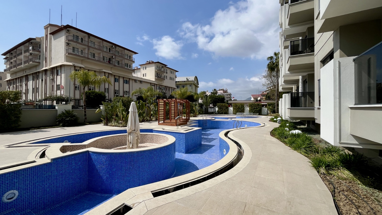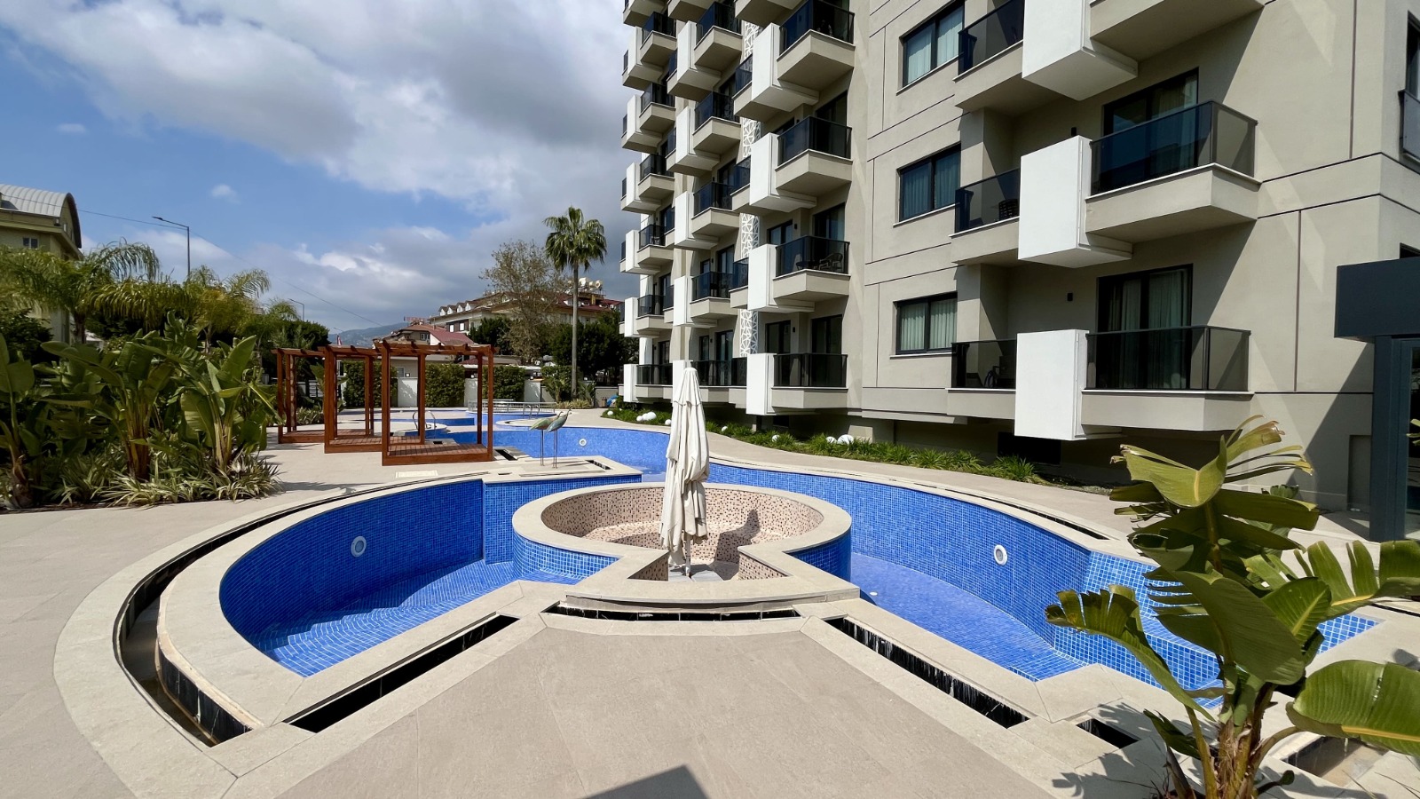 Комплекс предлагает развитую инфраструктуру: открытый и подогреваемый крытый бассейны, джакузи, сауна, полноценная SPA-зона, фитнес-зал, детский бассейн и игровая комната, стильное лобби и зоны отдыха с видом на бассейн.