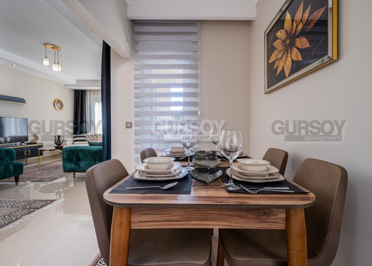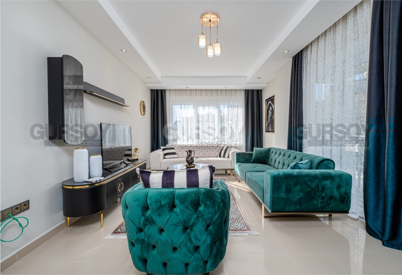Компания Gürsoy Development представляет вашему вниманию стильную меблированную квартиру планировкой 2+1 площадью 100 м² в районе Джикджилли. Современный жилой комплекс в Джикджилли был построен в 2018 году. Квартира расположена на 2-м этаже 7-этажного комплекса. Планировка квартиры подразумевает гостиную, совмещённую с кухней, 2 спальни, 2 ванные комнаты и просторный балкон. Квартира продаётся с комплектом стильной мебели и бытовой техникой, как показано на фотографиях. В комнатах установлены кондиционеры, ванные комнаты оборудованы современной сантехникой и душевыми кабинами. Квартира выходит на юго-западную сторону. С балкона открывается вид на Таврские горы, живописную природу и бассейн. Шикарный дизайн интерьера и удобная планировка делают данное предложение действительно интересным.