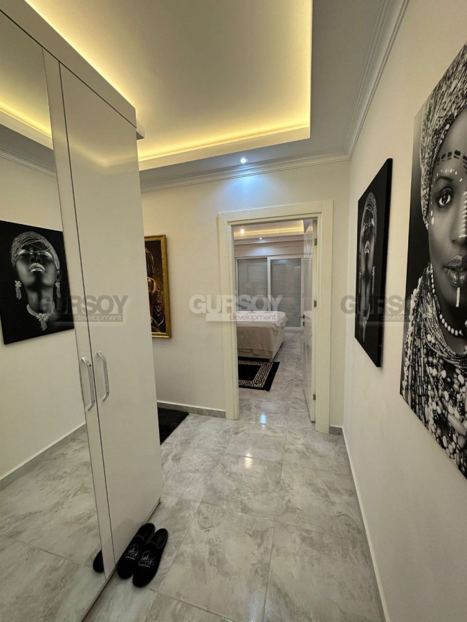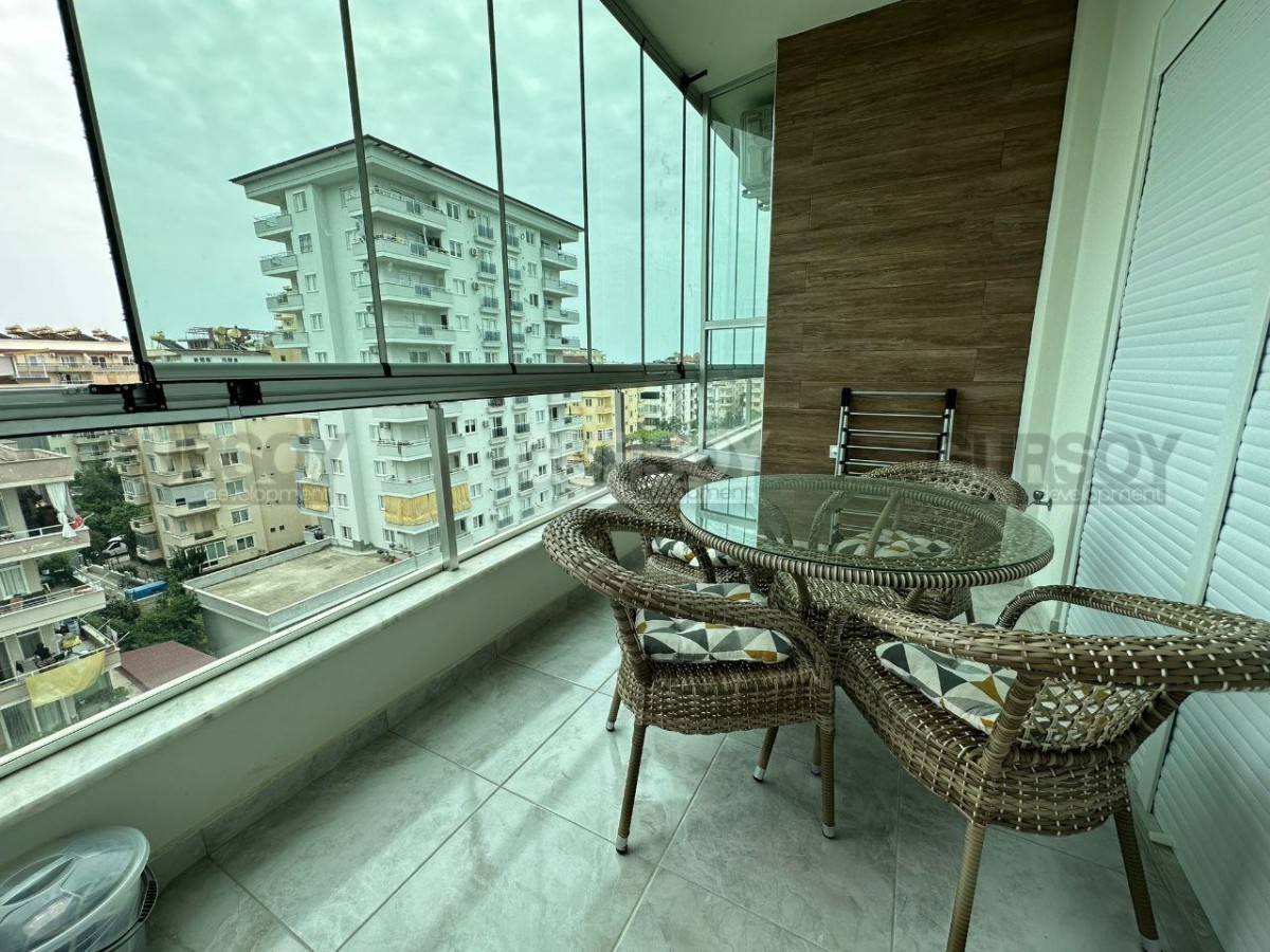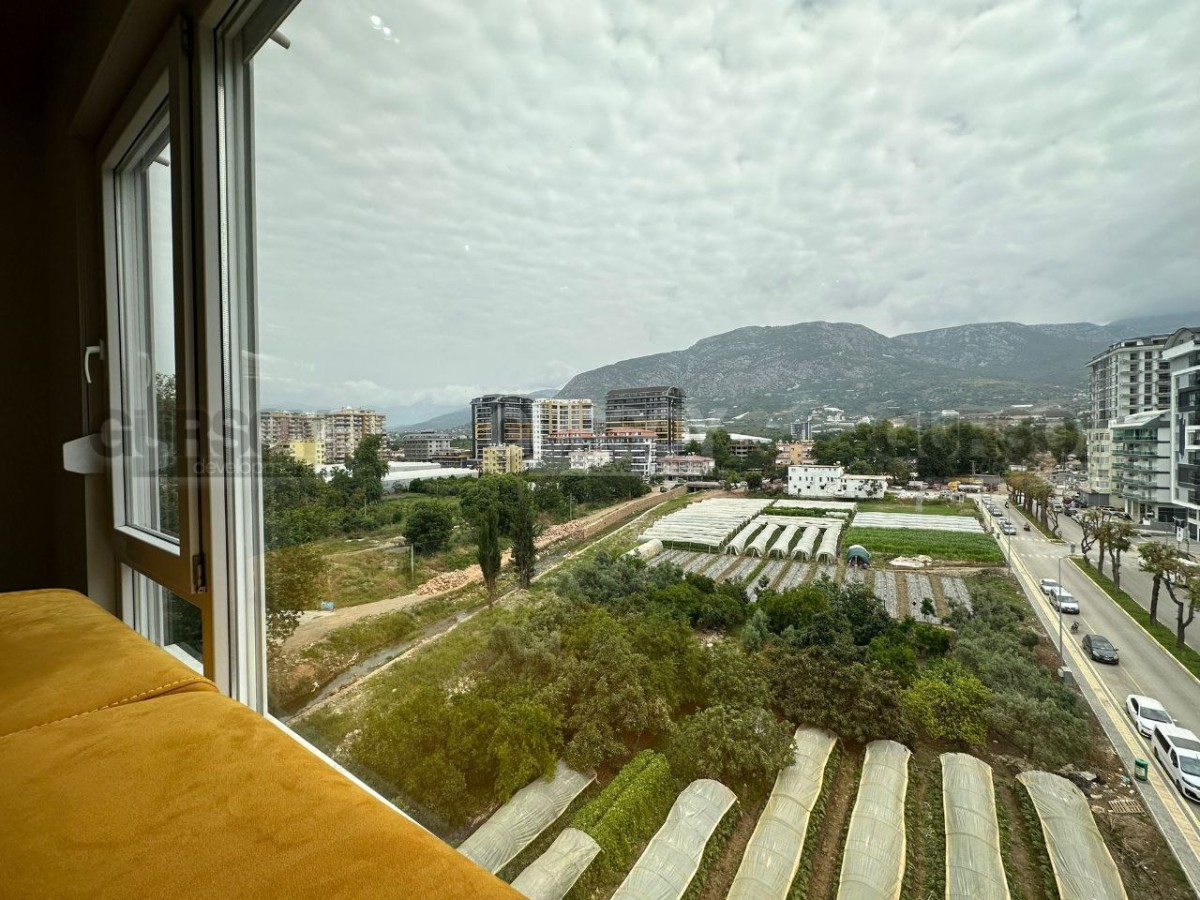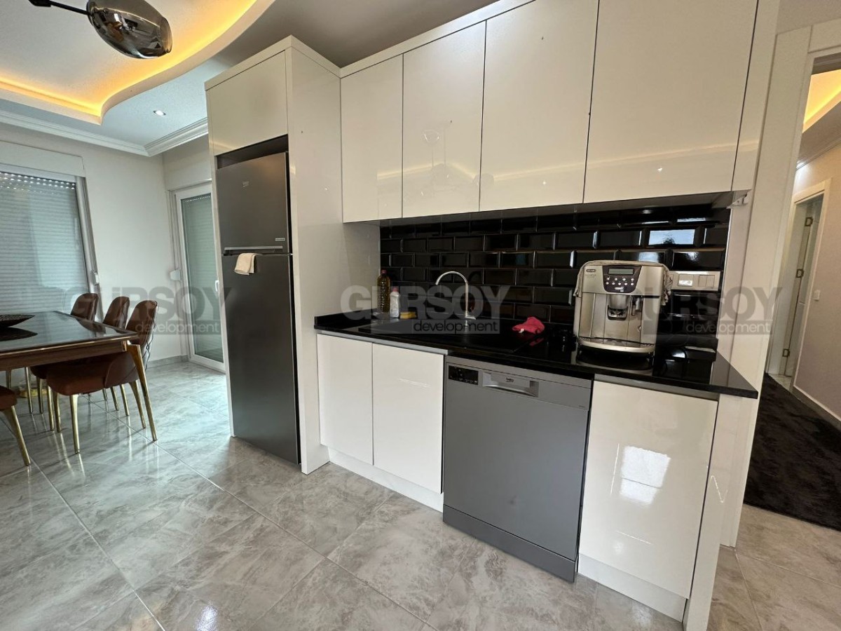Если вы ищете новую, современную, готовую к проживанию квартиру, в пешей доступности от моря и всех необходимых объектов социальной инфраструктуры, рады сообщить, что в 2022 году в центре района Махмутлар завершилось строительство комфортабельного жилого комплекса, и на 7-м его этаже выставлена на продажу квартира. Общая ее площадь - 120 м2, планировка представлена совмещённой с кухней гостиной, двумя спальнями, оснащённым душевой кабиной санузлом и просторным застекленным балконом, с видом на улицы города. В лаконичном интерьере квартиры преобладает белый цвет, мягкое освещение создаёт ощущение уюта, а стильная мебель, оригинальные люстры и черно-белые картины добавляют лоск и индивидуальность. Просторная гостиная визуально разделена на обеденную зону, с большим столом и двумя рабочими поверхностями, оснащёнными по последнему слову техники; и салон, с мягким угловым диваном, необычным журнальным столиком и тумбой. В одной из спален установлены комфортабельная кровать, тумбы и гардеробный шкаф, а при входе имеется дополнительный встроенный шкаф для обуви и верхней одежды.