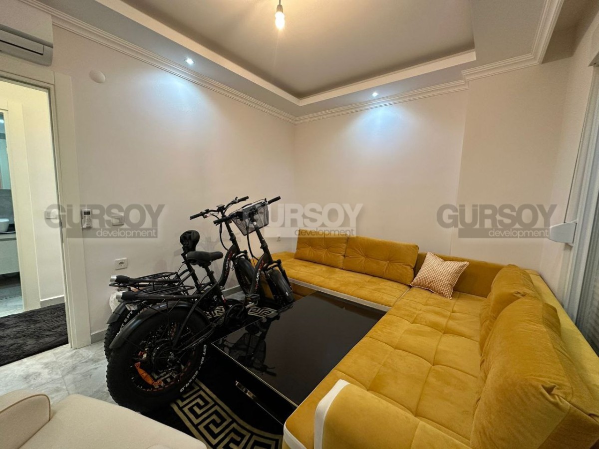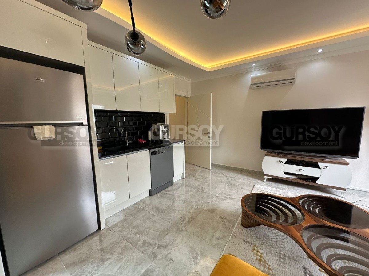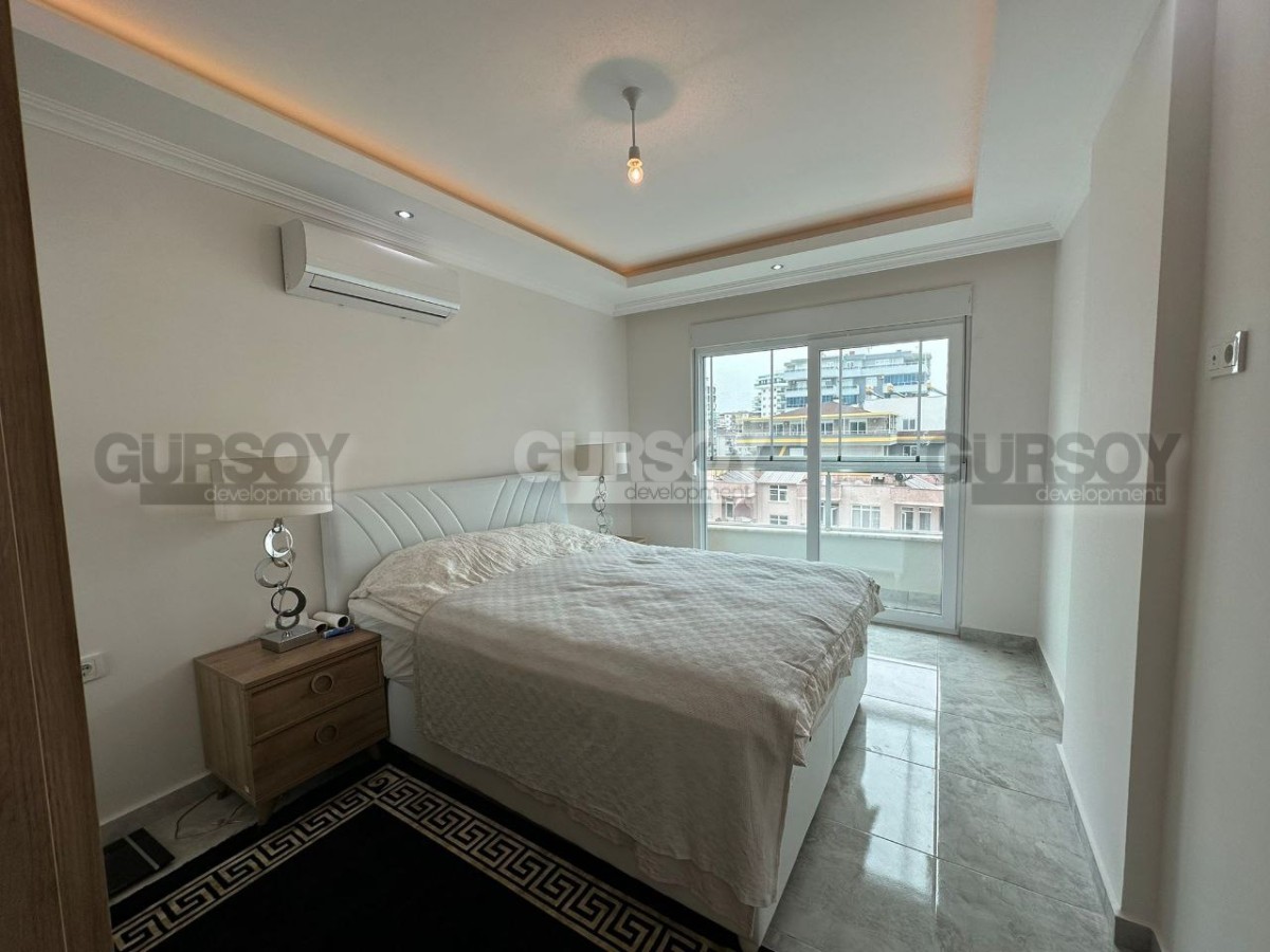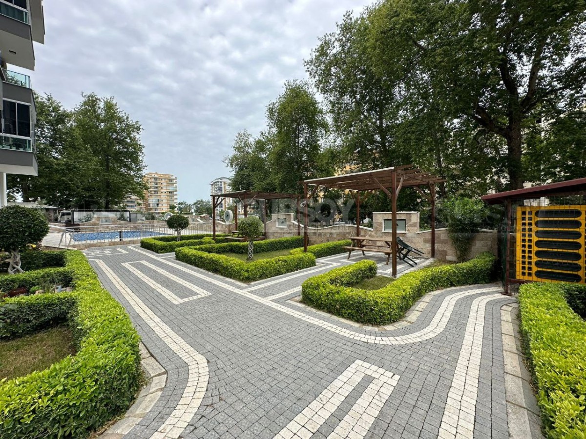 Если вы ищете новую, современную, готовую к проживанию квартиру, в пешей доступности от моря и всех необходимых объектов социальной инфраструктуры, рады сообщить, что в 2022 году в центре района Махмутлар завершилось строительство комфортабельного жилого комплекса, и на 7-м его этаже выставлена на продажу квартира. Общая ее площадь - 120 м2, планировка представлена совмещённой с кухней гостиной, двумя спальнями, оснащённым душевой кабиной санузлом и просторным застекленным балконом, с видом на улицы города. В лаконичном интерьере квартиры преобладает белый цвет, мягкое освещение создаёт ощущение уюта, а стильная мебель, оригинальные люстры и черно-белые картины добавляют лоск и индивидуальность. Просторная гостиная визуально разделена на обеденную зону, с большим столом и двумя рабочими поверхностями, оснащёнными по последнему слову техники; и салон, с мягким угловым диваном, необычным журнальным столиком и тумбой. В одной из спален установлены комфортабельная кровать, тумбы и гардеробный шкаф, а при входе имеется дополнительный встроенный шкаф для обуви и верхней одежды.