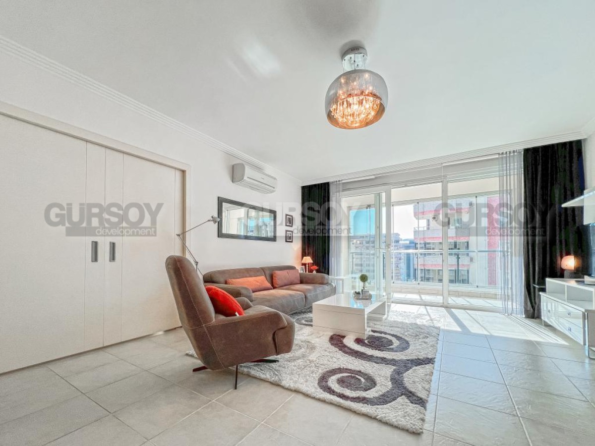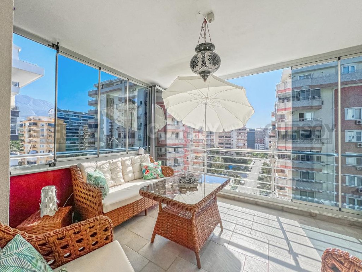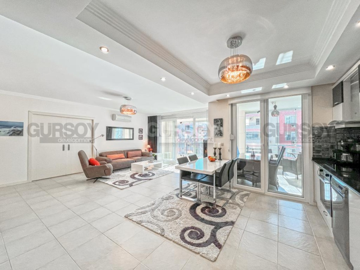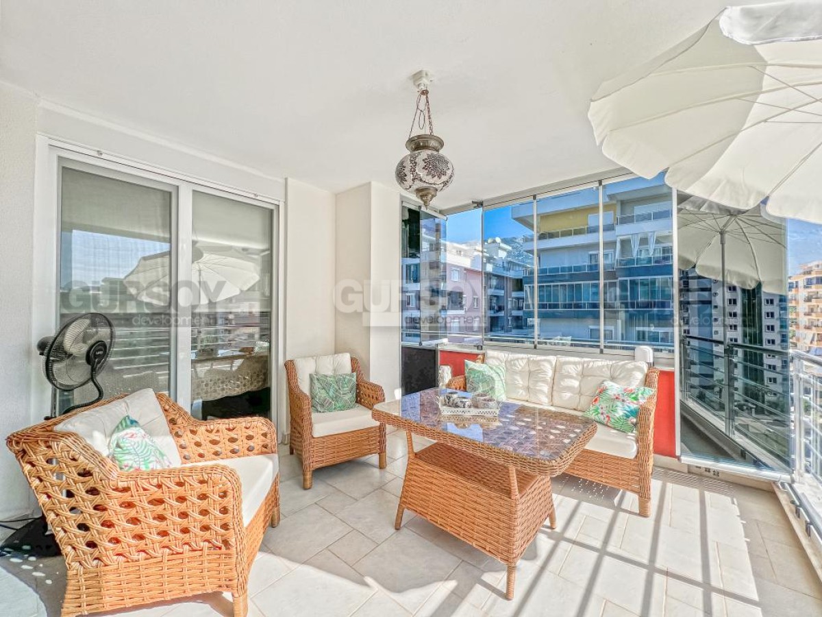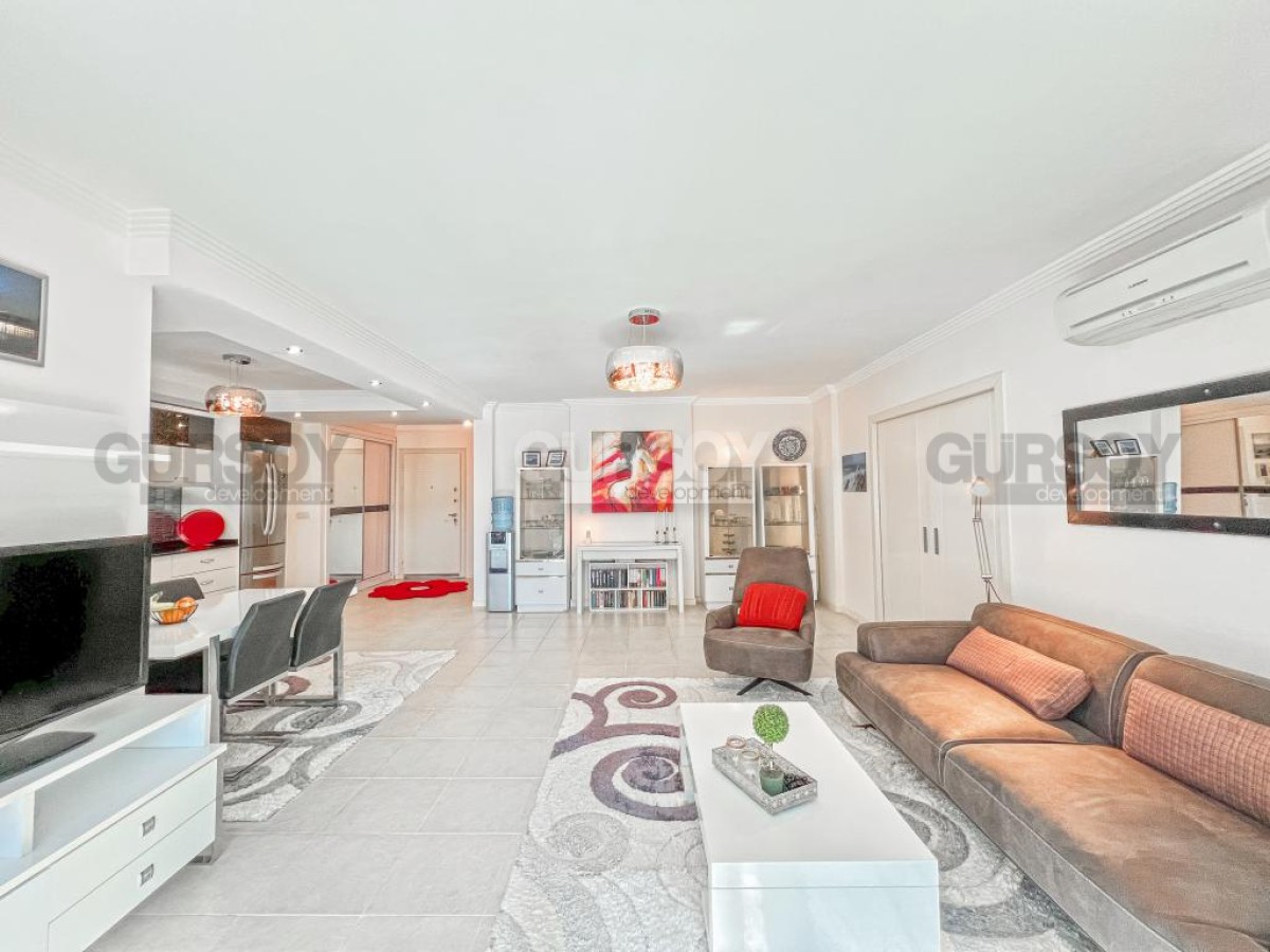 В данном разделе представлена квартира, к многочисленным достоинствам которой относятся: современный дизайн, укомплектованность комфортабельной мебелью и всей необходимой бытовой техникой, удачная локация в нескольких минутах ходьбы от моря и центра популярного района Аланьи Махмутлар, и очень привлекательная цена. Общая площадь квартиры - 130 м2, планировка 2+1 представлена кухней открытого типа, совмещенной с гостиной, двумя спальнями, двум оснащенными душевыми кабинами санузлами и большим застекленным балконом с видом на город. В основе интерьере апартаментов - белый цвет, гармонично дополненный яркими картинами, плотными шторами, люстрами и предметами декора. Просторная гостиная условно разделена на салон, с мягким диваном, креслом, тумбой, сервантами и низким столиком; и кухню, с обеденным столом и оснащенным по последнему слову техники гарнитуром. Спальни укомплектованы удобными кроватями, тумбами и гардеробными шкафами, а на балконе организована полноценная рекреационная территория, с несколькими зонами отдыха.