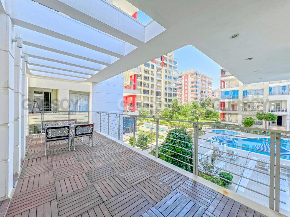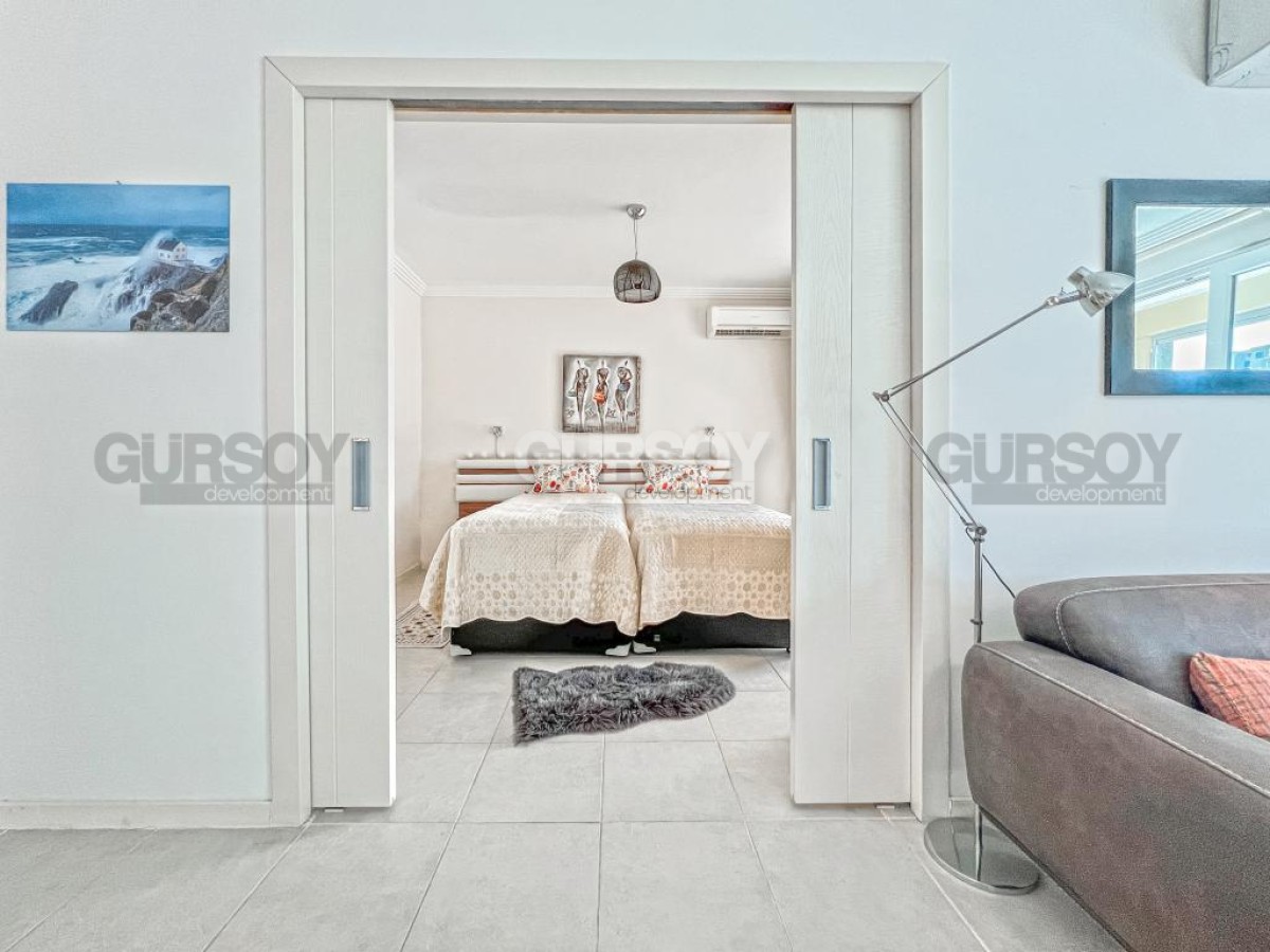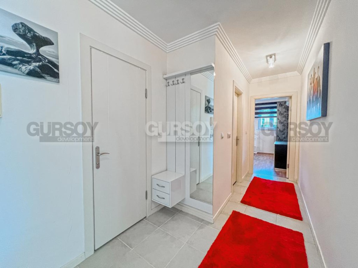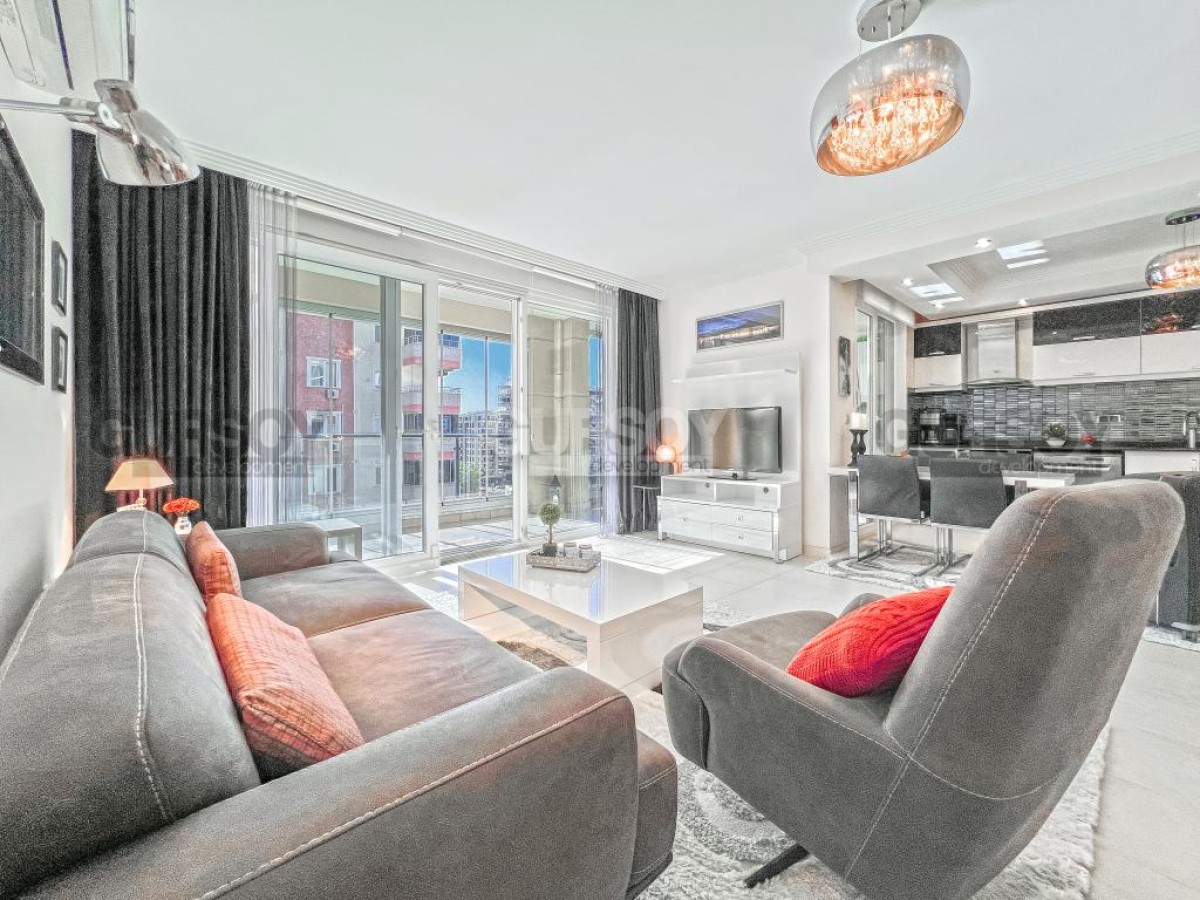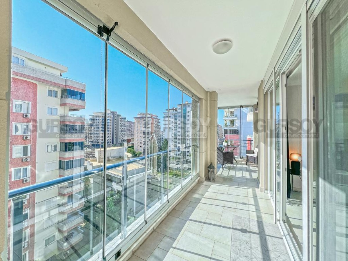 В данном разделе представлена квартира, к многочисленным достоинствам которой относятся: современный дизайн, укомплектованность комфортабельной мебелью и всей необходимой бытовой техникой, удачная локация в нескольких минутах ходьбы от моря и центра популярного района Аланьи Махмутлар, и очень привлекательная цена. Общая площадь квартиры - 130 м2, планировка 2+1 представлена кухней открытого типа, совмещенной с гостиной, двумя спальнями, двум оснащенными душевыми кабинами санузлами и большим застекленным балконом с видом на город. В основе интерьере апартаментов - белый цвет, гармонично дополненный яркими картинами, плотными шторами, люстрами и предметами декора. Просторная гостиная условно разделена на салон, с мягким диваном, креслом, тумбой, сервантами и низким столиком; и кухню, с обеденным столом и оснащенным по последнему слову техники гарнитуром. Спальни укомплектованы удобными кроватями, тумбами и гардеробными шкафами, а на балконе организована полноценная рекреационная территория, с несколькими зонами отдыха.