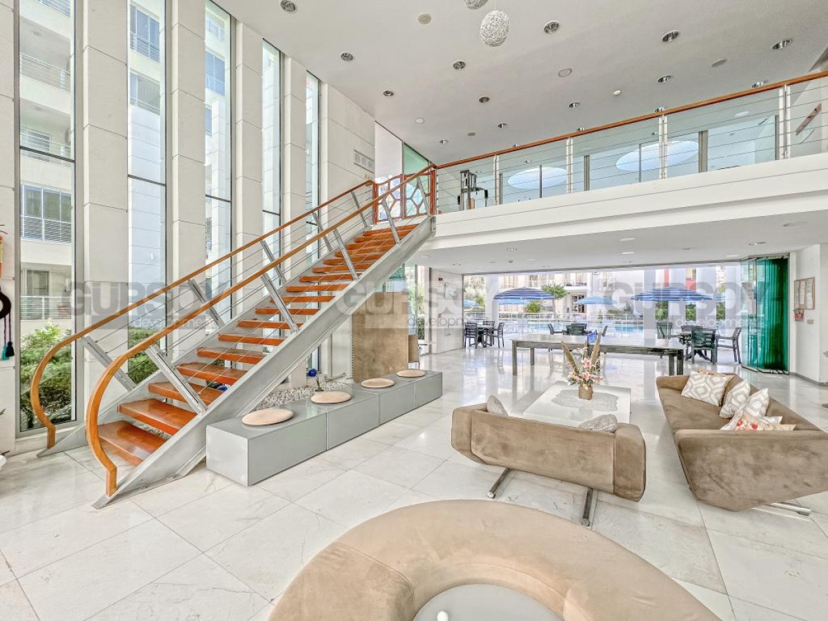 Квартира расположена на 7-м этаже в доме 2007 года постройки, на территории которого оборудованы бассейн, фитнес клуб, сауна, хамам, детская площадка в саду, лобби зона с настольным теннисом, кафе и парковка.