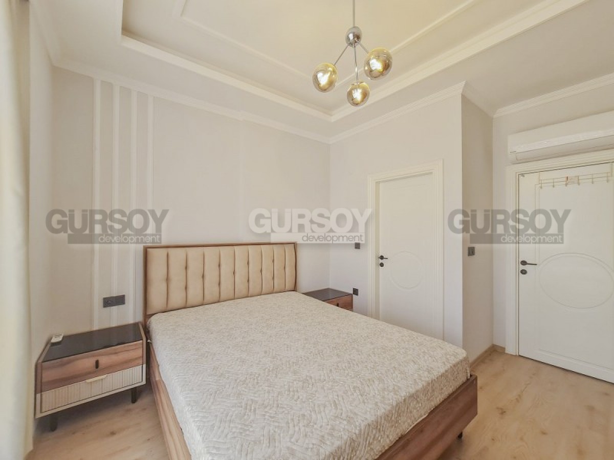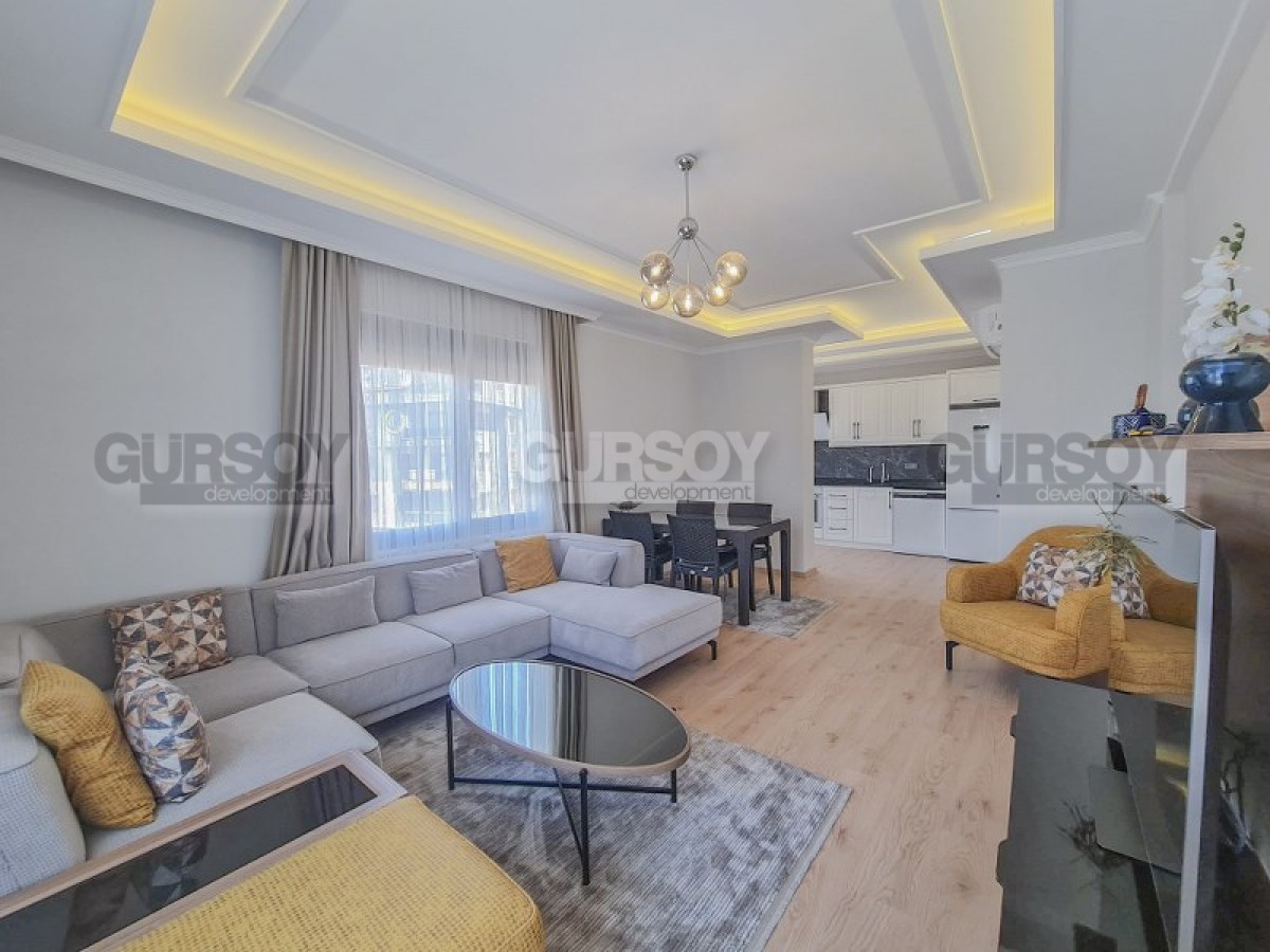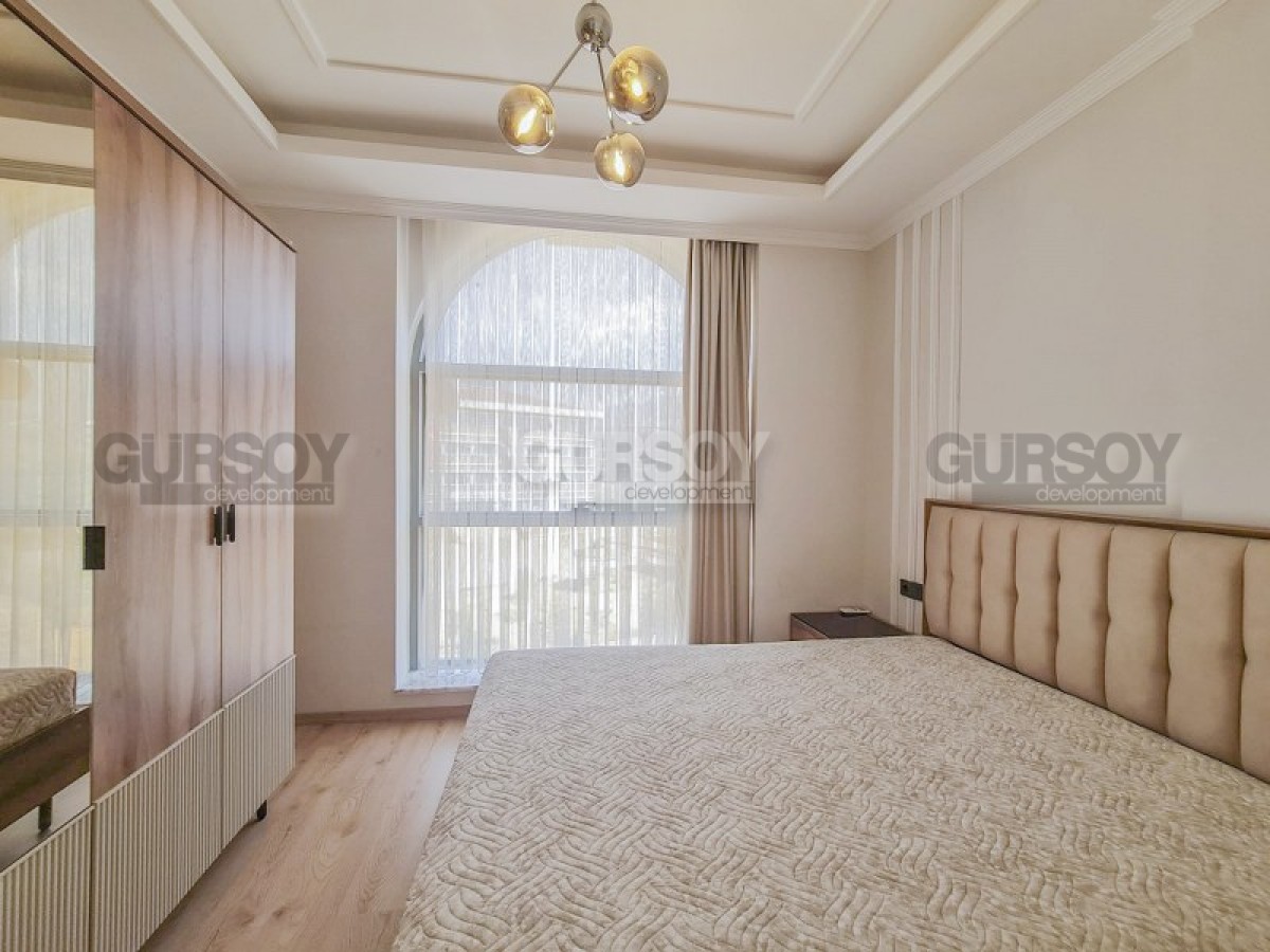 В данном разделе представлена уютная, симпатичная квартира, с современным дизайном, светлым спокойным интерьером, высококлассной мебелью и новейшей бытовой техникой, расположенная в комфортабельном жилом комплексе, введенном в эксплуатацию в 2023 году. Общая площадь квартиры - 110 м2, планировочное решение 2+1 представлено совмещенной с кухней гостиной, двумя спальнями, двумя санузлами, один из который оснащен душевой кабиной, и двумя открытыми балконами. Просторная гостиная укомплектована массивным угловым диваном, креслом, журнальным столиком, лаконичным гарнитуром и обеденным столом. Белоснежная кухня оснащена холодильником, посудомоечной машиной, сенсорной поверхностью и духовым шкафом. В спальнях установлены мягкие кровати, тумбы и гардеробный шкаф, а на балконе имеется нбор практичной садовой мебели. Удобно и то, что во всех комнатах установлена системи подогрева пола.