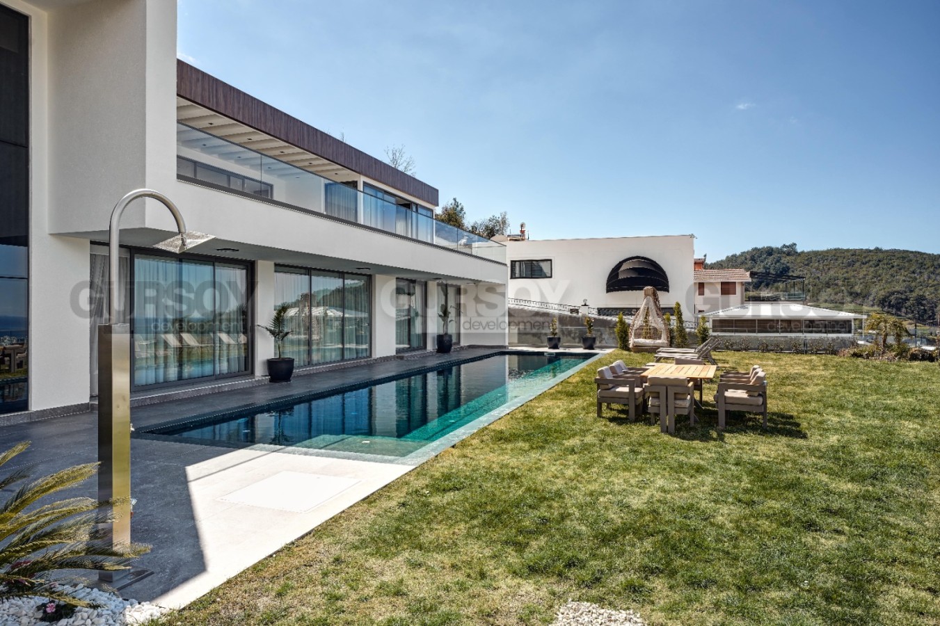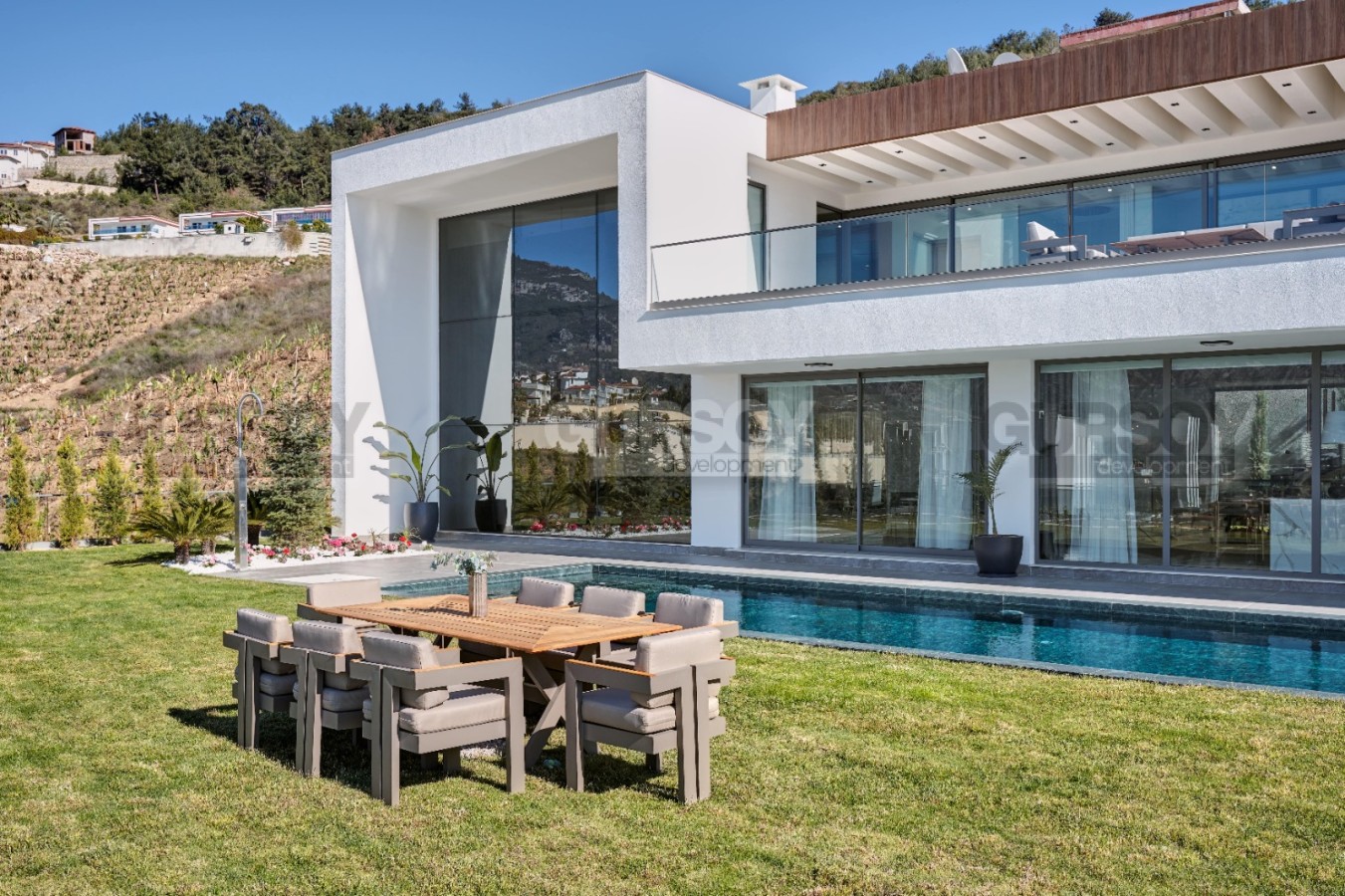 Виллы обладают уникальным расположением, позволяющим насладиться покоем и тишиной вдали от городской суеты. Все виллы ориентированы так, что вам открывается потрясающий вид на Средиземное море, горы, окружающую природу и город Аланию. Здесь нет никаких преград для вашего панорамного обзора – только вы и невероятная природа вокруг.