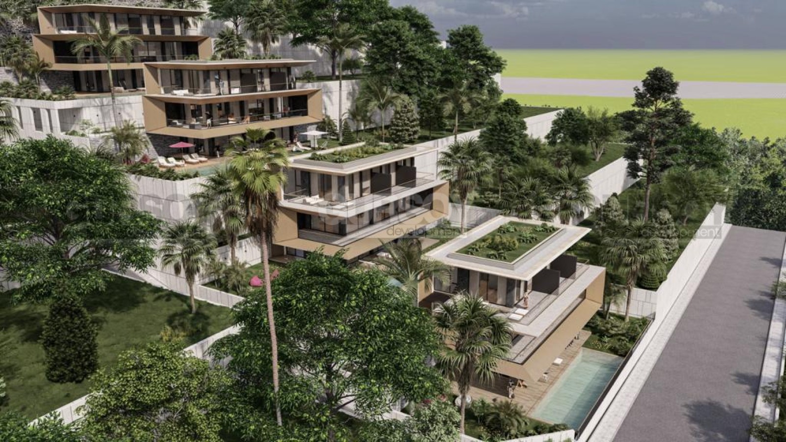 Каждая вилла предлагается с полной чистовой отделкой, включающей встроенный кухонный гарнитур, столешницу, мойку, комплект бытовой техники от Franke/Siemens, полностью оборудованные санузлы, теплые полы, окна и балконные двери с двойным остеклением, стальную входную дверь, межкомнатные двери, кондиционеры от Mitsubishi/Daikin, систему видеонаблюдения и умный дом. Каждая вилла имеет собственную крытую парковку и бассейн с зоной отдыха. При строительстве используются только материалы высокого качества.