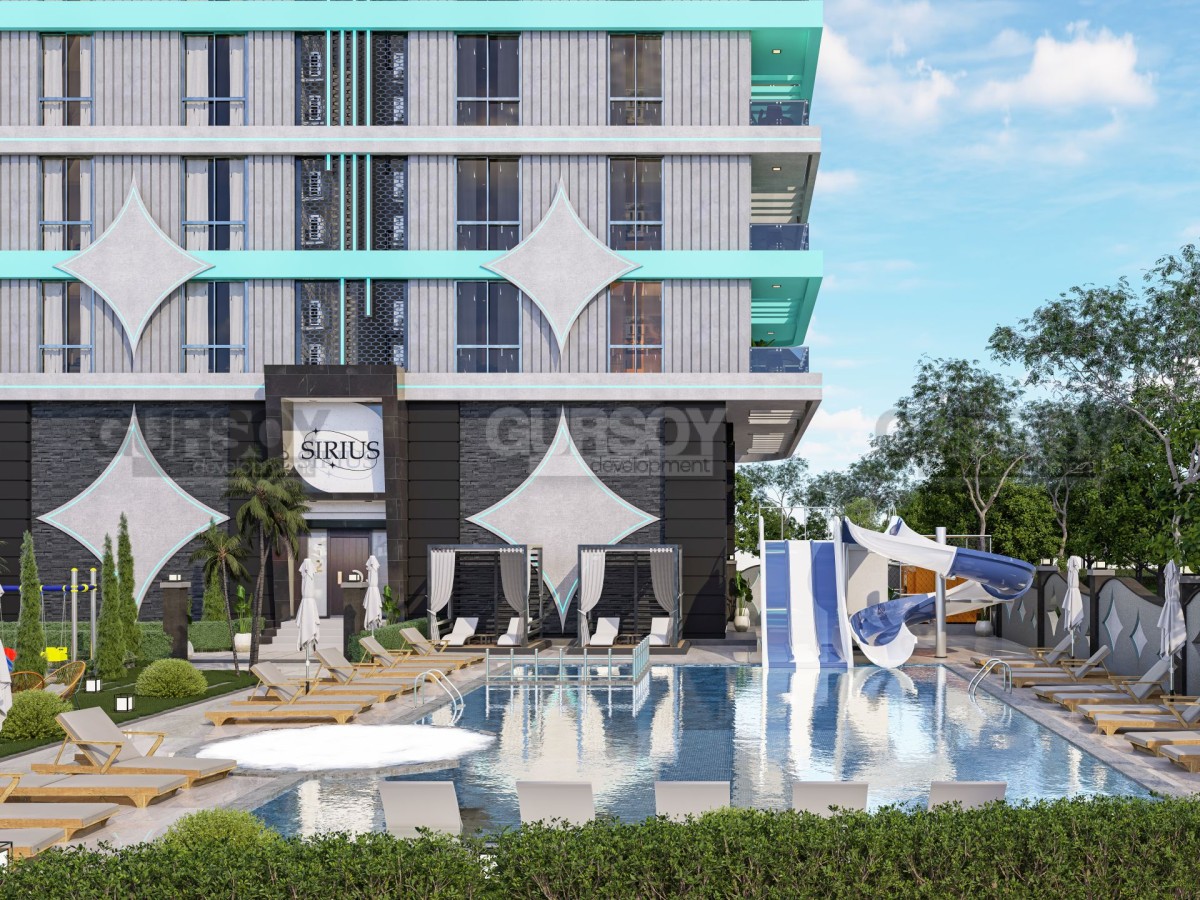 Комплекс состоит из 12-и этажной резиденции и объектов инфраструктуры. До моря всего 800м.