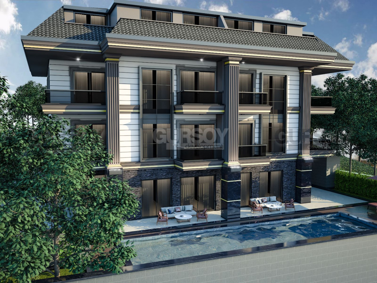Gursoy Development рады представить вам новый строящийся проект в живописном районе Бекташ - это комплекс из 4 квартир 1+1, 2 садовых дублексов 4+1 и 2 панорамных пентхаусов 4+1. Все квартиры в проекте сосредоточены на южную сторону и имеют прекрасный вид на историческую крепость Алании и Средиземное море. Садовые дуплексы имеют прямой выход из гостиной к бассейну "инфинити". Панорамные пентхаусы находятся на верхнем этаже и обладают завораживающим видом на море и горы.