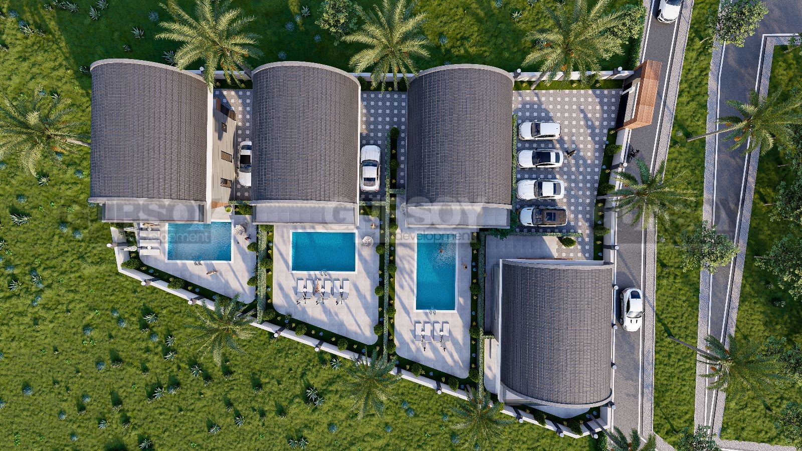 На территории каждой виллы будет находиться собственный бассейн и парковка, что позволит вам наслаждаться свежими погружениями в воду и удобно парковать автомобиль.