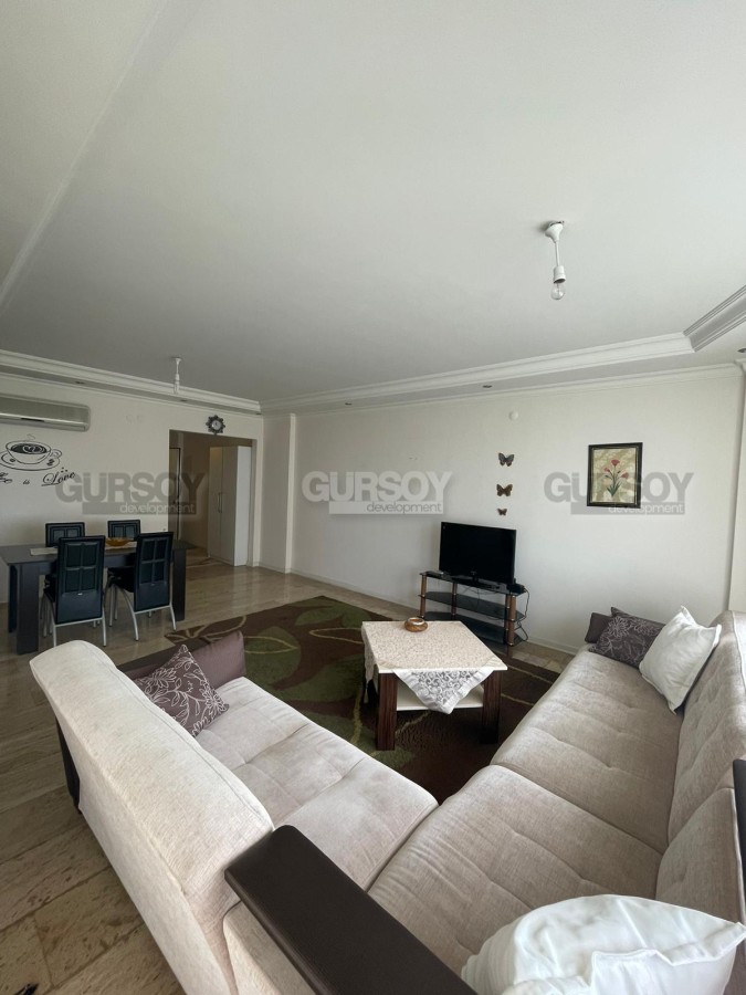 Согласно планировке 2+1, 110м2 в квартире: гостиная, совмещенная с кухней открытого типа, 2ве спальни, 2ве ванные комнаты, большой балкон, откуда частично открывается вид на море. Окна квартиры выходят на юго-западную сторону. Квартира предлагается со всей необходимой мебелью и техникой, возможно сразу заехать и жить.