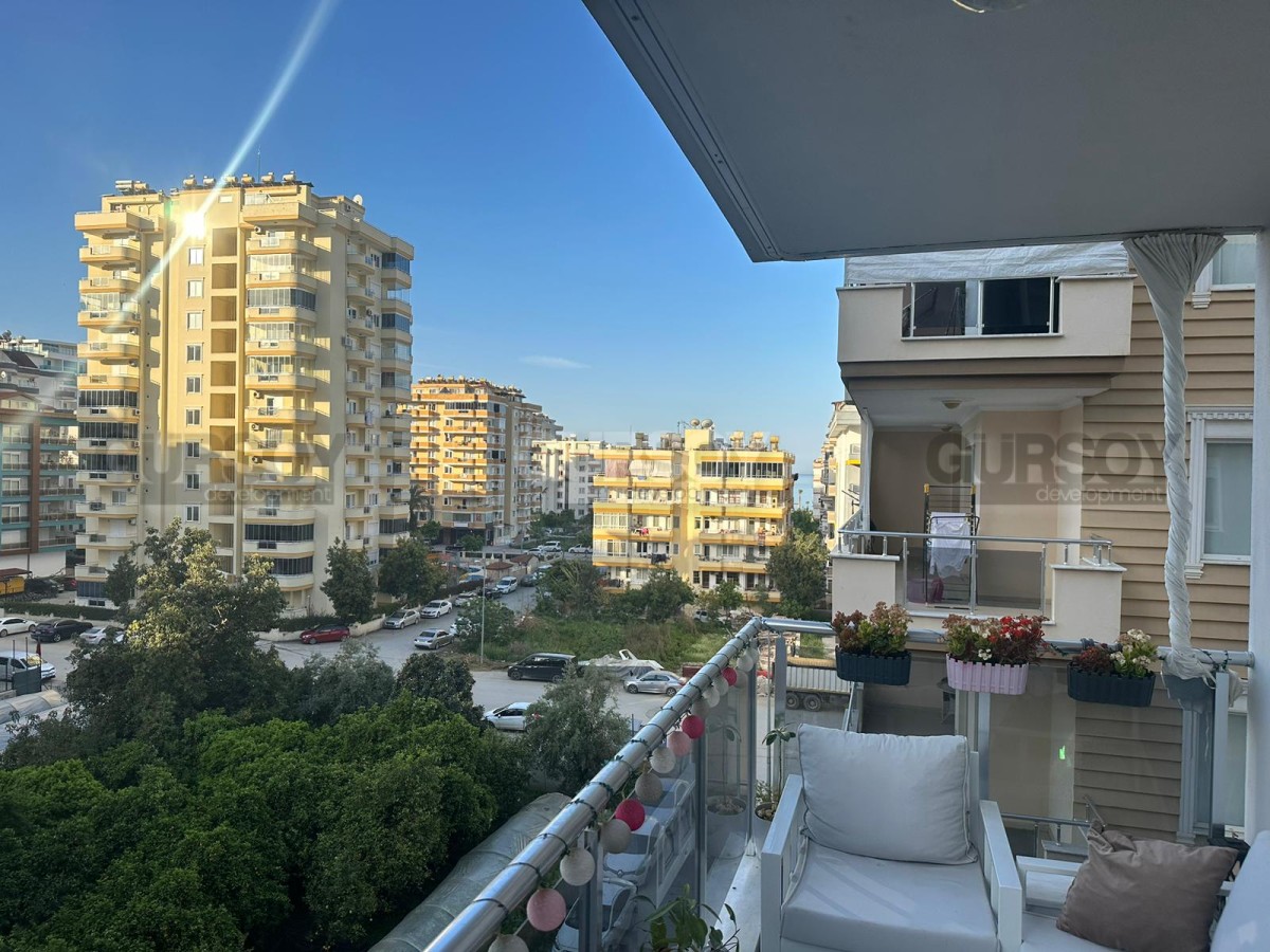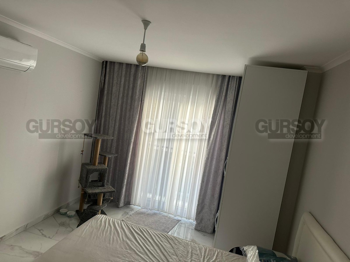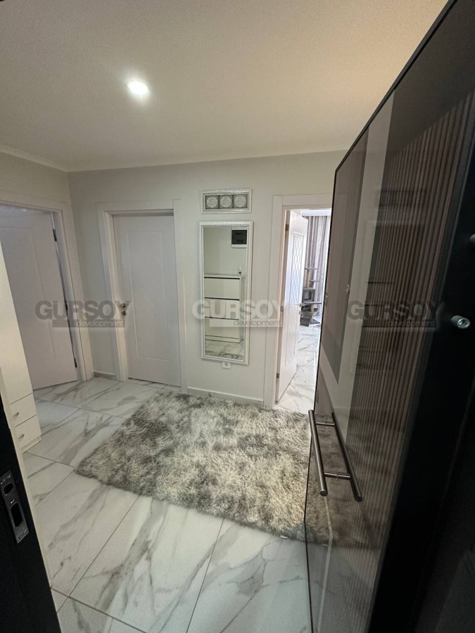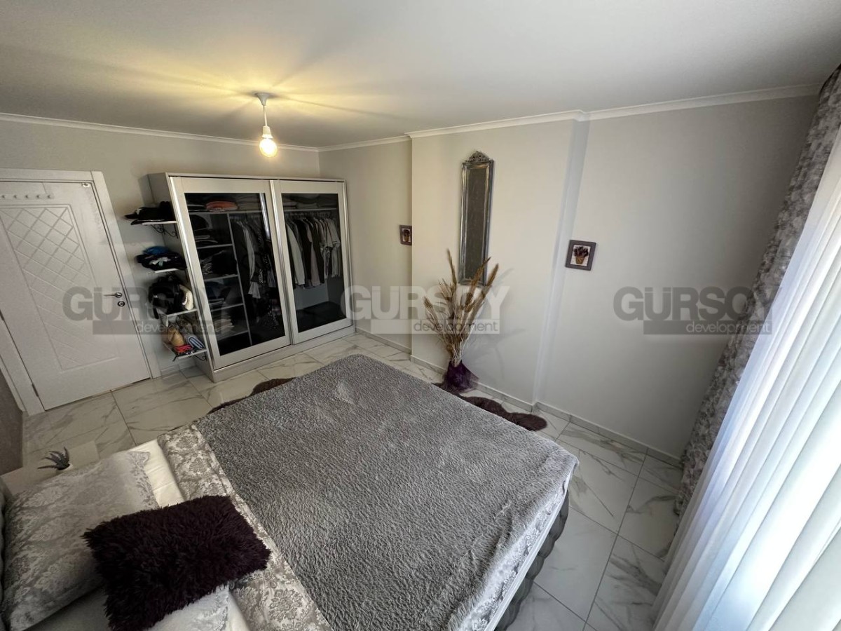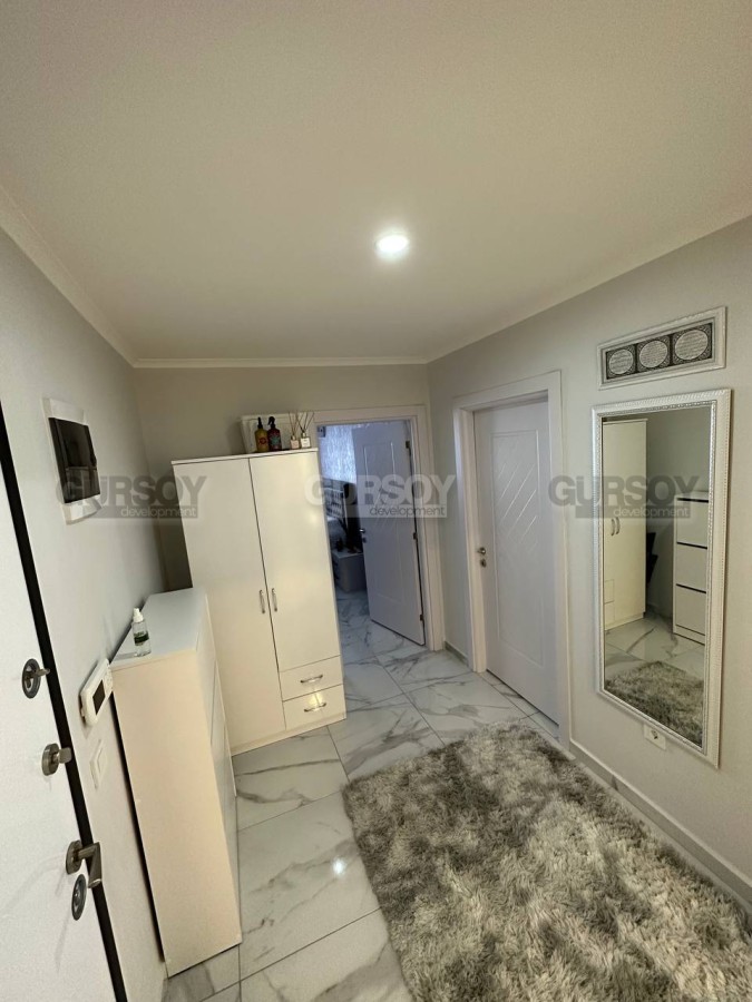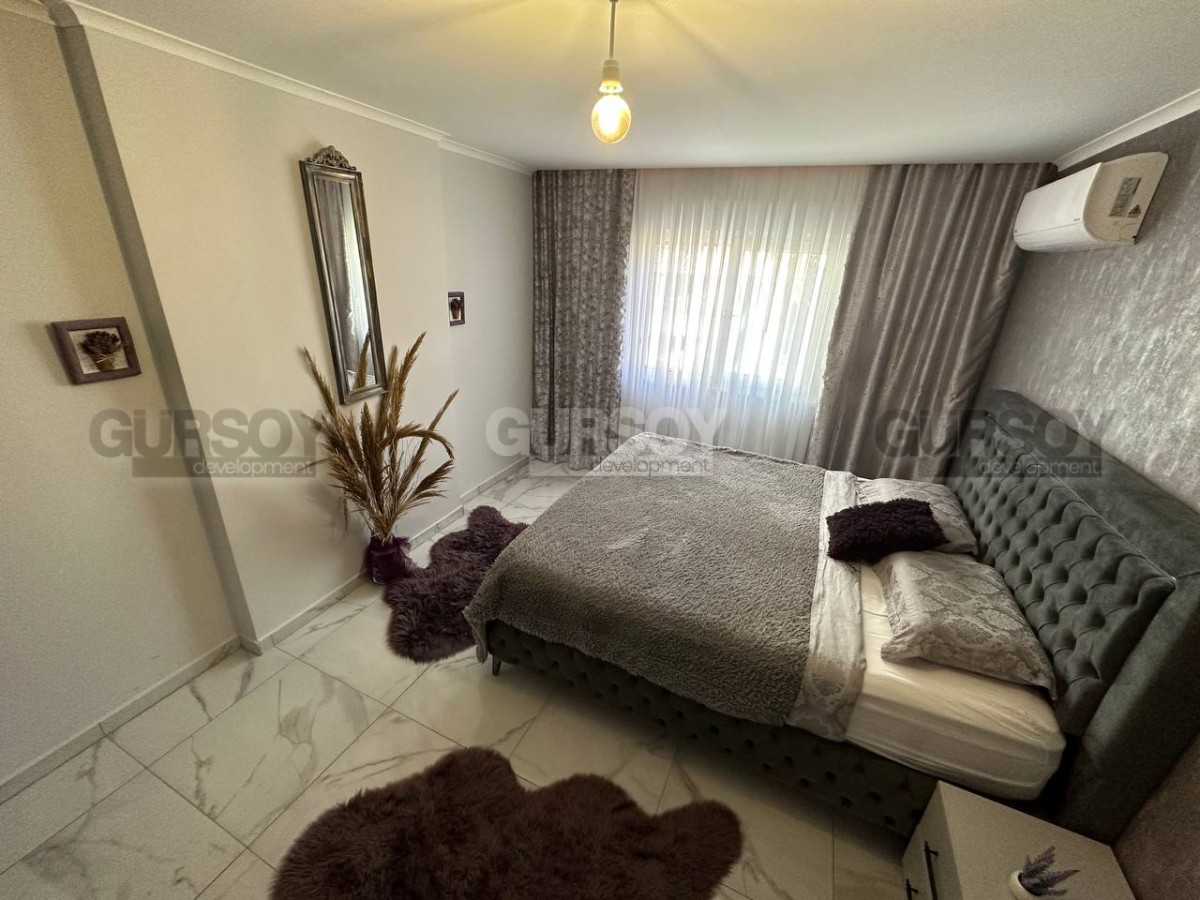 Если вы - активны и современны, и предпочитаете совмещать социальную жизнь с комфортным отдыхом у моря, предлагаем обратить внимание на апартаменты в центре популярного, развитого района Аланьи - Махмутлар. В 2022 году тут как раз завершилось строительство нового жилого комплекса, и на 4-м его этаже выставлена на продажу квартира 2+1, общей площадью 90 м2, с совмещенной с кухней гостиной, двумя спальнями, санузлом и открытым балконом, с видом на оживлённую улицу. Квартира полностью укомплектована мебелью и бытовой техникой, а стильный лаконичный дизайн, с модными серыми оттенками в интерьере, наверняка придётся по вкусу многим. В центре гостиной организована уютная зона отдыха, с диваном, креслами, журнальным столиком, тумбой и пуфом. Ближе к кухне, оснащённой холодильником, стиральной и посудомоечной машинами и духовым шкафом, расположен обеденный стол. В спальнях установлены удобные кровати, тумбы и гардеробные шкафы, а балкон представляет собой полноценную рекреационную территорию, с современным мягким уголком и комнатными растениями.